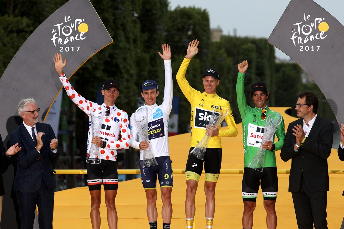 Chris Froome vince il suo quarto Tour, secondo arriva Uran (+00'54”) e terzo Bardet (+02'20”). Quinto posto per Fabrio Aru, che chiude a +03'05” dal podio.