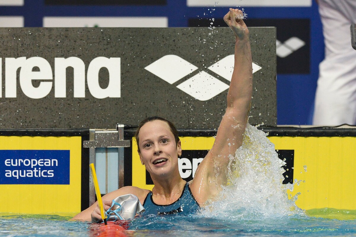 L'atleta azzurra si prende il gradino più alto del podio e la medaglia più preziosa nella finale dei 200 stile libero al campionato continentale sui 25 metri in svolgimento a Netanya, in Israele