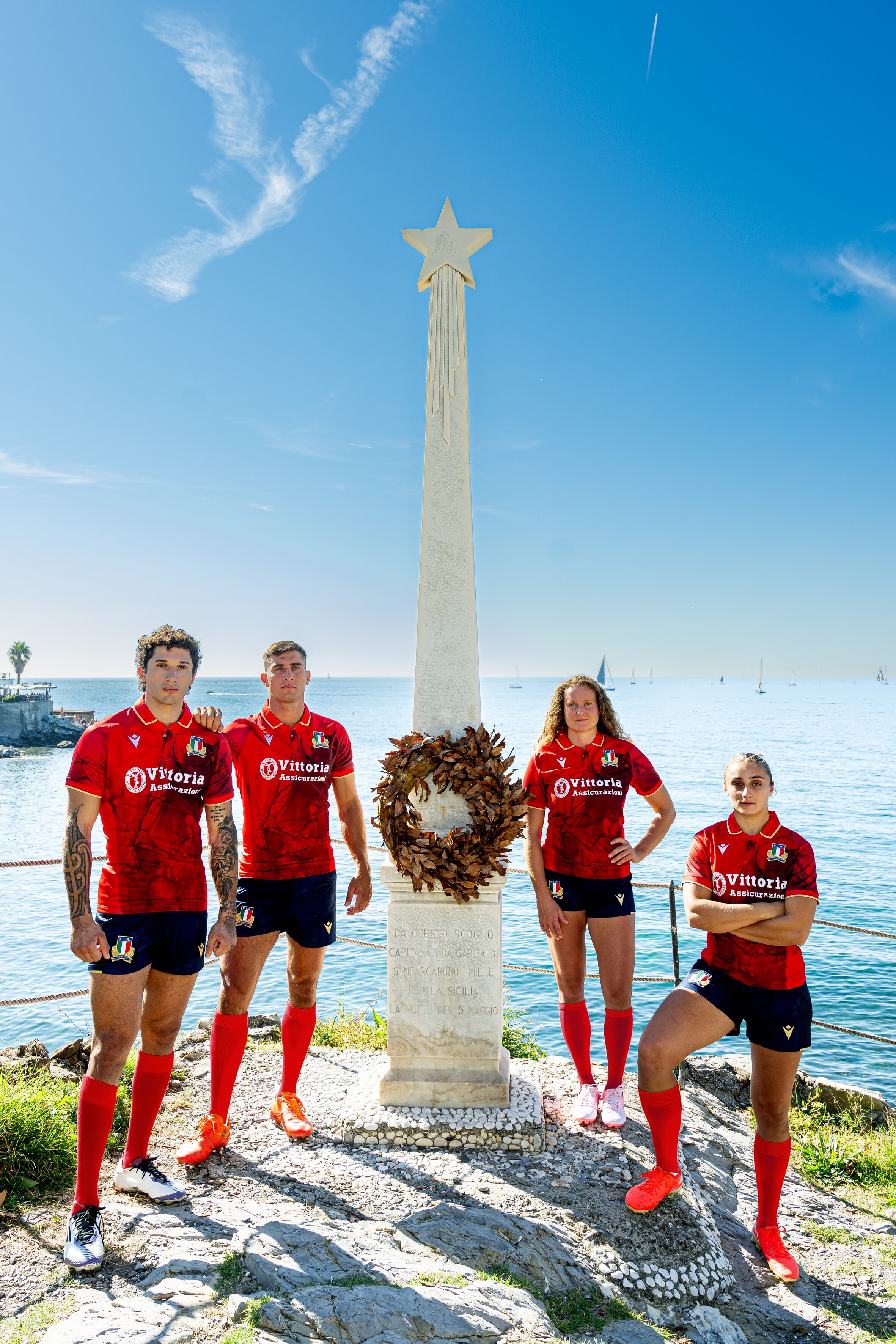 Genova, Garibaldi e le maglie rosse della Nazionale di rugby: le immagini virali
