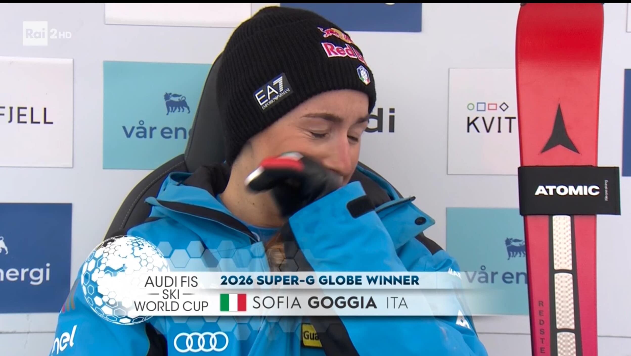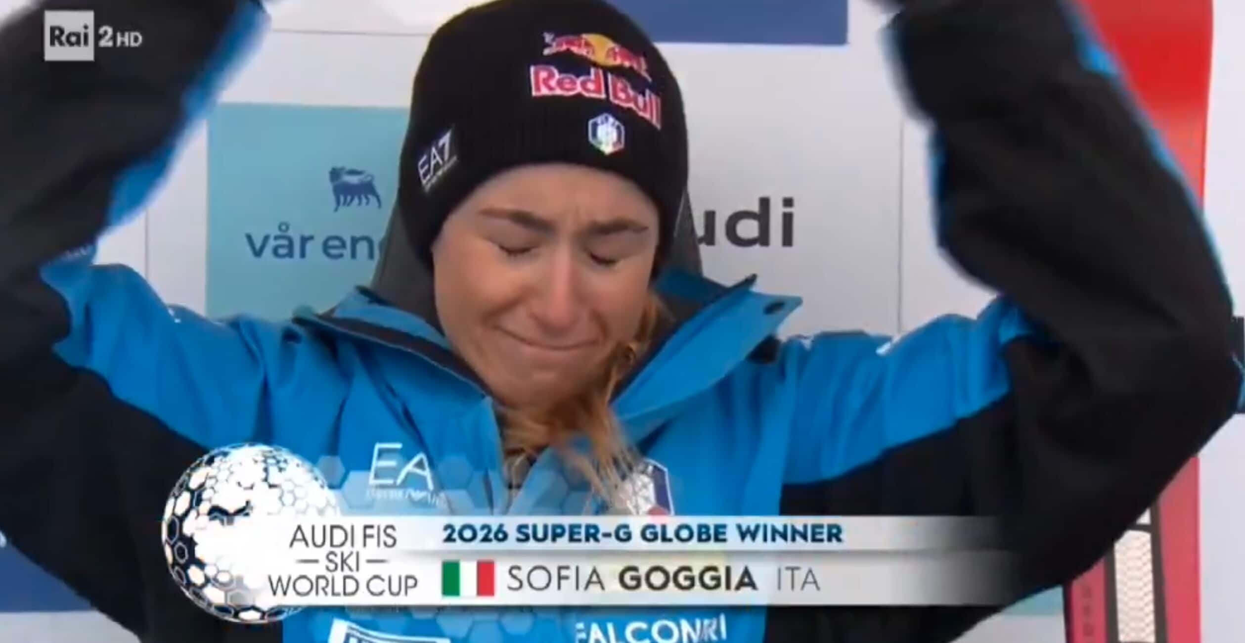 Sofia Goggia si commuove per la vittoria della Coppa del Mondo in SuperG