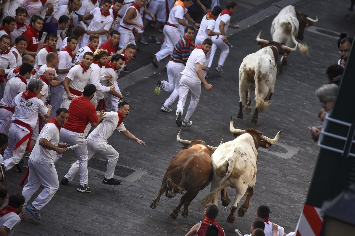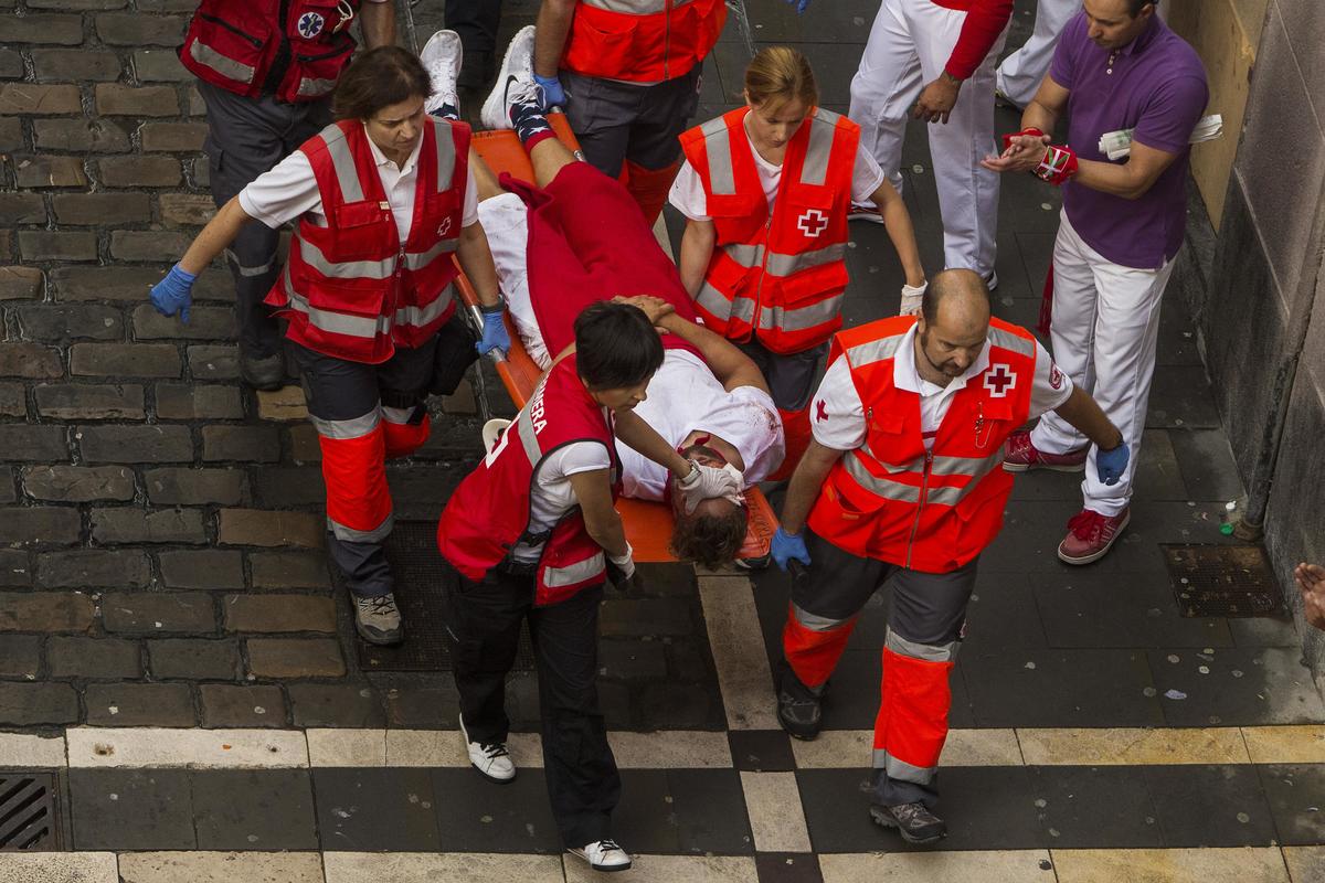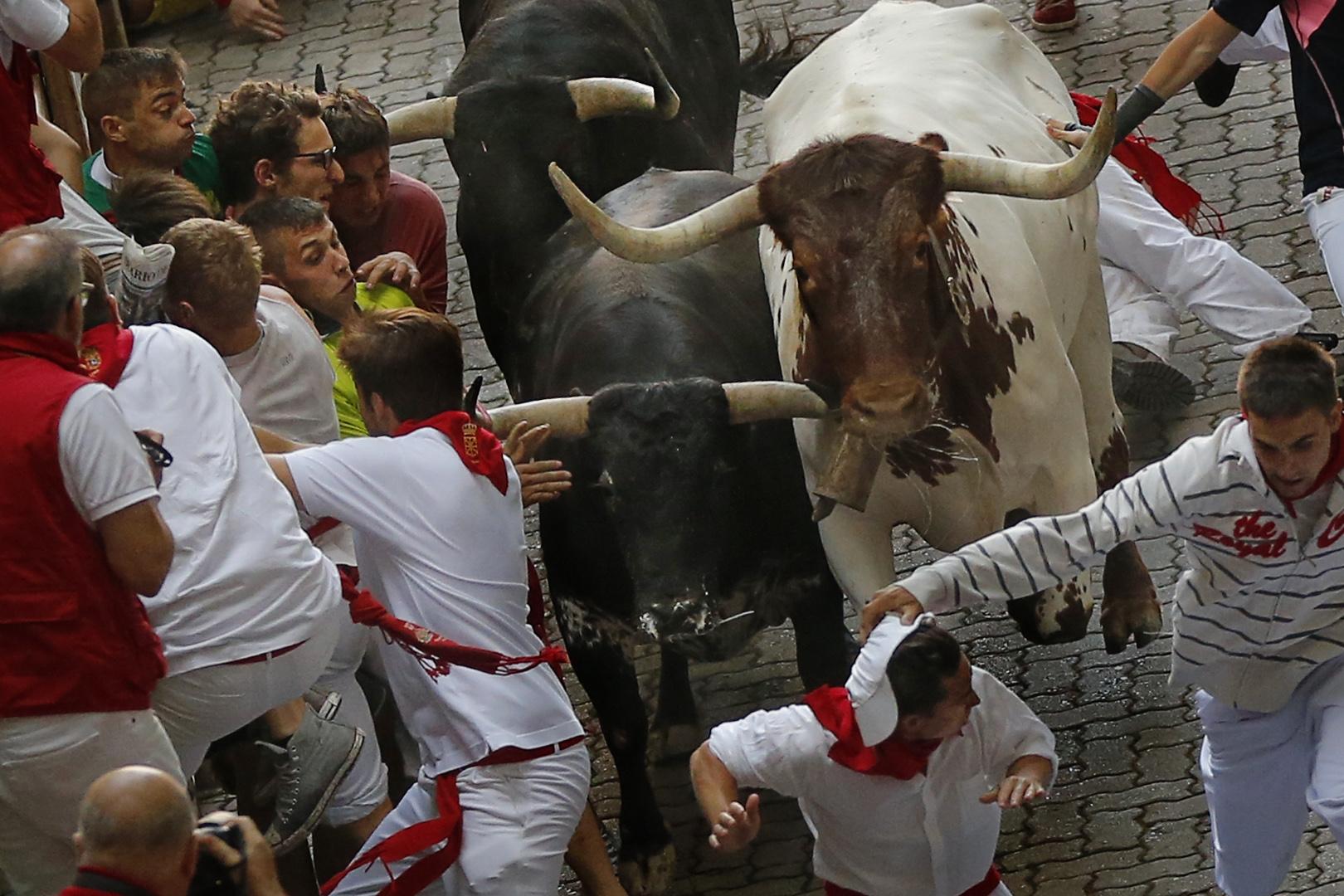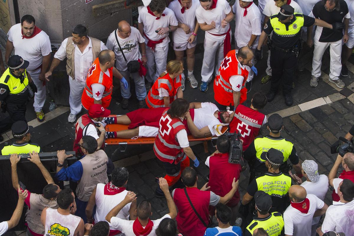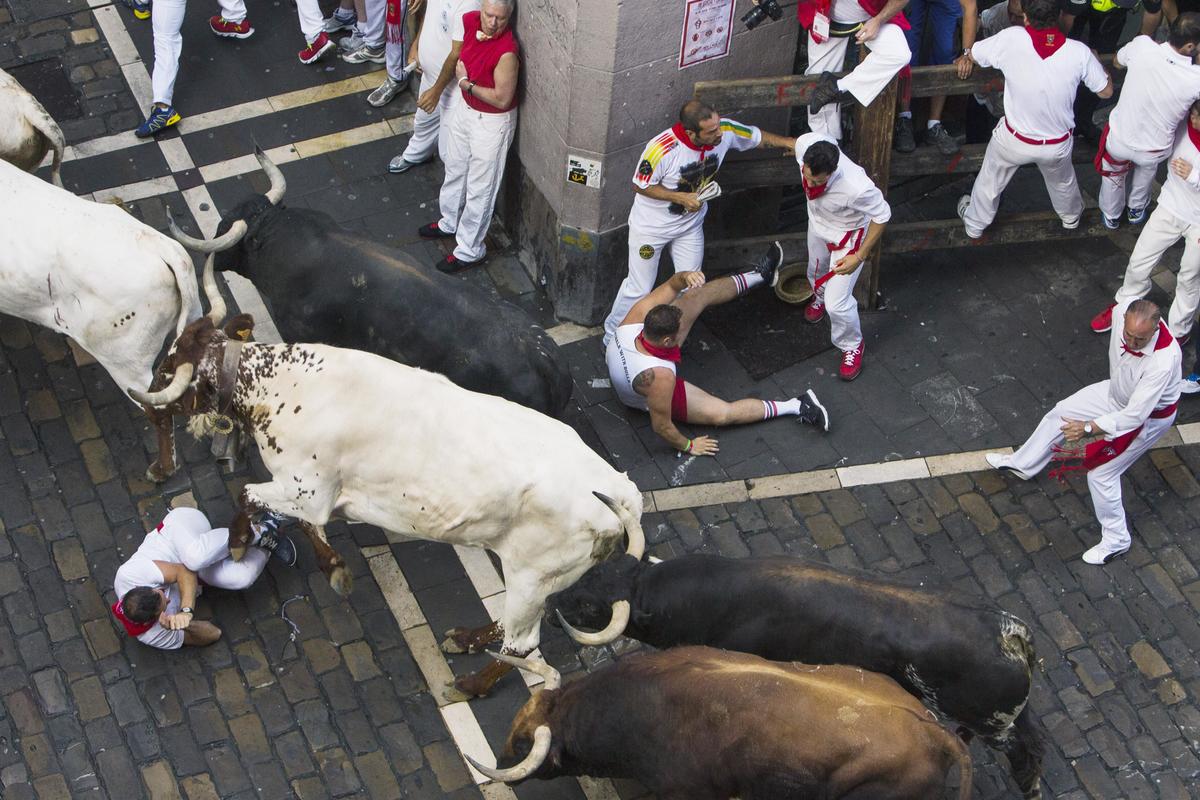 Due persone sono state ferite da cornate questa mattina nel primo encierro di San Fermin a Pamplona, la molto popolare corsa con i tori