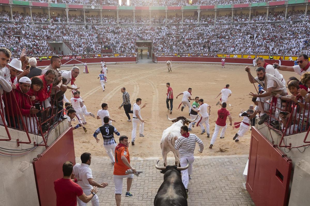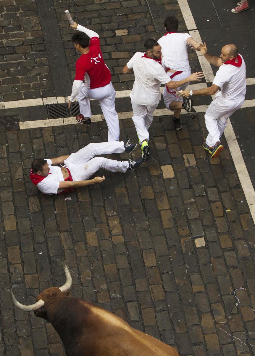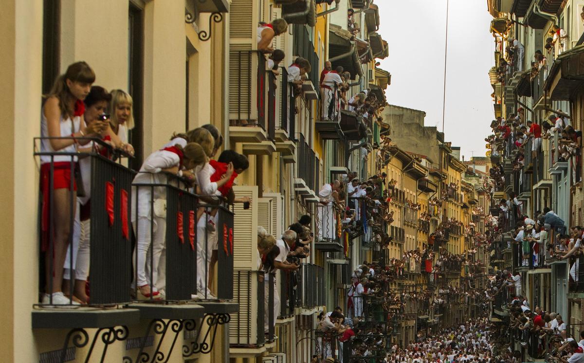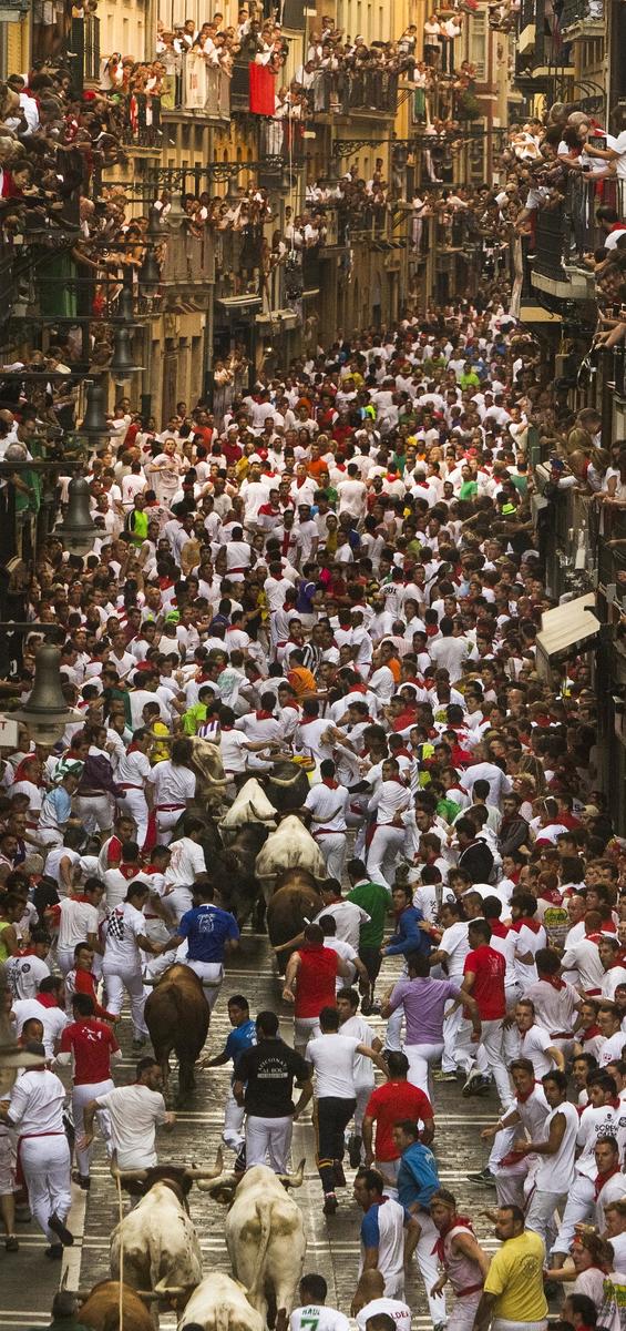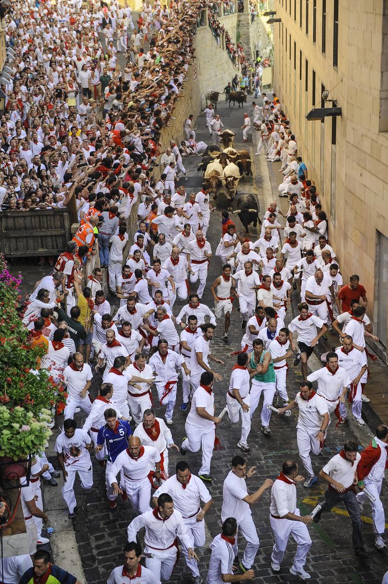 Due persone sono state ferite da cornate questa mattina nel primo encierro di San Fermin a Pamplona, la molto popolare corsa con i tori