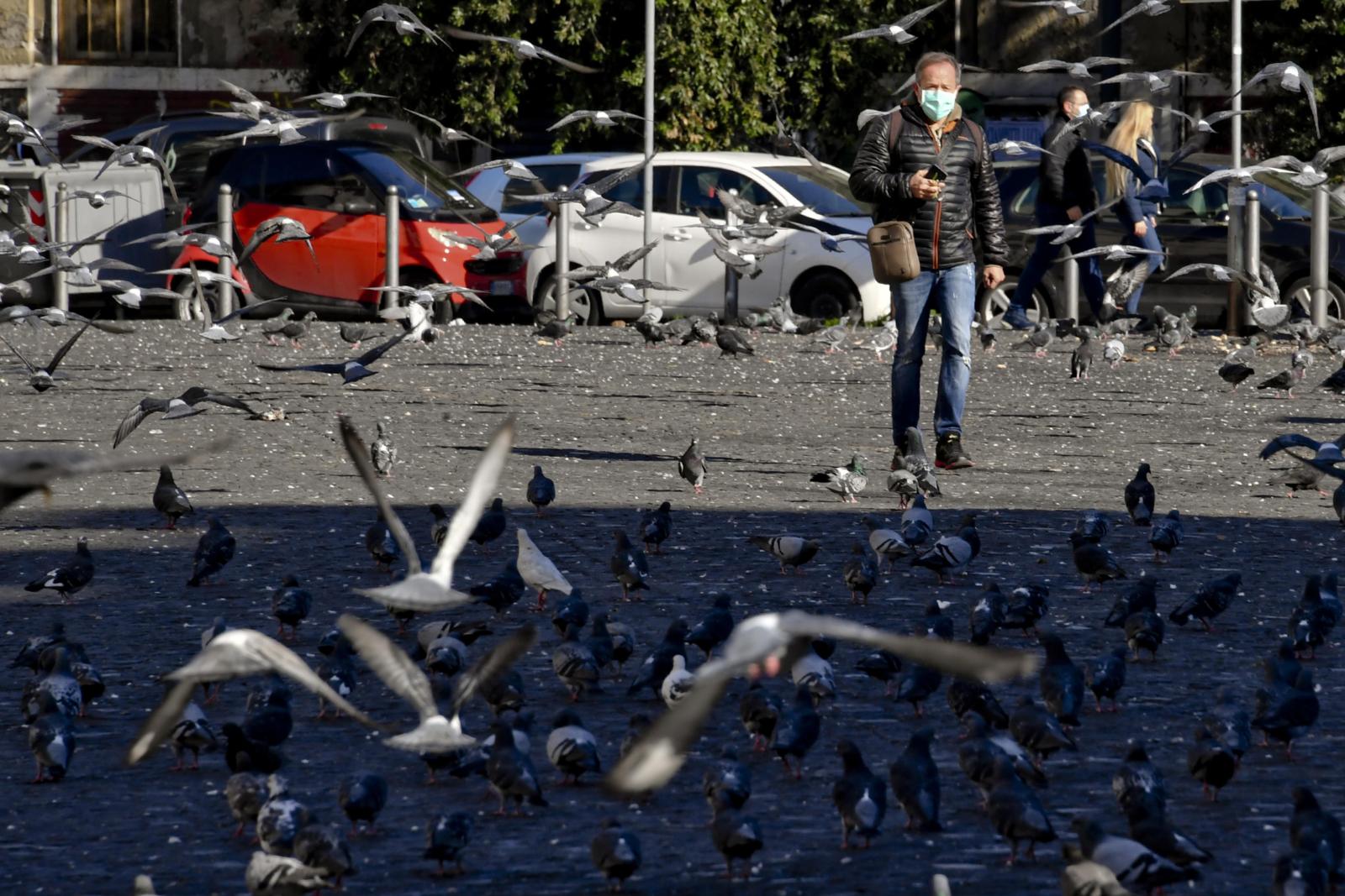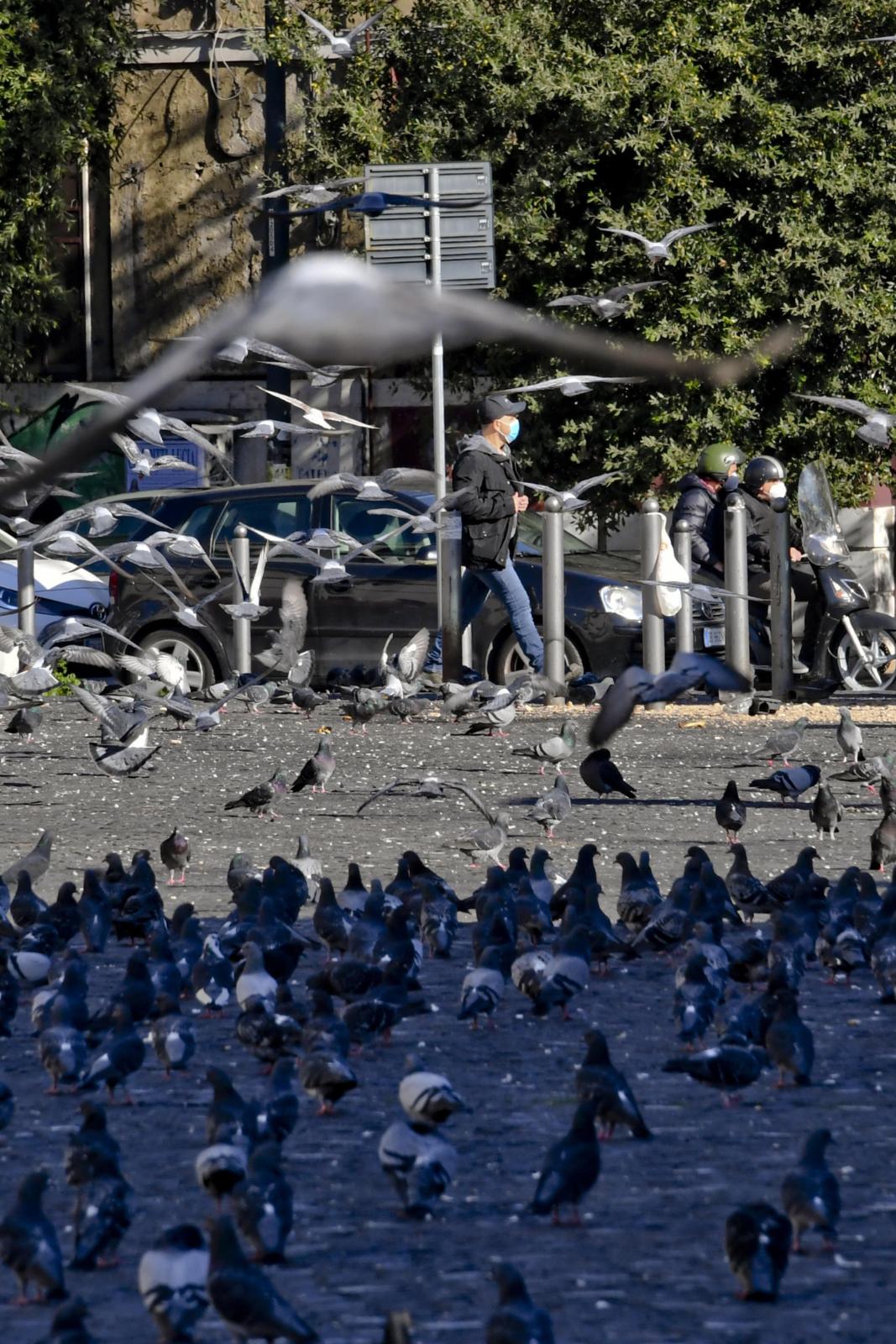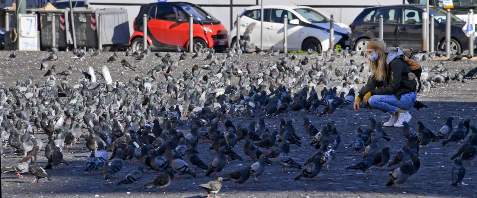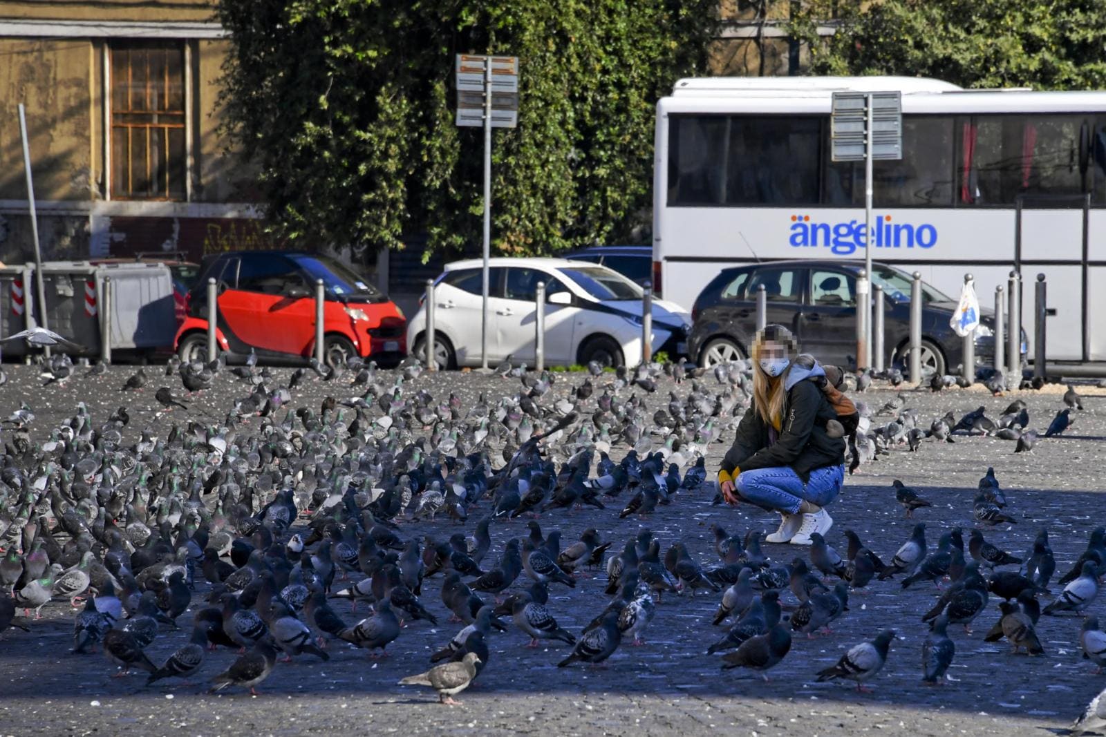 Napoli, piazza Giovanni Leone invasa dai piccioni