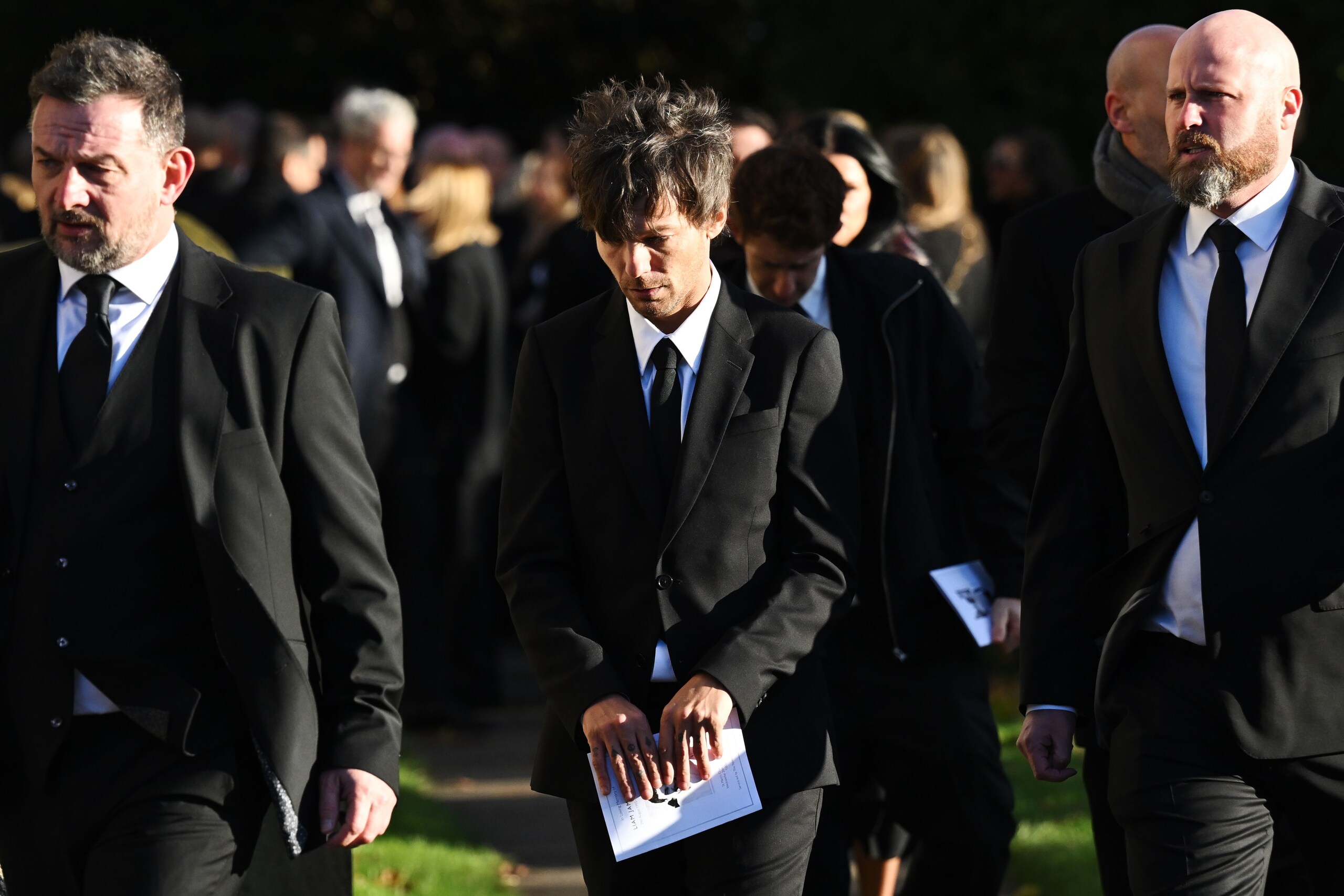 Harry Styles, Louis Tomlinson, Zayn Malik e Niall Horan presenti alla cerimonia in una località top secret non lontano da Londra, insieme alla famiglia e agli amici intimi del cantante, morto in Argentina il 16 ottobre all'età di 31 anni
