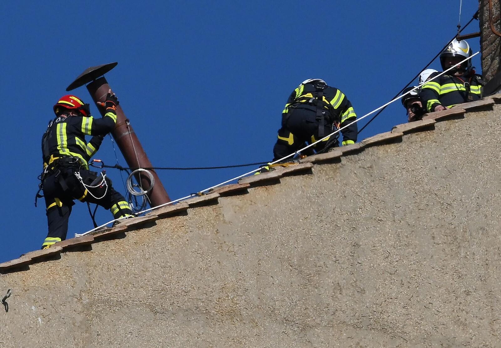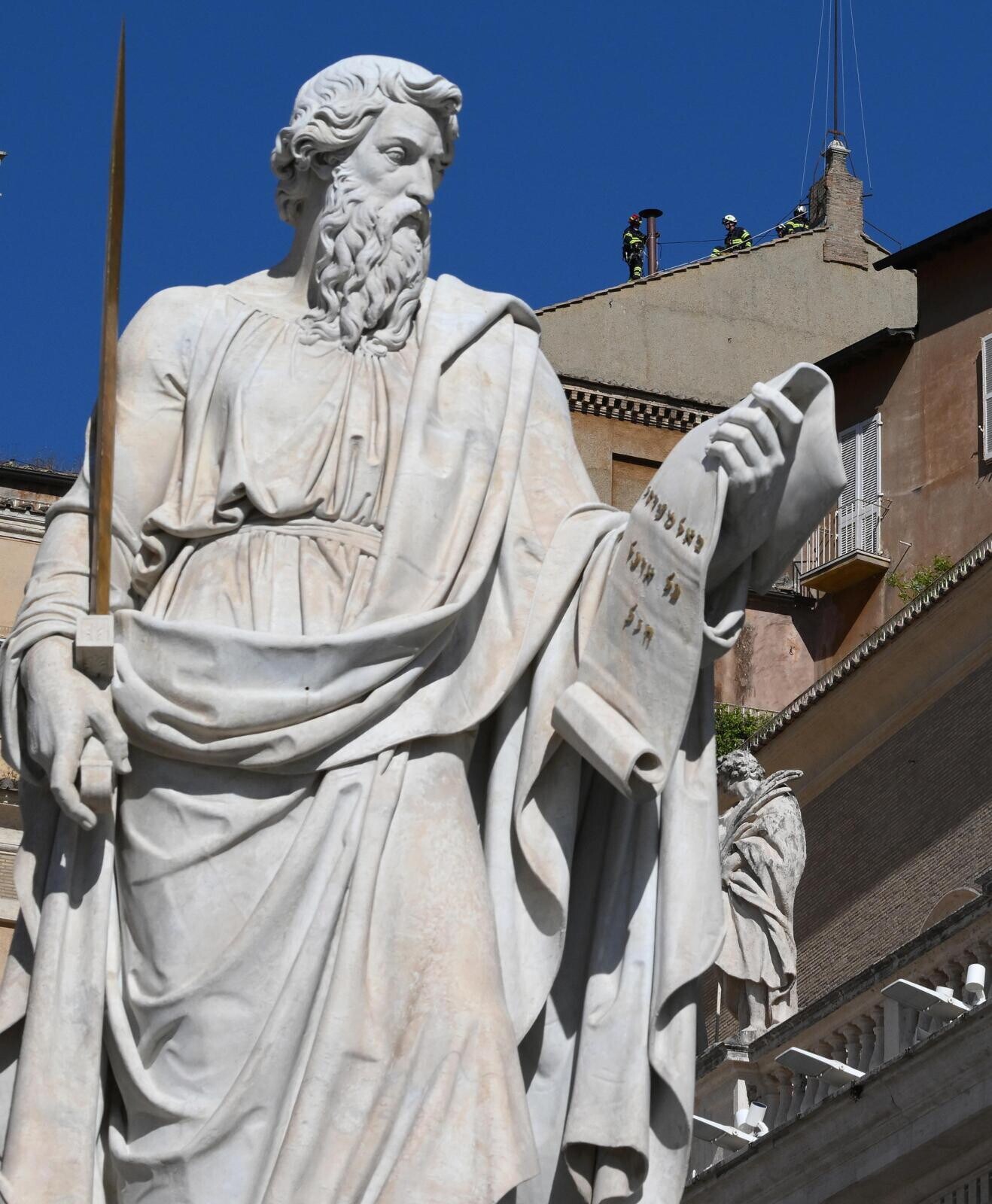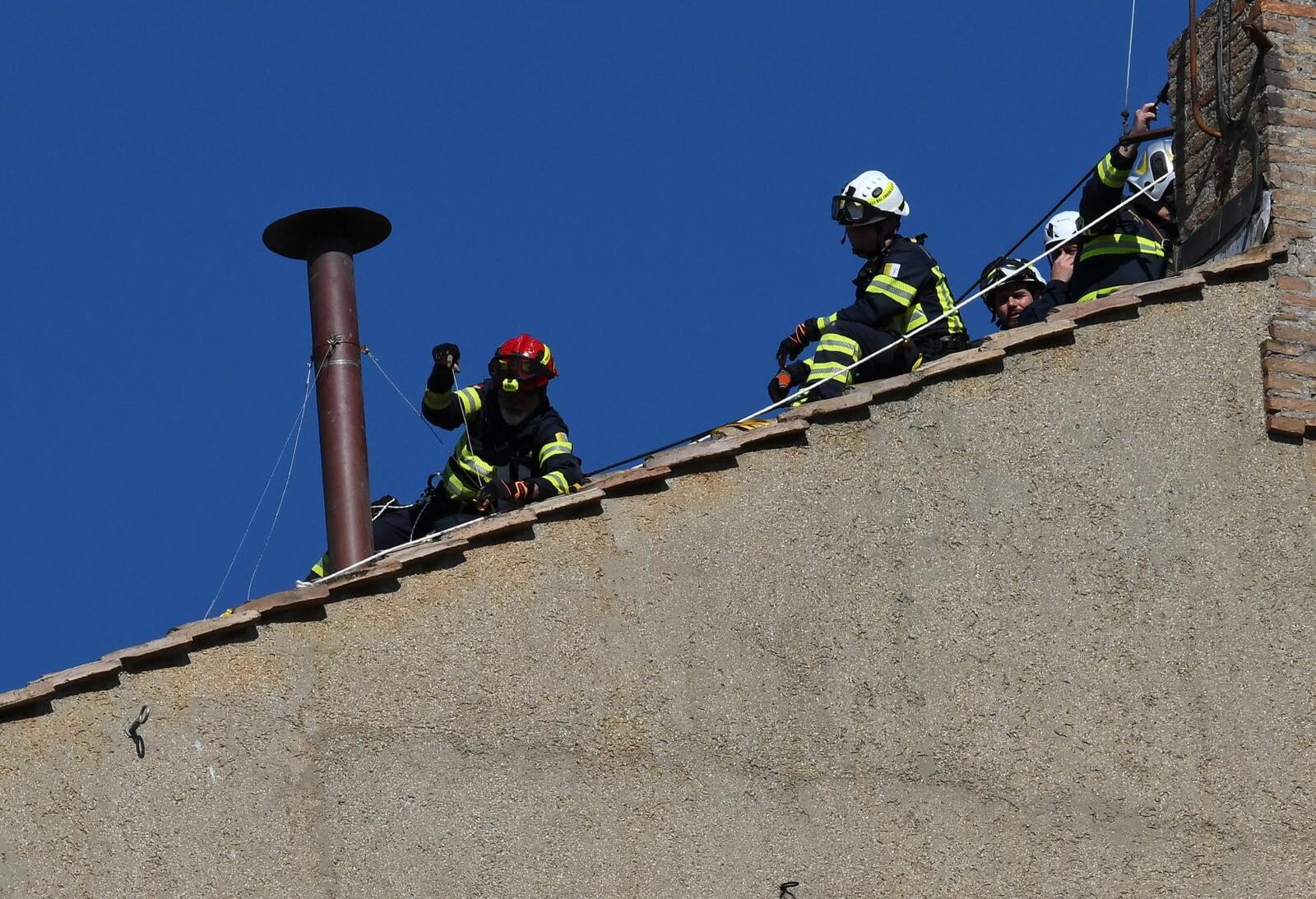 In attesa del 7 maggio i Vigili del Fuoco hanno allestito questa mattina il comignolo dal quale usciranno le fumate