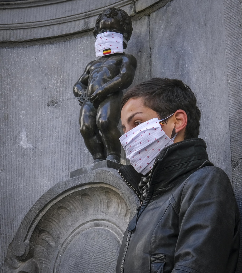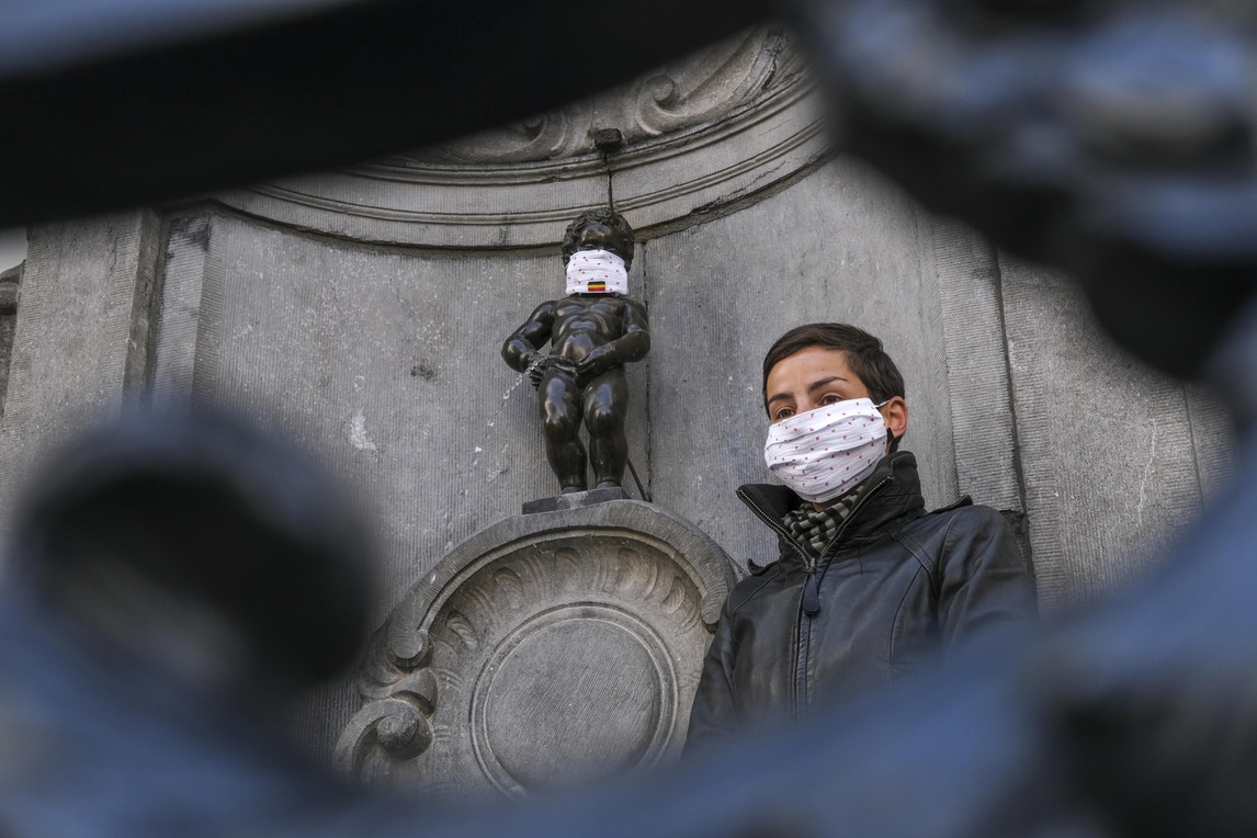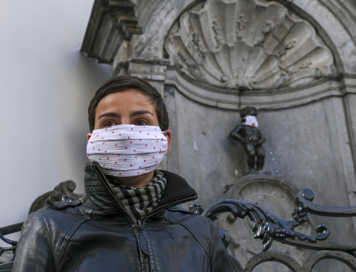 Coronavirus, anche il Manneken-Pis a Bruxelles con la mascherina