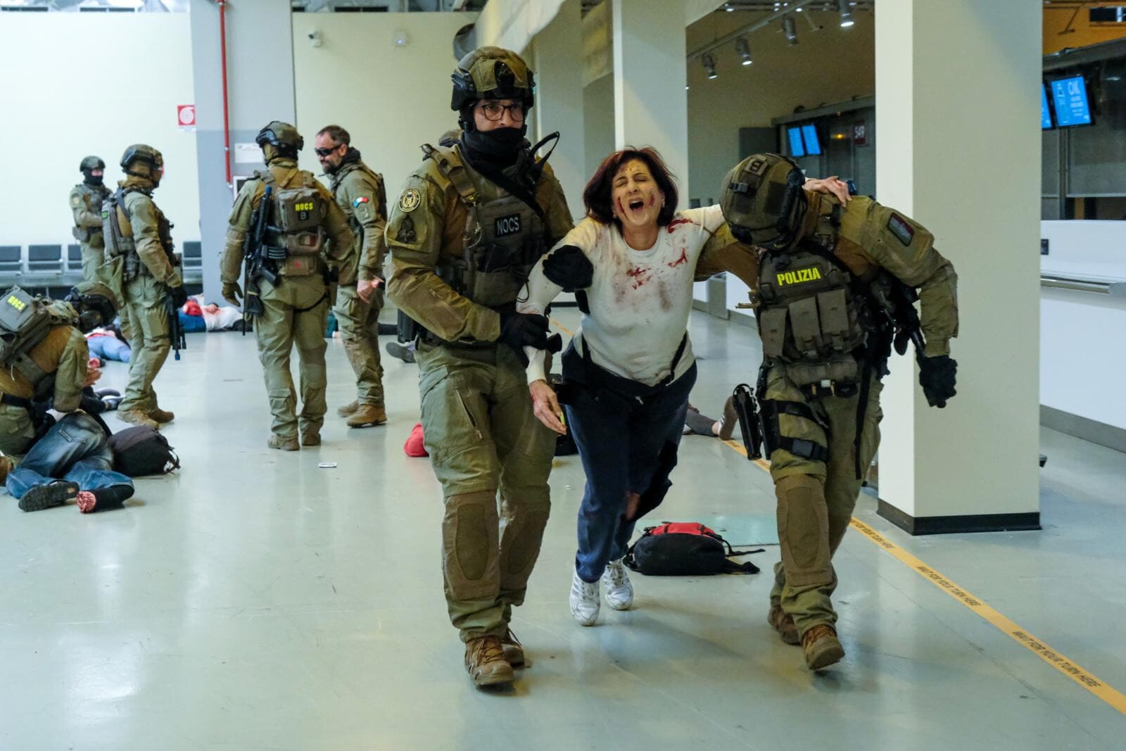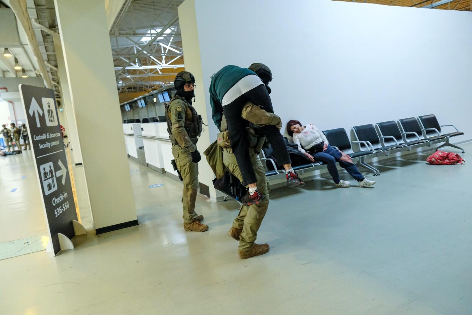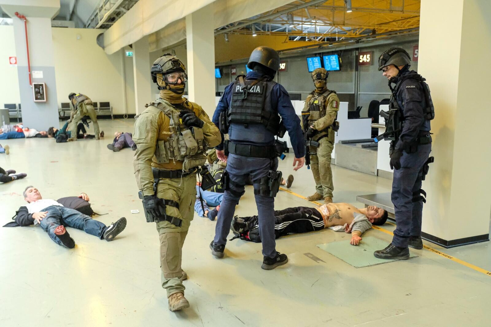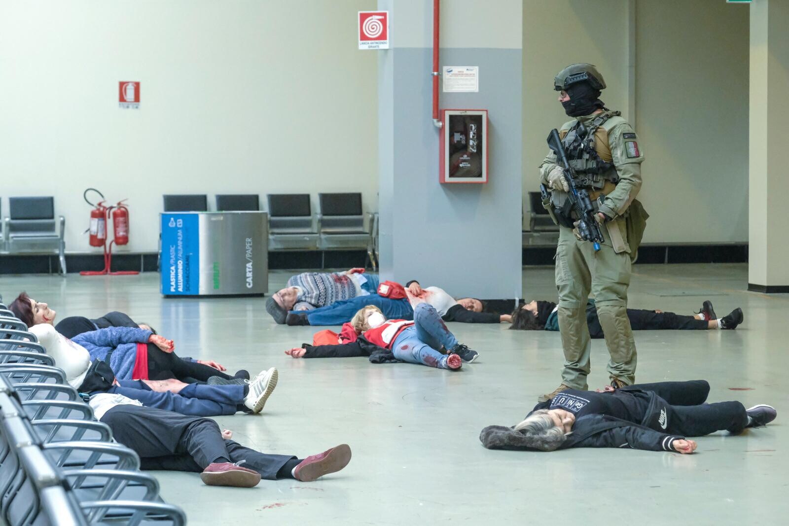 Roma, all'aeroporto di Fiumicino simulato un grande attacco terroristico con ostaggi e feriti: le suggestive immagini