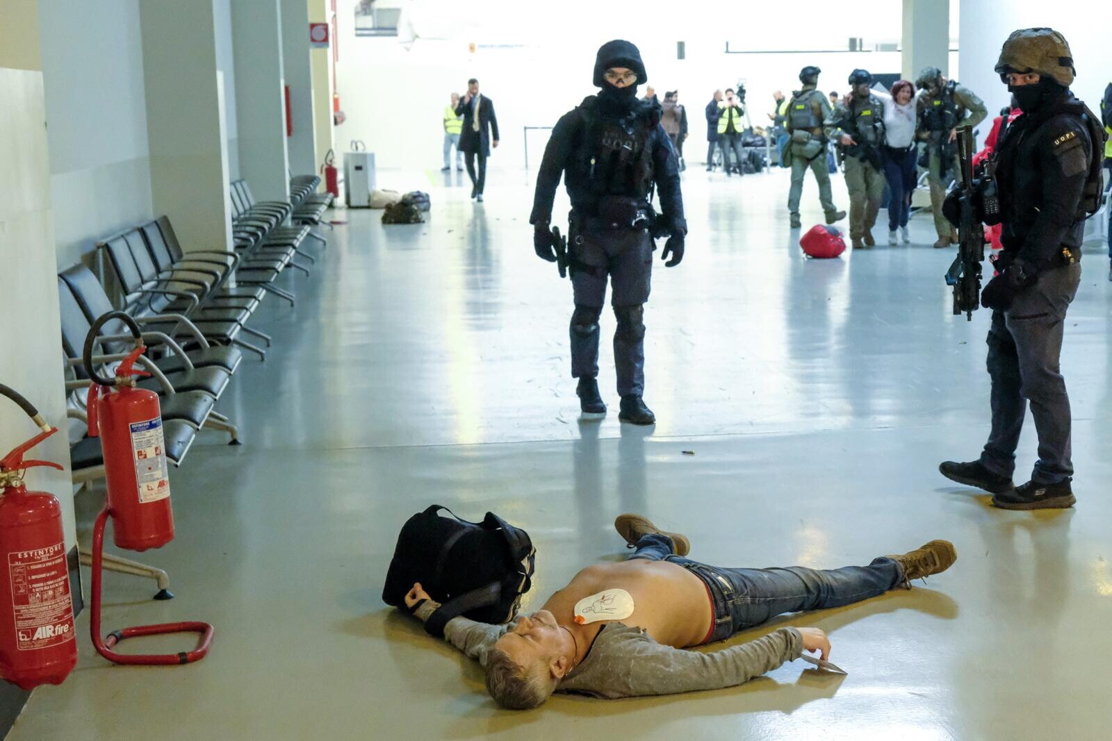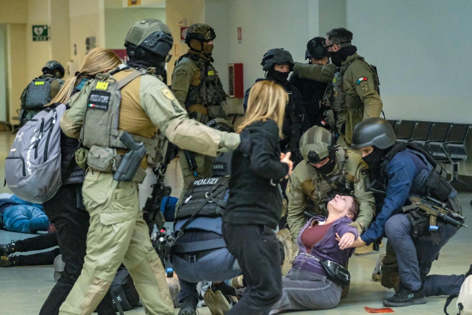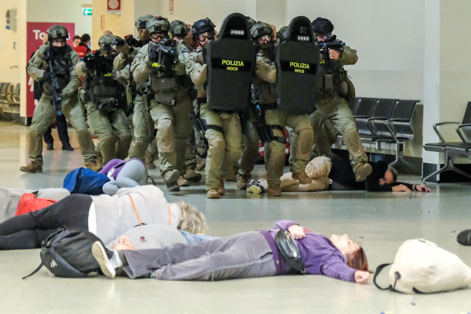 Roma, all'aeroporto di Fiumicino simulato un grande attacco terroristico con ostaggi e feriti: le suggestive immagini