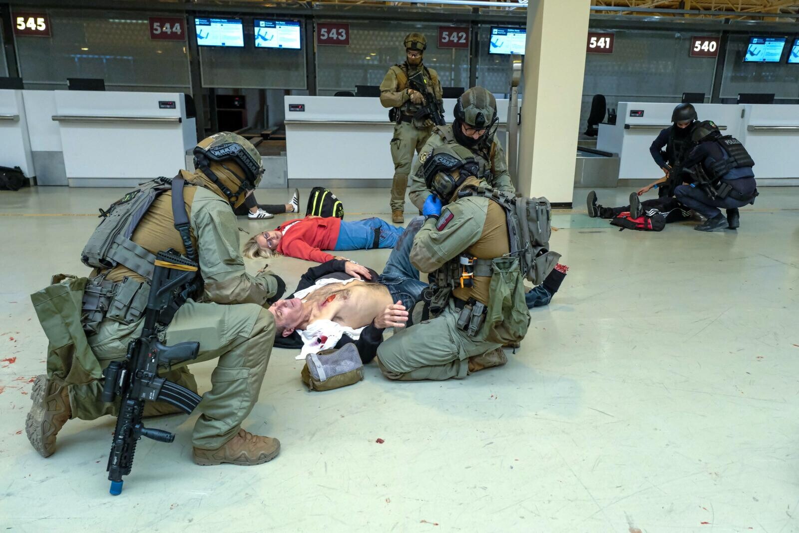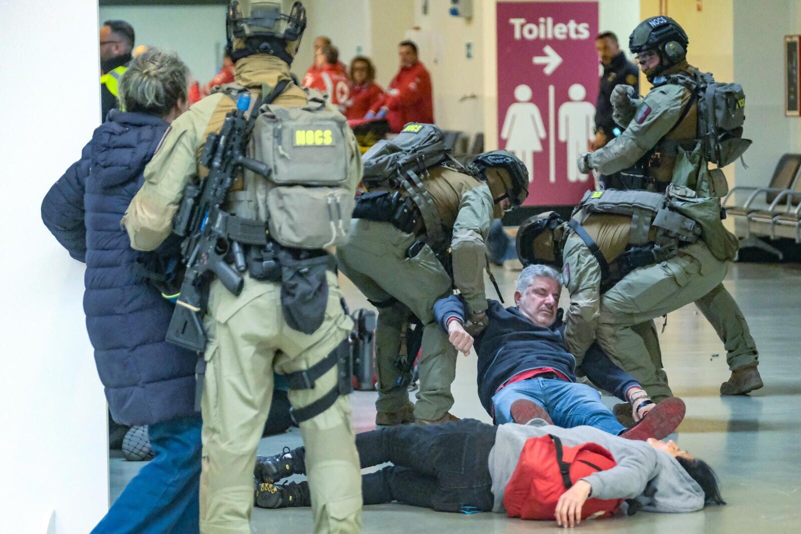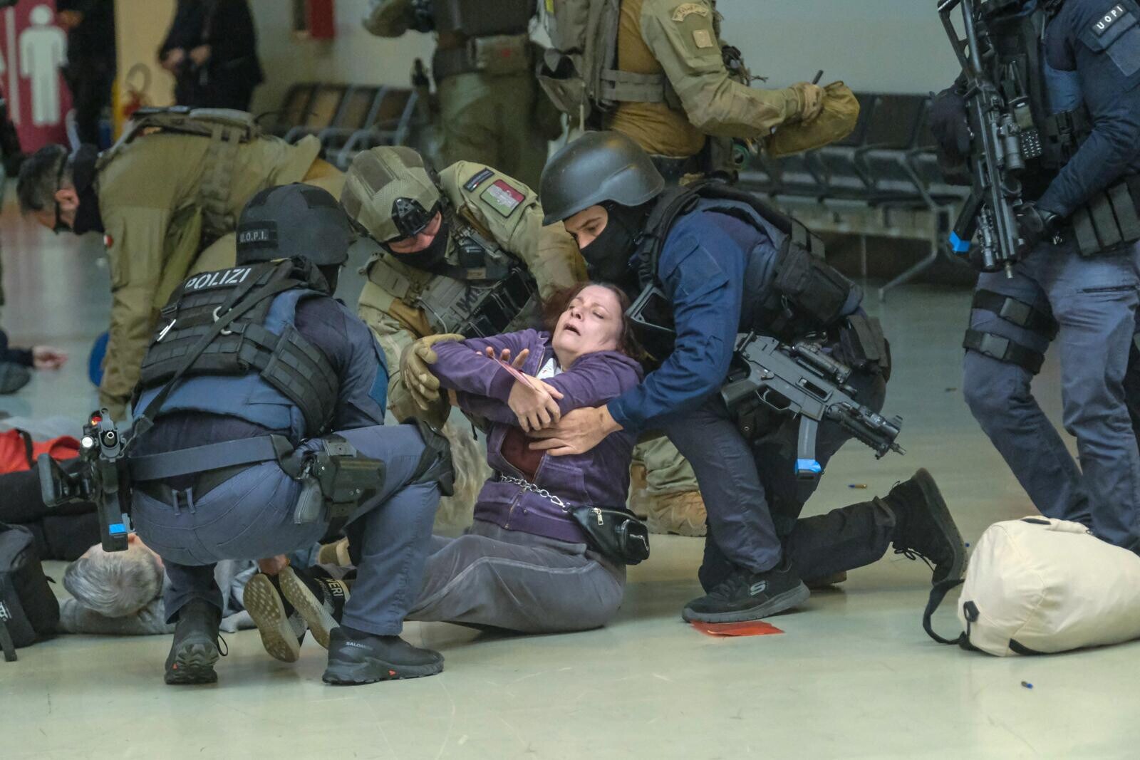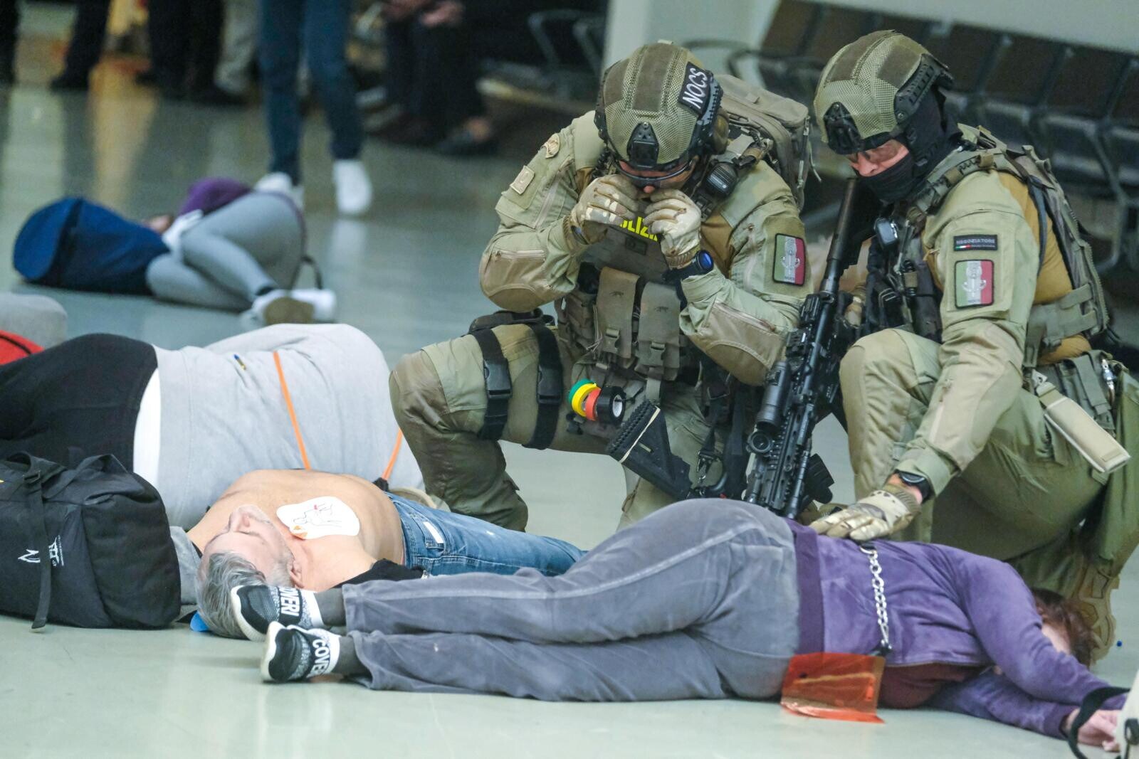 Roma, all'aeroporto di Fiumicino simulato un grande attacco terroristico con ostaggi e feriti: le suggestive immagini