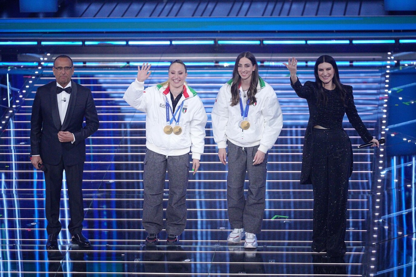 Francesca Lollobrigida e Lisa Vittozzi a Sanremo con le medaglie delle Olimpiadi Milano-Cortina