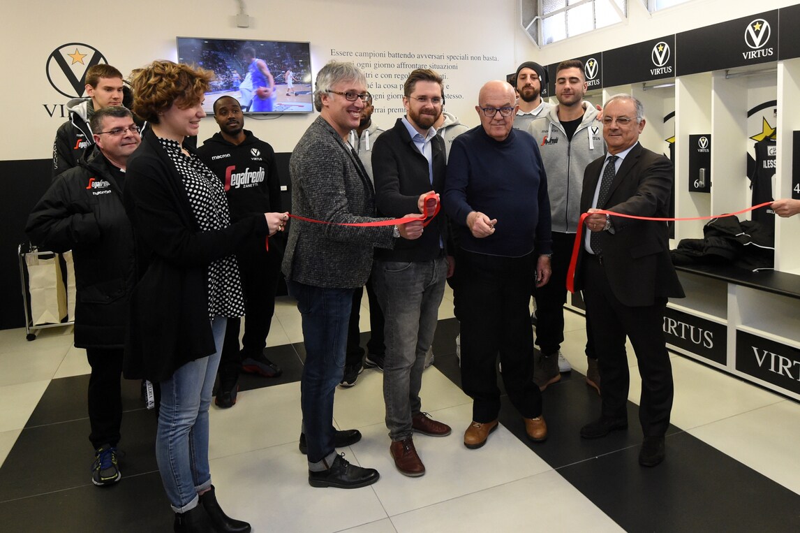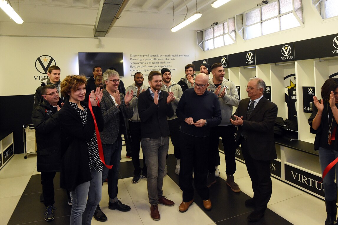 Inaugurata alla presenza delle autorità cittadine, della società e dei giocatori l’area del PalaDozza dedicata al club bianconero e griffata Virtus Segafredo, e in particolare i nuovissimi spogliatoi, realizzati grazie alla collaborazione del Comune di Bologna