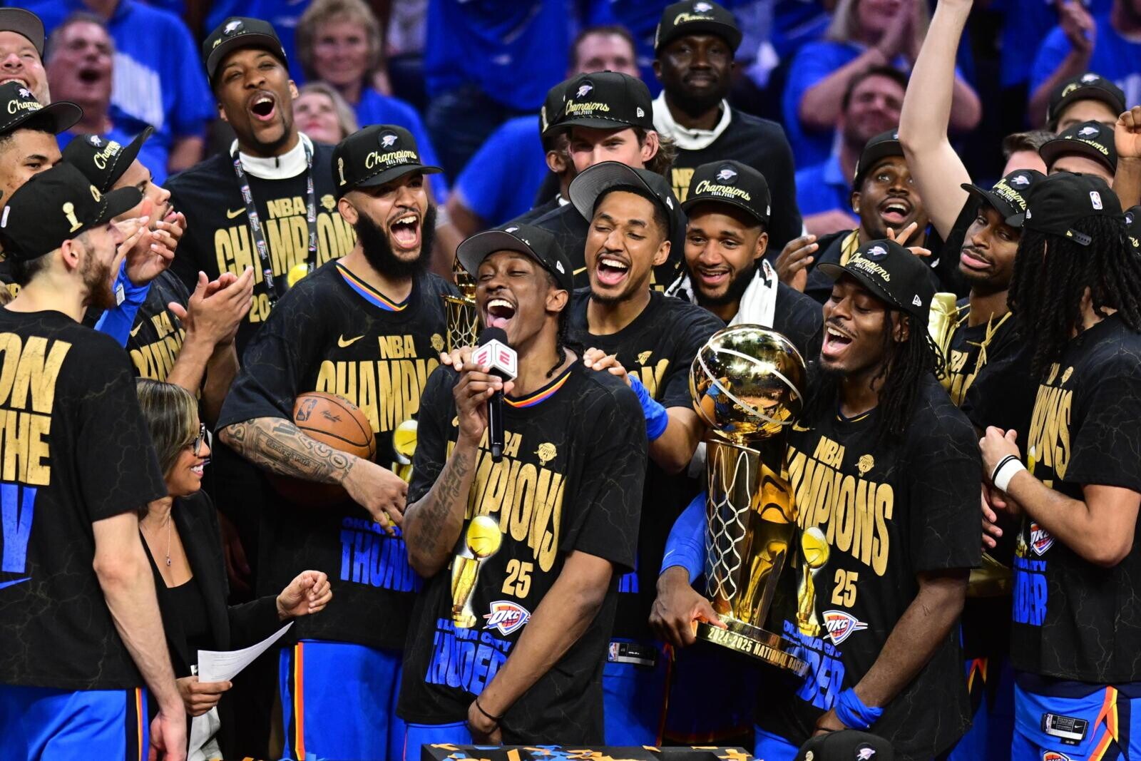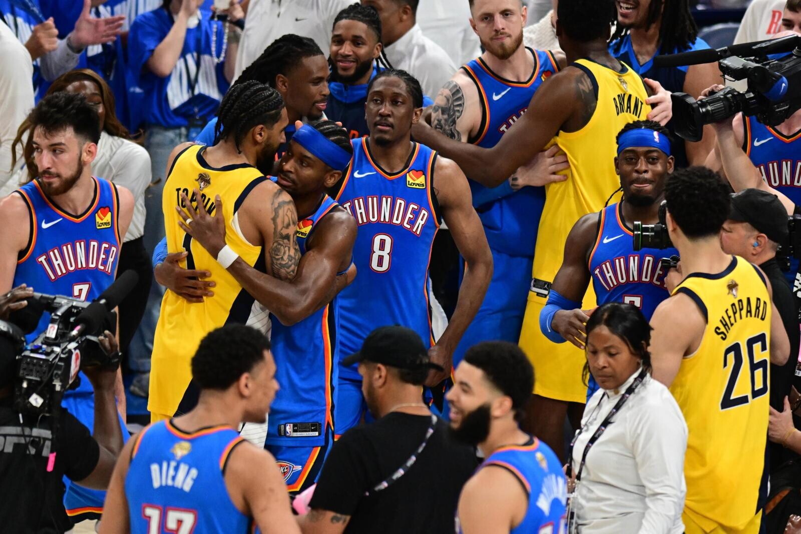 Shai Gilgeous-Alexander e compagni, festeggiano la vittoria contro i Pacers, che vale il campionato