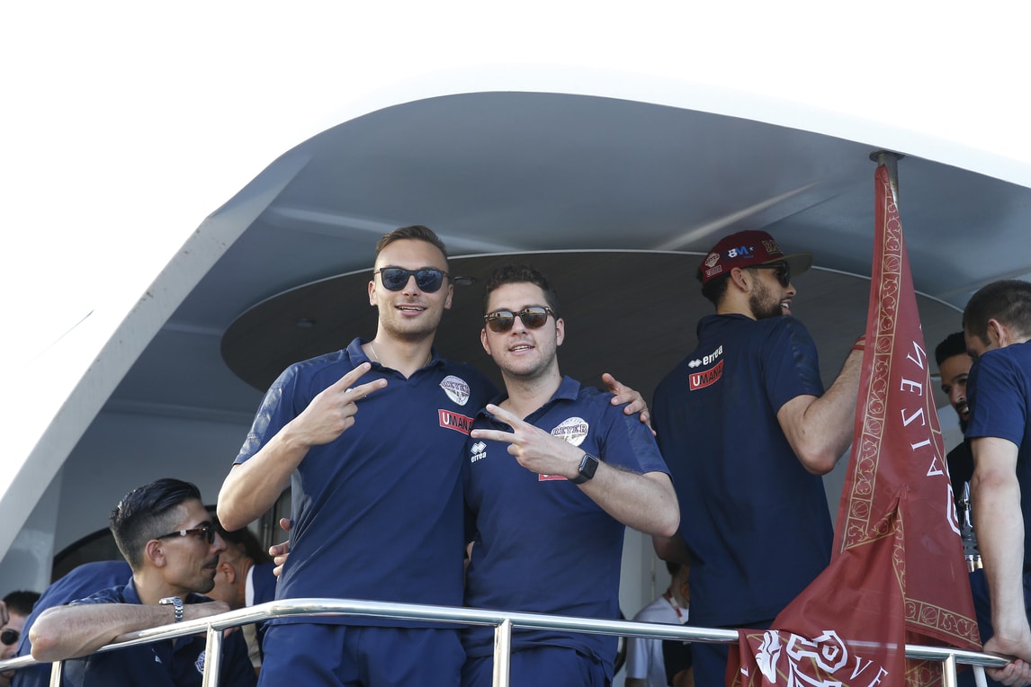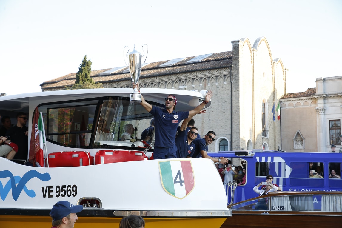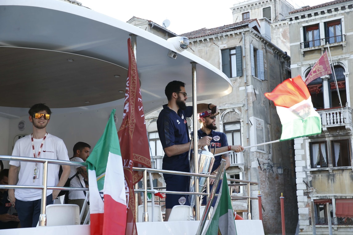 Ecco i festeggiamenti della formazione veneta per il trionfo nella massima serie italiana di basket