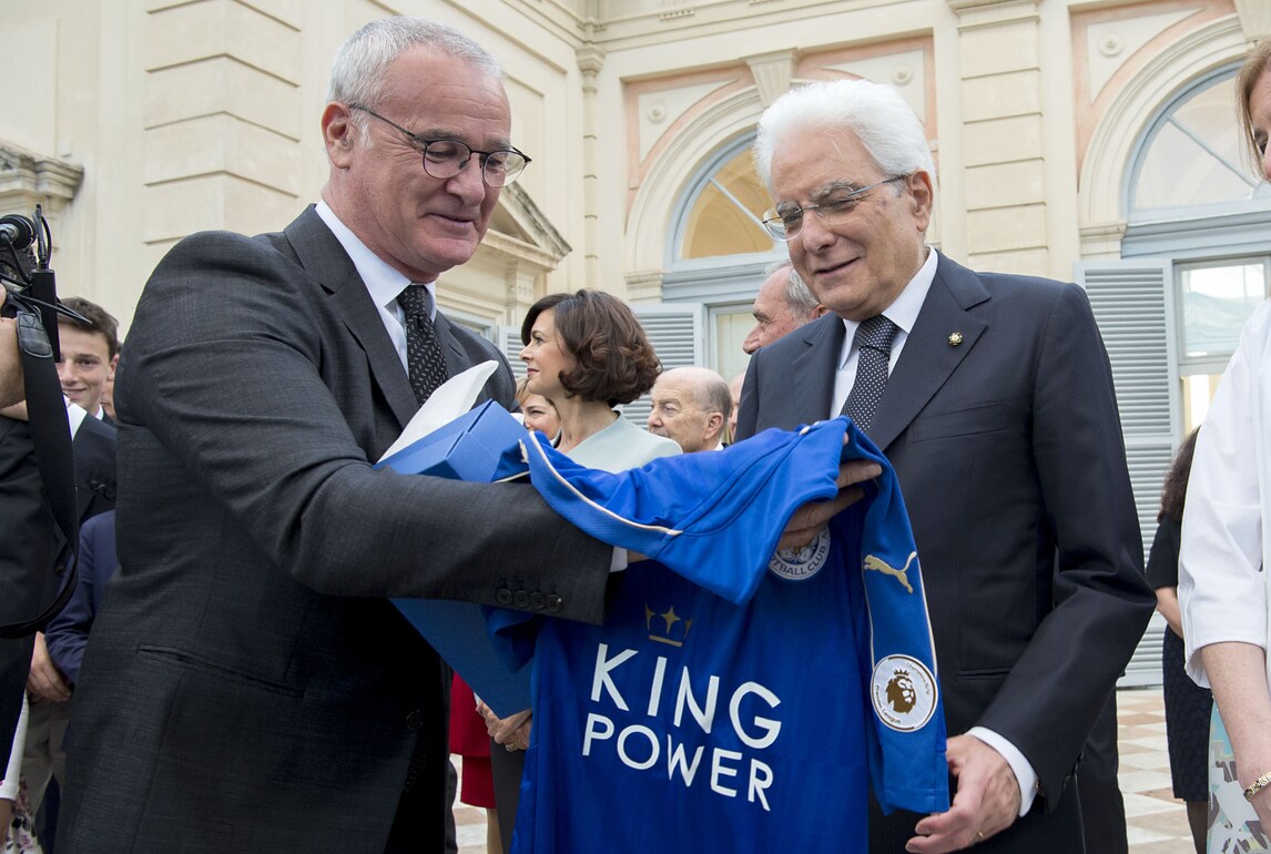 L'allenatore vincitore della Premier League con il Leicester regala una maglia della sua squadra a Mattarella