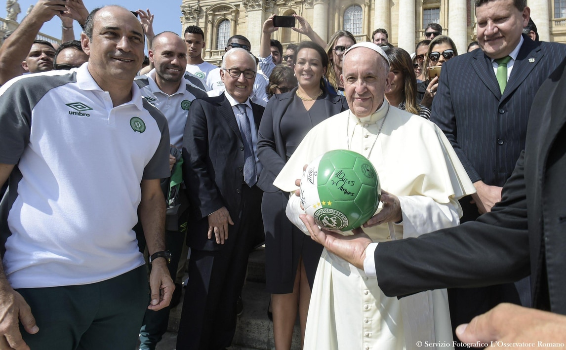 L'incontro con il Santo Padre a quasi un anno di distanza dall'incidente aereo nel quale hanno perso la vita quasi tutti i componenti della squadra e dello staff tecnico del club brasiliano, nel viaggio che li stava portando a disputare la finale di andata della Copa Sudamericana. Venerdì l'amichevole con la Roma