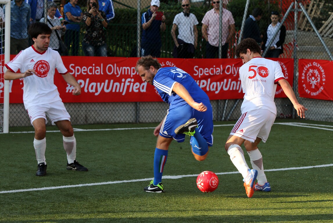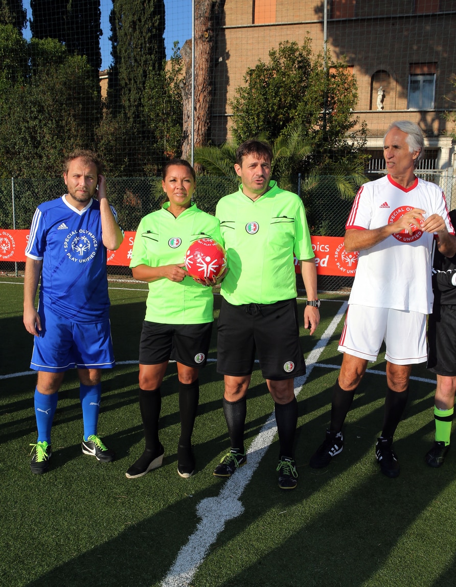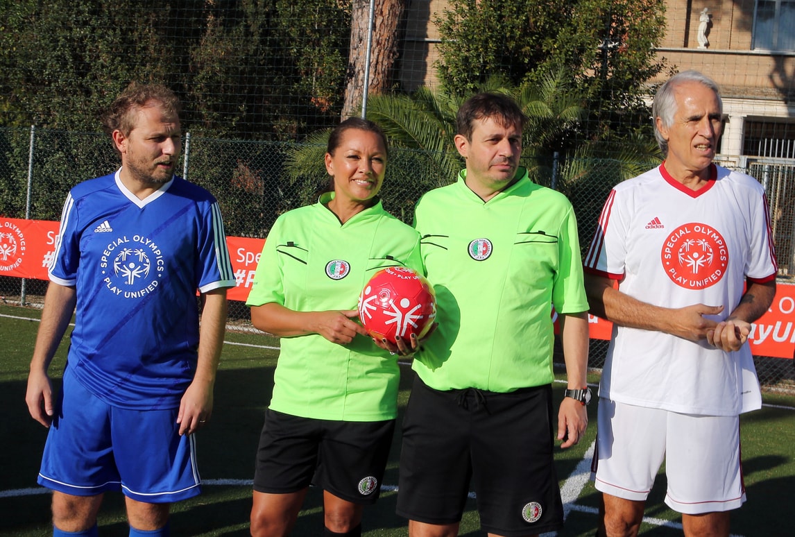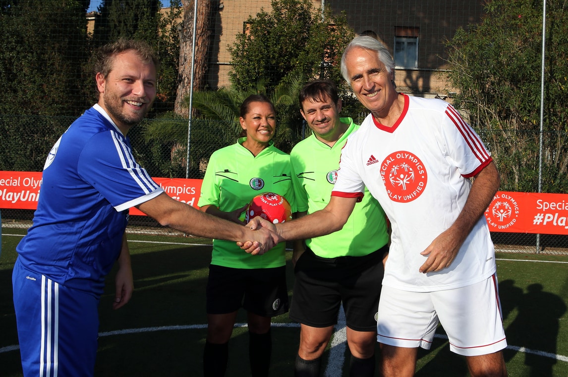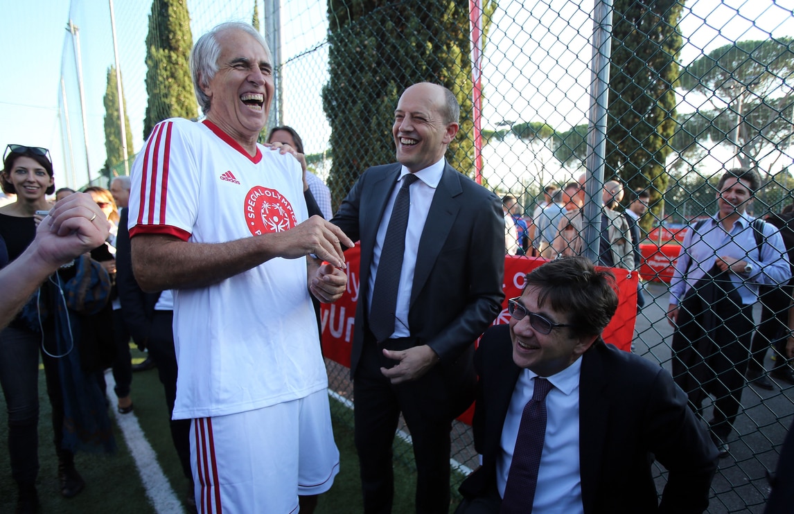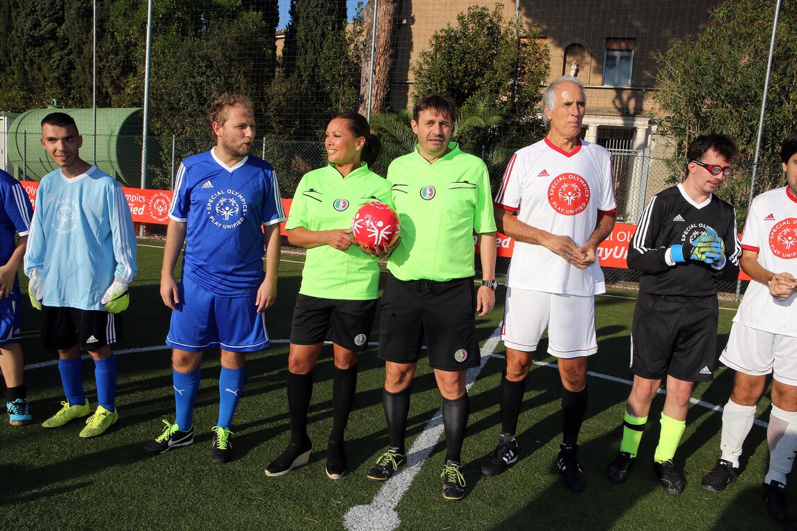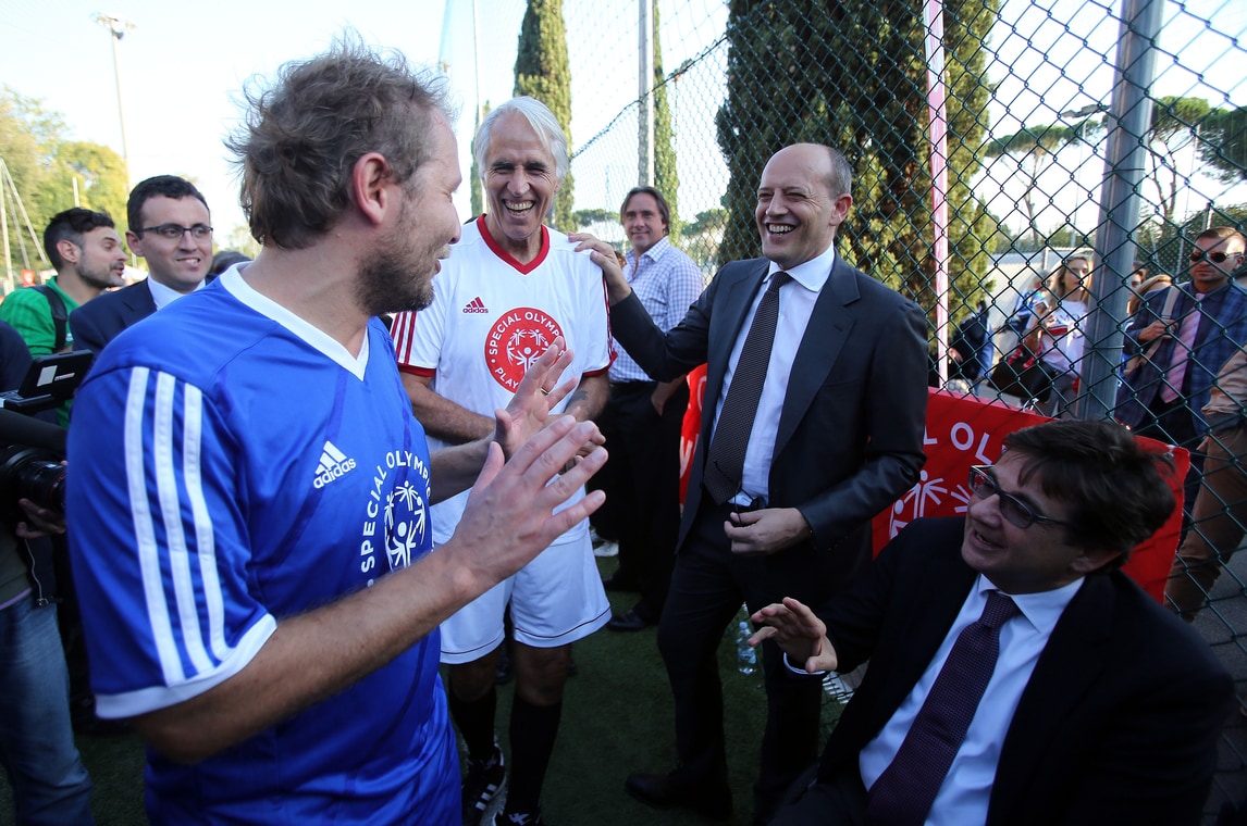 Il presidente del Coni e il Ministro dello Sport hanno partecipato al match che ha anticipato il torneo internazionale di calcio a 5 unificato. Presenti anche Tommasi e Di Biagio