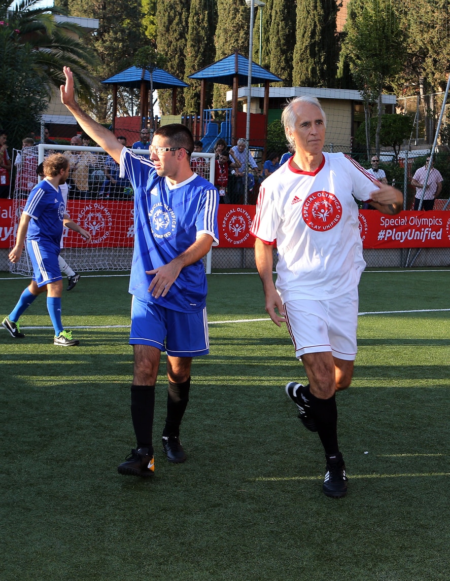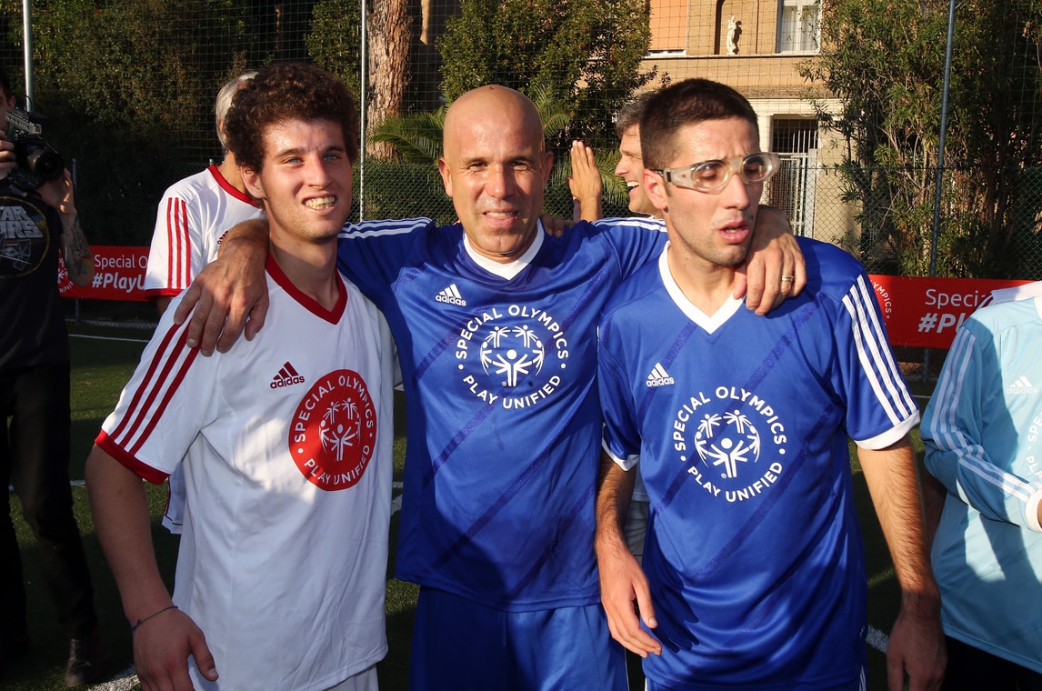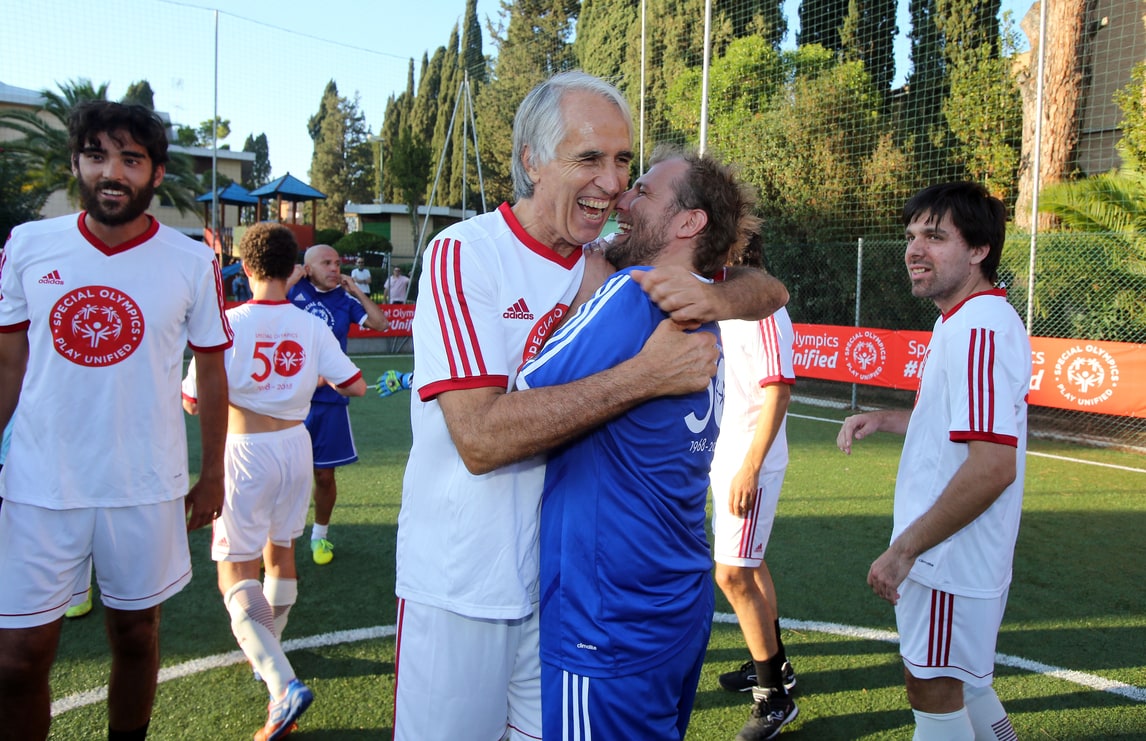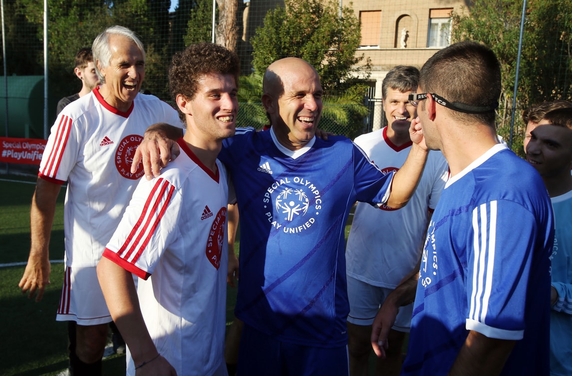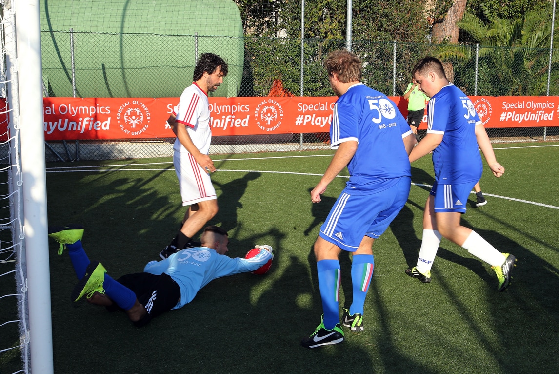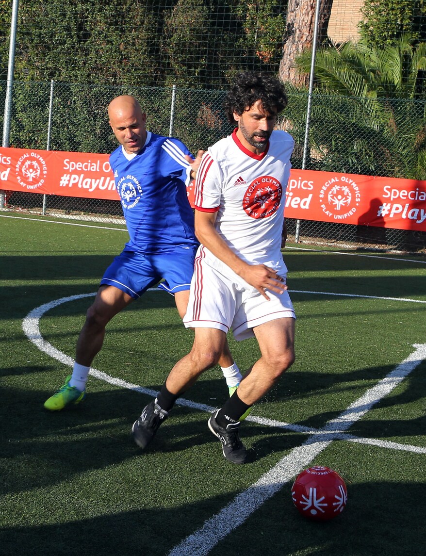 Il presidente del Coni e il Ministro dello Sport hanno partecipato al match che ha anticipato il torneo internazionale di calcio a 5 unificato. Presenti anche Tommasi e Di Biagio