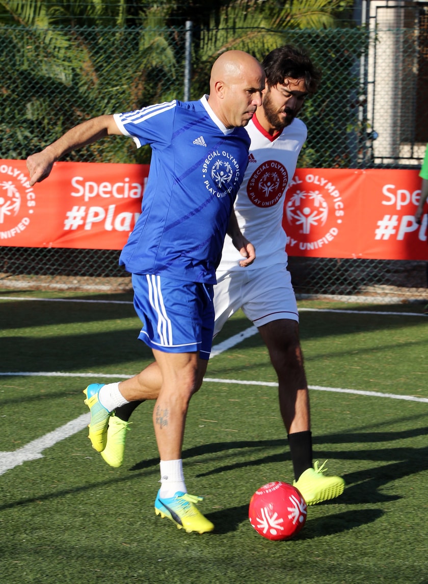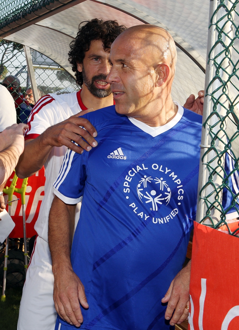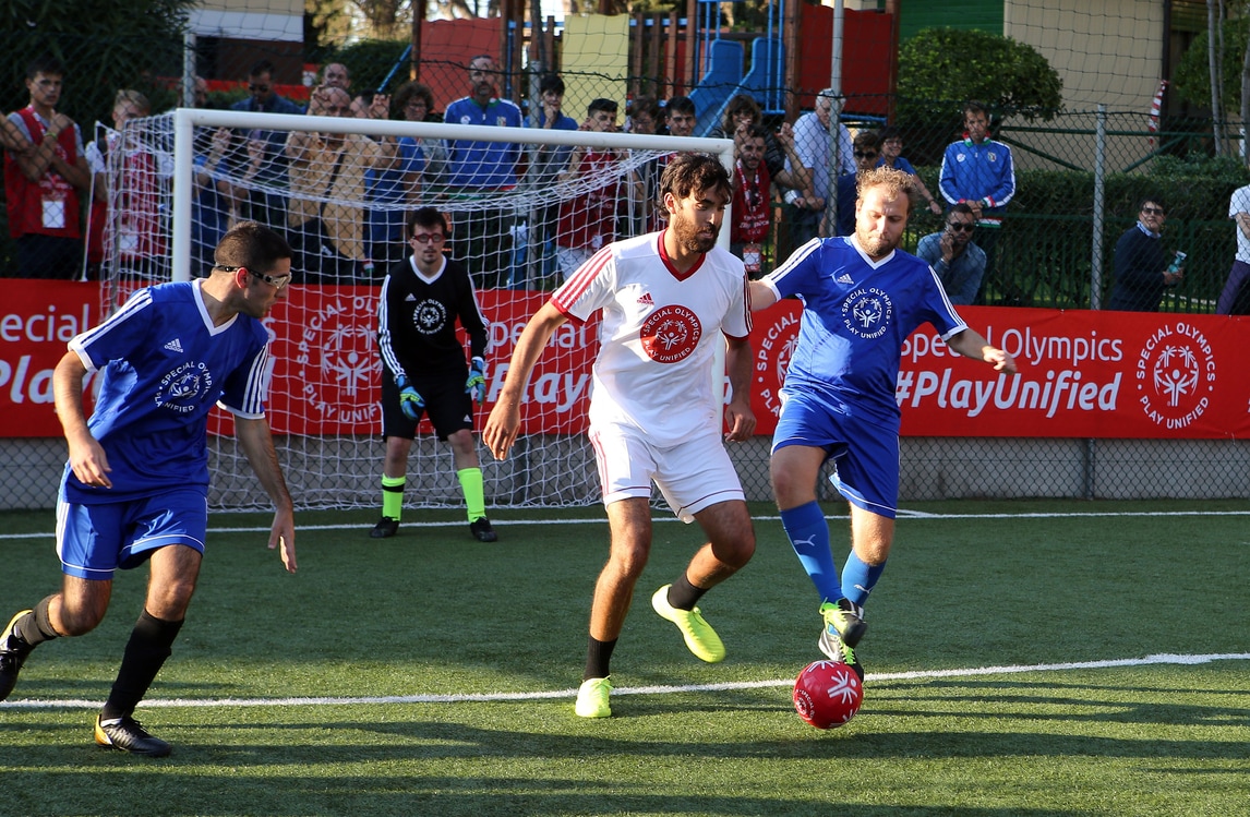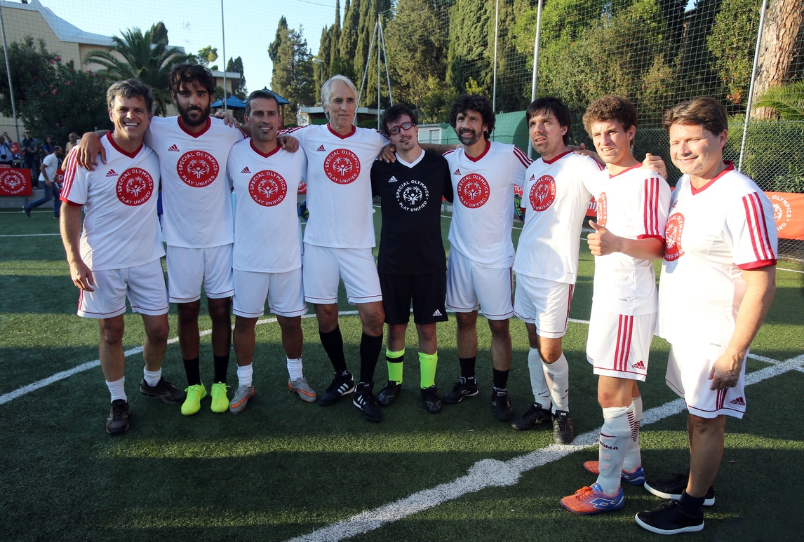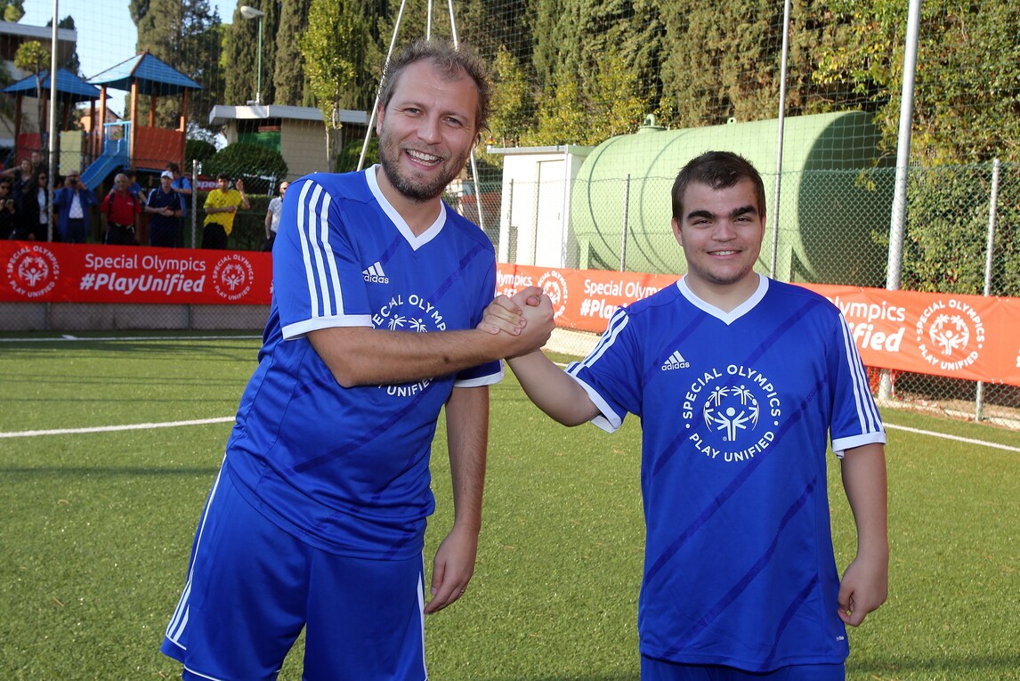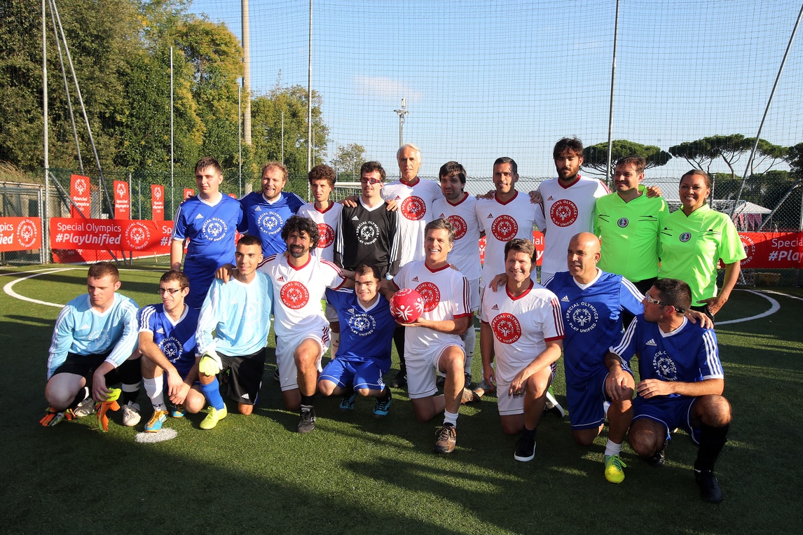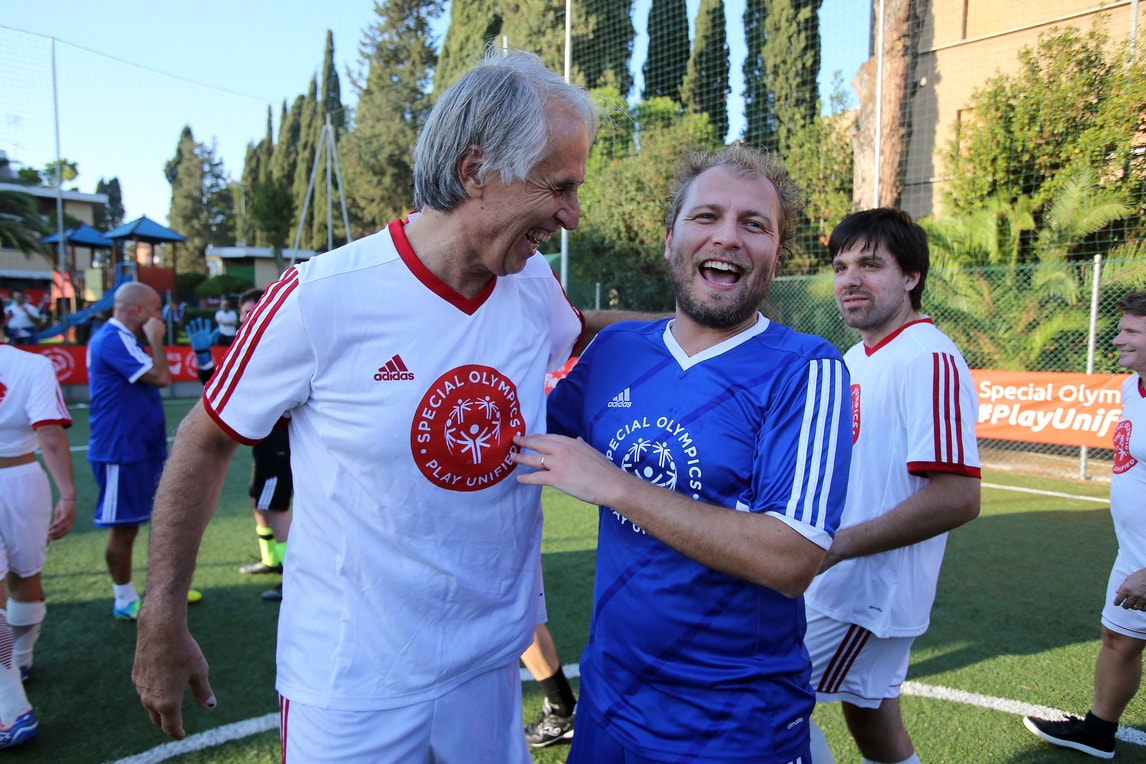 Il presidente del Coni e il Ministro dello Sport hanno partecipato al match che ha anticipato il torneo internazionale di calcio a 5 unificato. Presenti anche Tommasi e Di Biagio