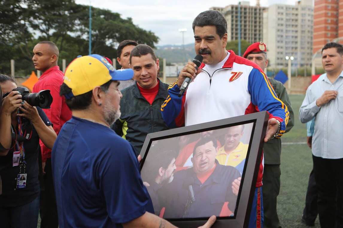 Il Pibe de Oro partecipa a un evento a Caracas insieme a Maduro. Durante la visita nel Paese, l'ex calciatore ha anche firmato un contratto con Telesur per un programma durante Russia 2018