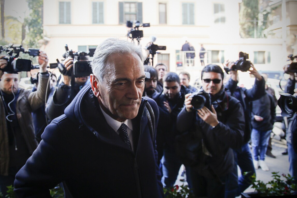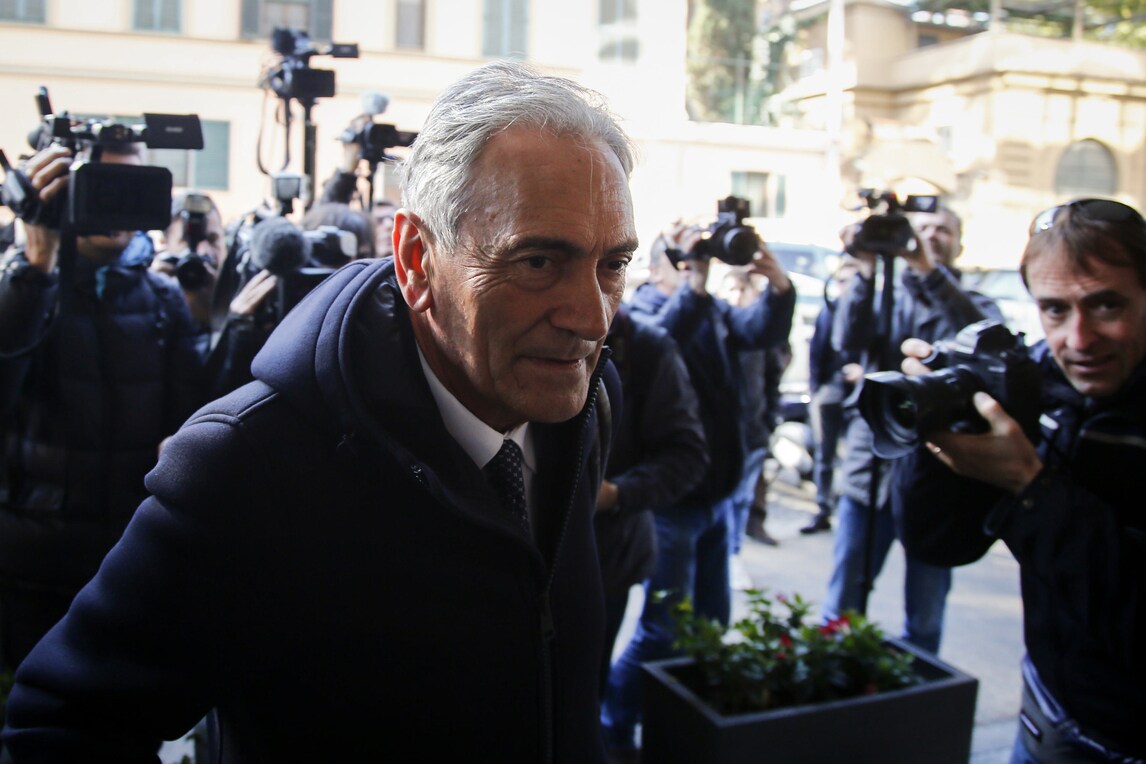 Tutti i rappresentanti del mondo del calcio riuniti nella sede di via Allegri a Roma nel giorno delle dimissioni di Tavecchio