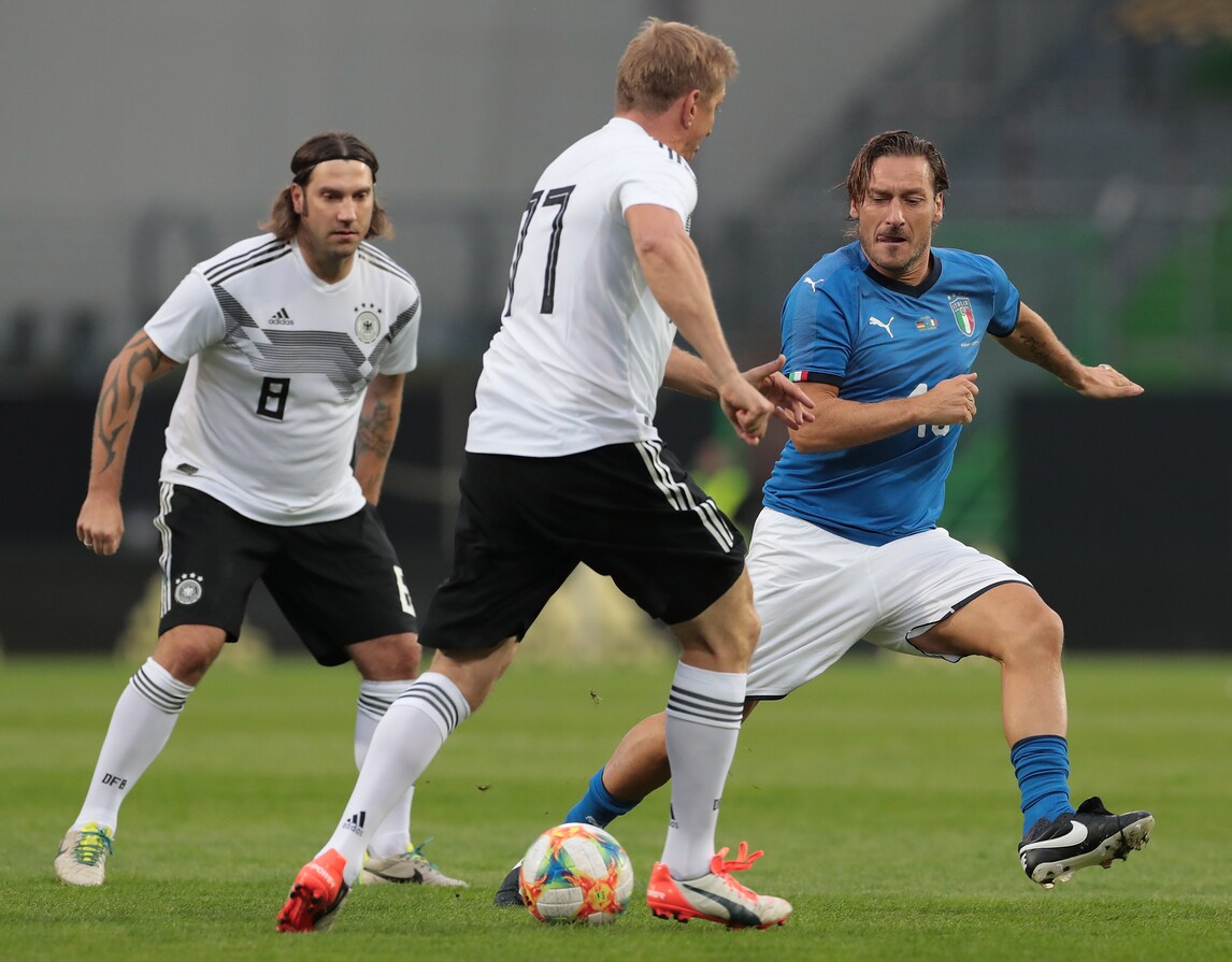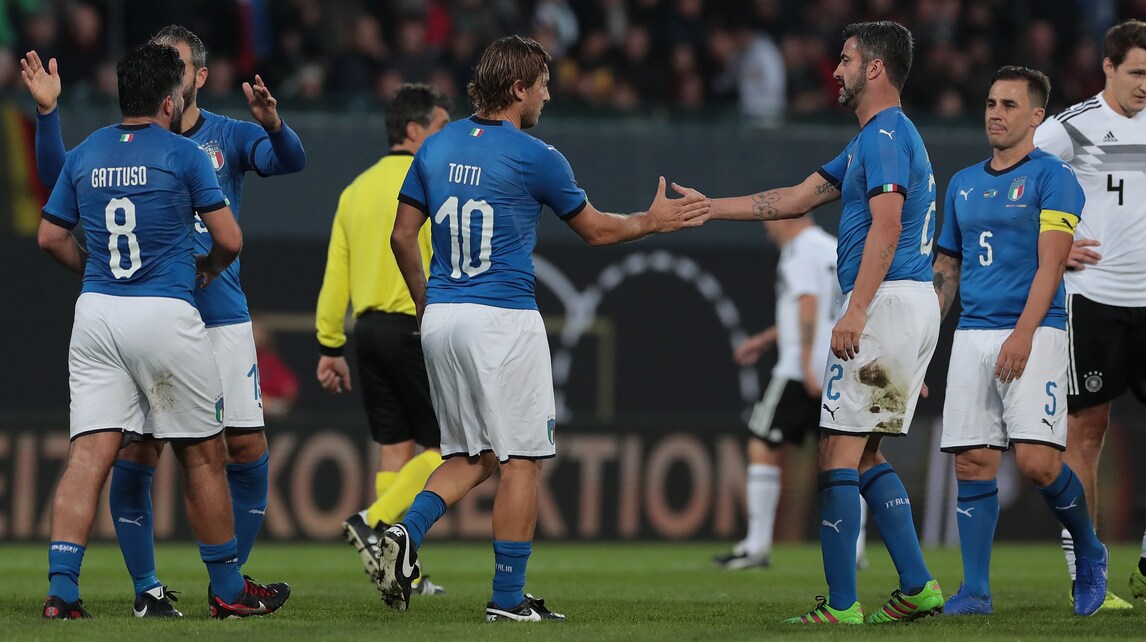 Leggende azzurre, Totti in campo con Gattuso, Pirlo, Toni e non solo