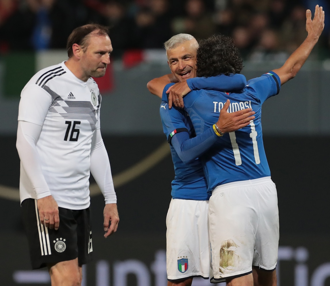 La nazionale azzurra delle leggende scende in campo contro la Germania ed entusiasma il pubblico presente