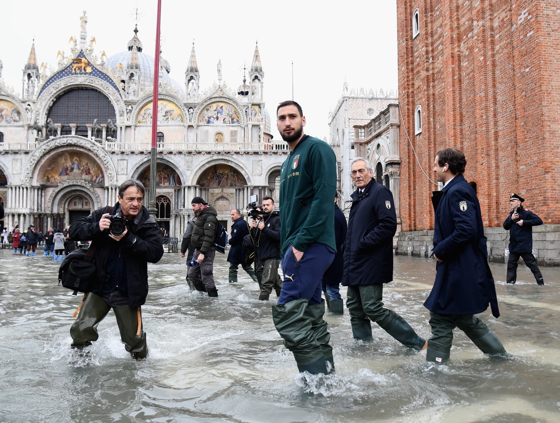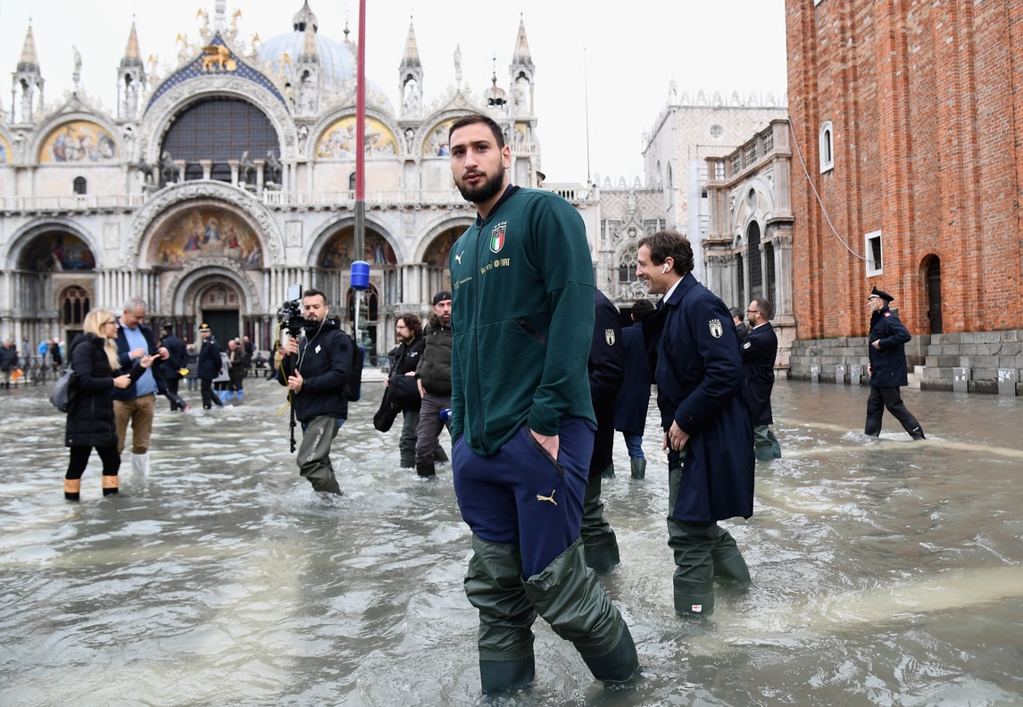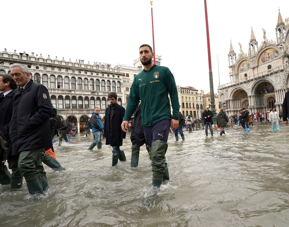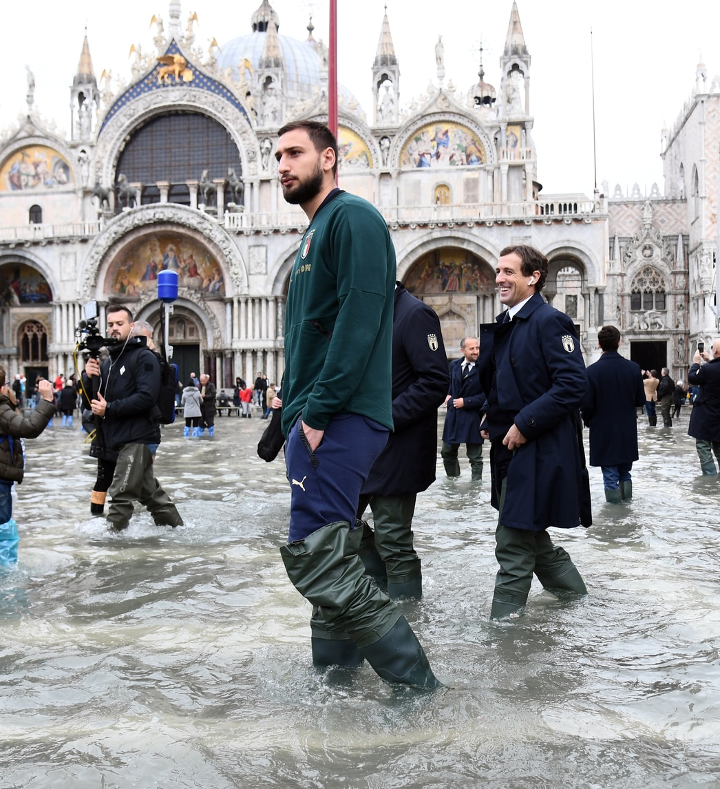 La delegazione composta dal portiere, Vialli e il presidente Gravina ha fatto visita al centro di Venezia per manifestare la solidarietà della Federazione