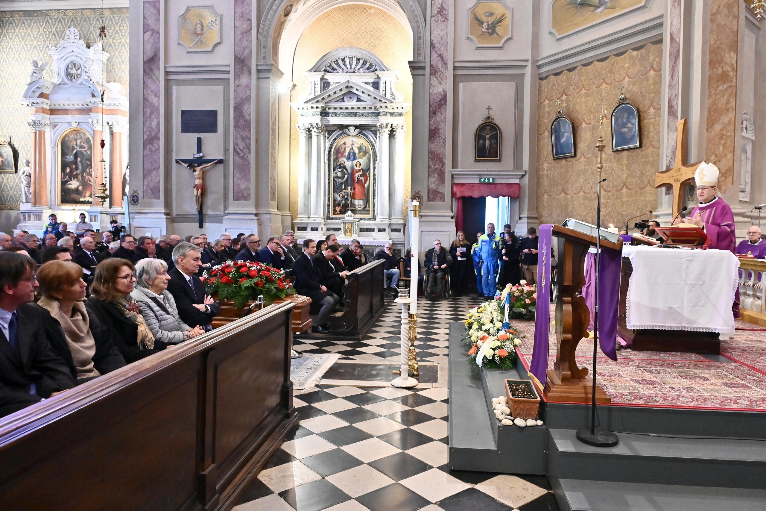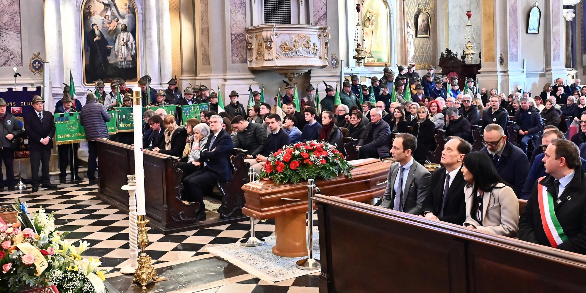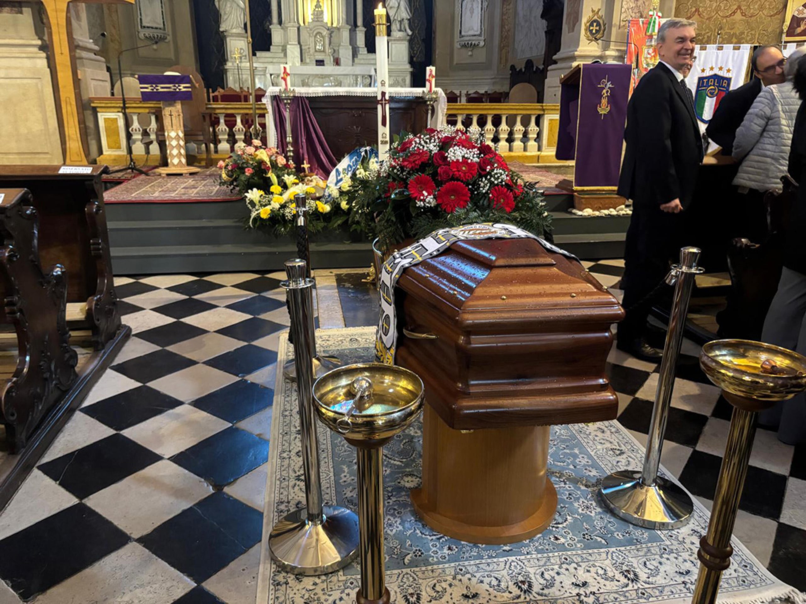 Una folla commossa si è raccolta per tributare omaggio al giornalista scomparso il 5 marzo. Ci sono la moglie Maria, i tre figli e i nipoti ma anche le autorità, dirigenti ed ex dirigenti sportivi, vecchie glorie del calcio, colleghi e rappresentanze dell'associazione nazionale alpini