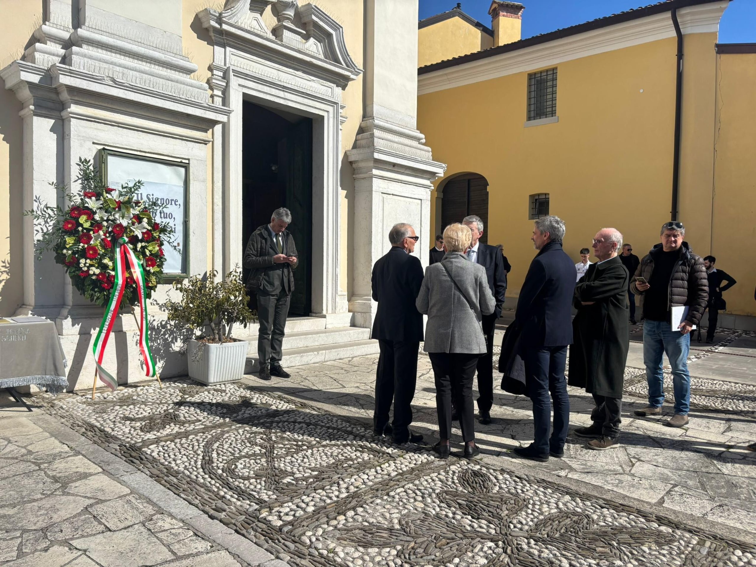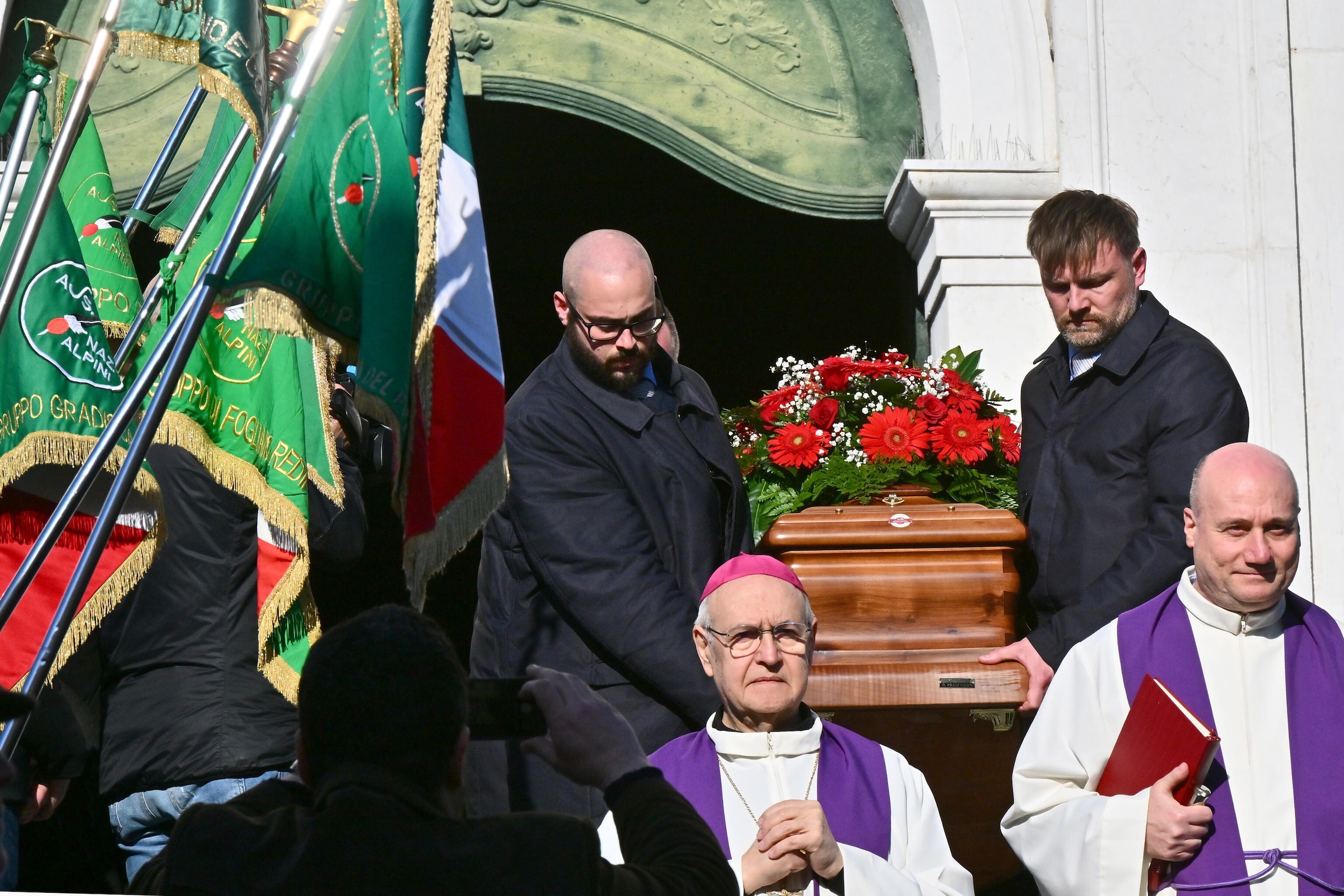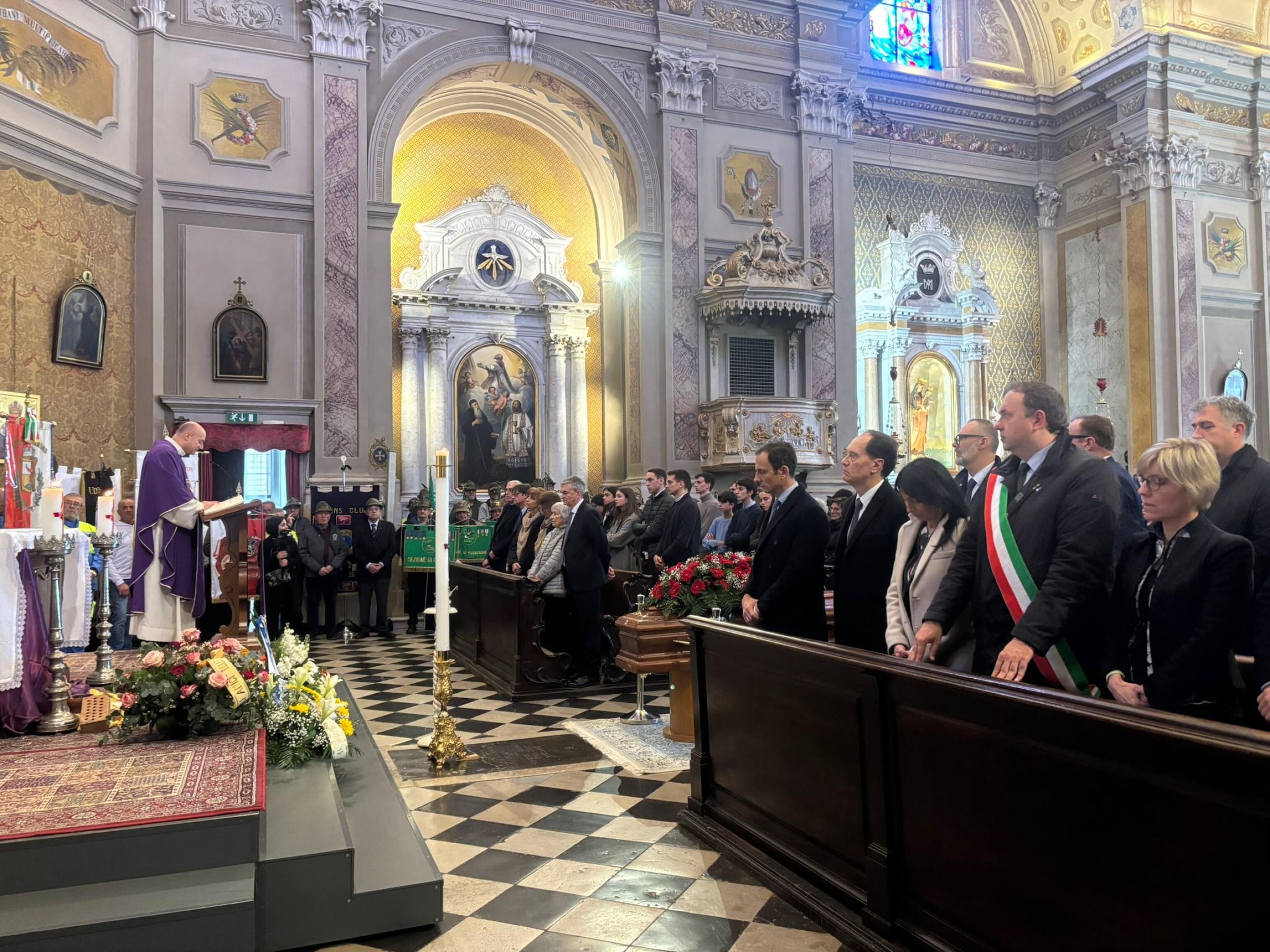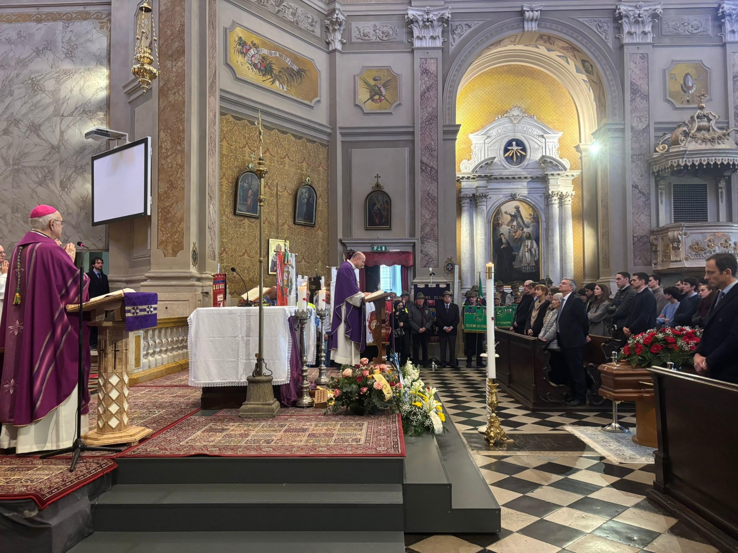 Una folla commossa si è raccolta per tributare omaggio al giornalista scomparso il 5 marzo. Ci sono la moglie Maria, i tre figli e i nipoti ma anche le autorità, dirigenti ed ex dirigenti sportivi, vecchie glorie del calcio, colleghi e rappresentanze dell'associazione nazionale alpini