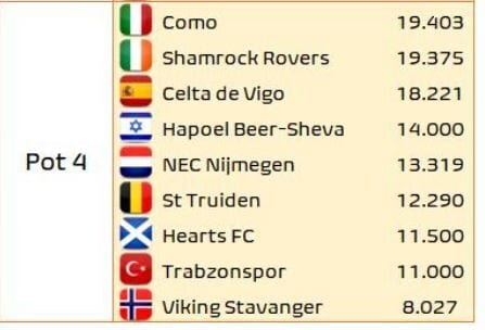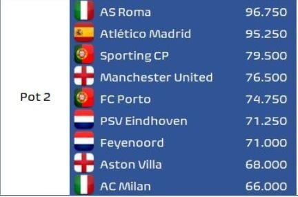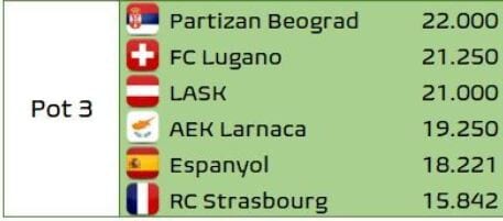 Competizioni europee: queste le squadre presenti se la Serie A finisse alla 26ª giornata. Ecco i pot delle 3 competizioni secondo Football Meets Data: Fiorentina in UEL al posto dell' Atalanta che scivola in UECL perché i Viola, avendo il coefficiente Uefa più alto della Conference, vengono considerati vincitori
