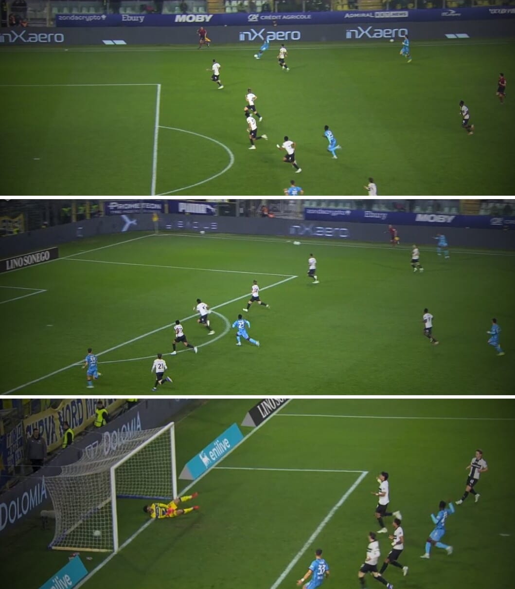 La sequenza della prodezza che ha portato in vantaggio i sardi