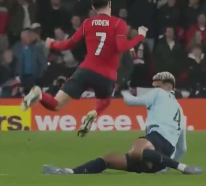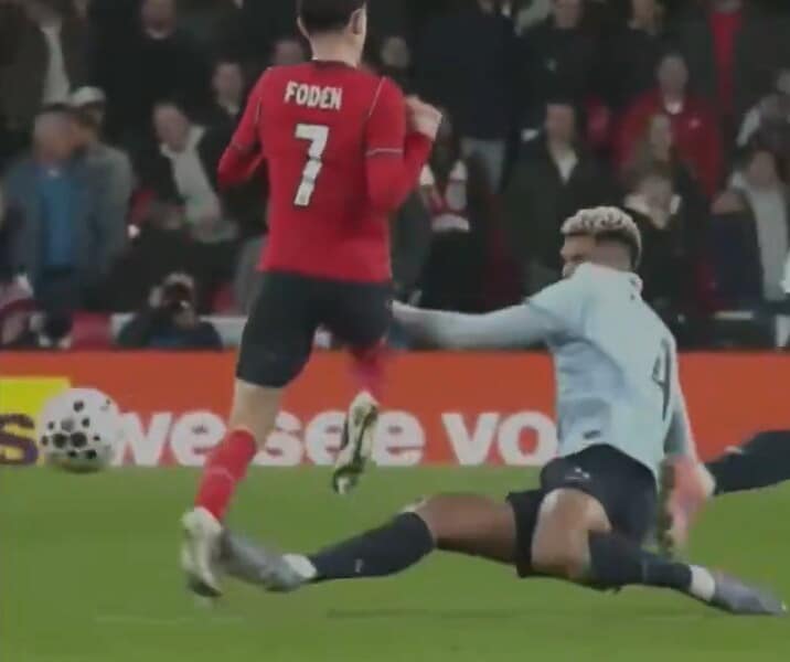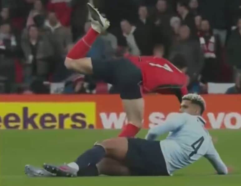 Solo un'amichevole a Wembley, ma il difensore entra comunque durissimo sull'avversario e scatena le polemiche: cosa è successo