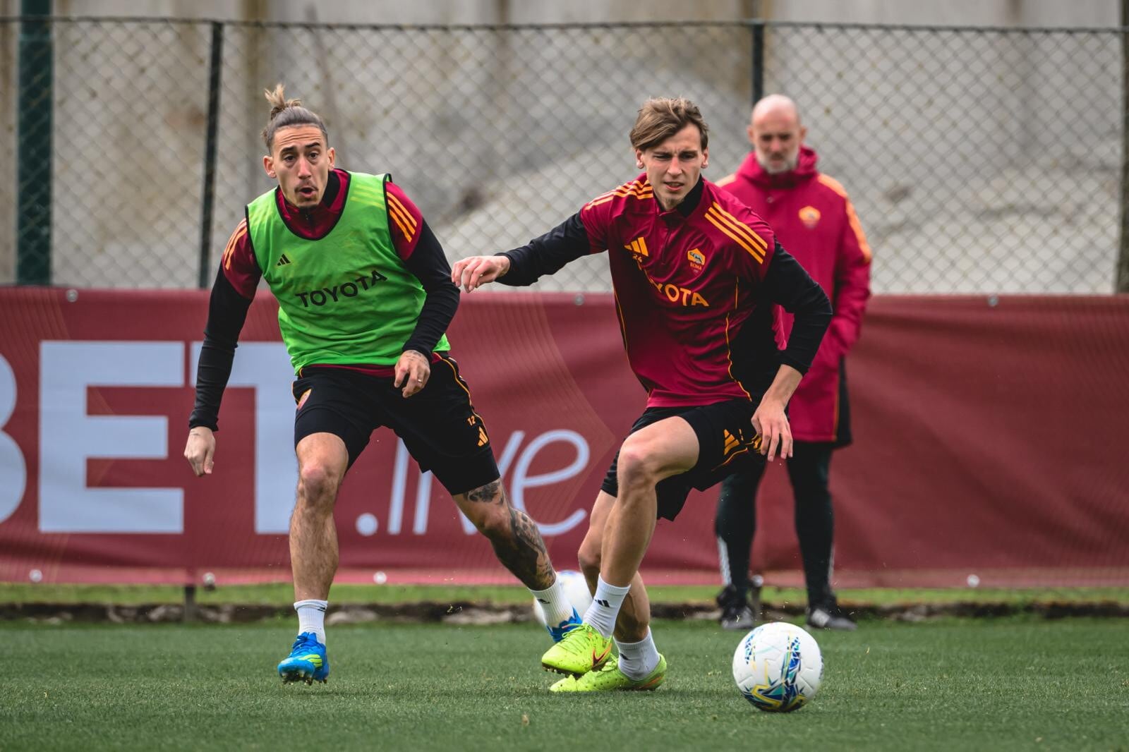 Cristante e Mancini in campo con la Roma dopo lo shock Mondiale