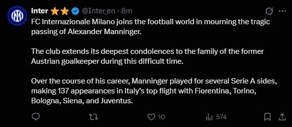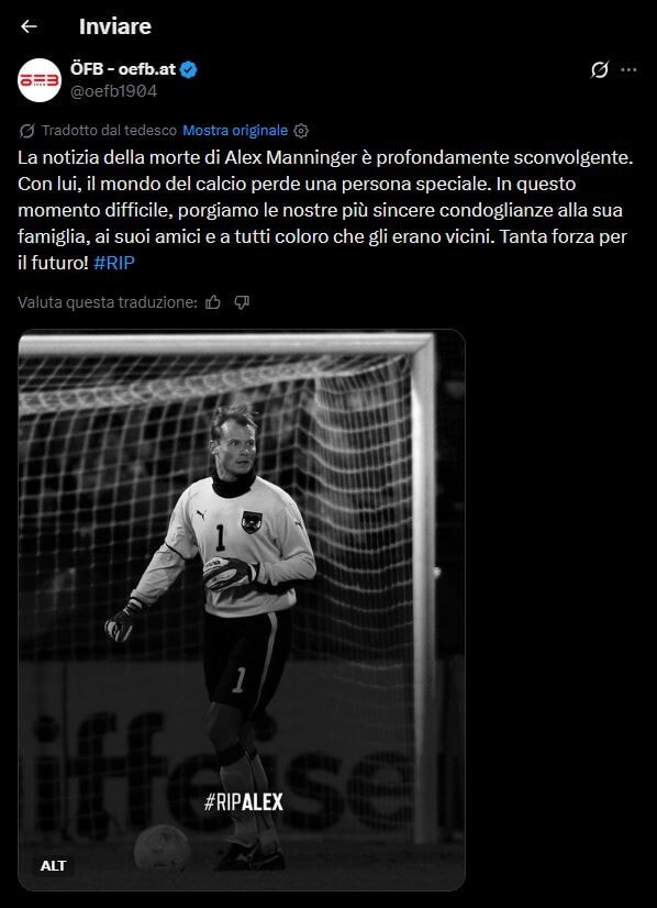 CalcioLa notizia della tragica morte di Manninger fa il giro del mondo: ecco tutte le aperture dei siti internazionali