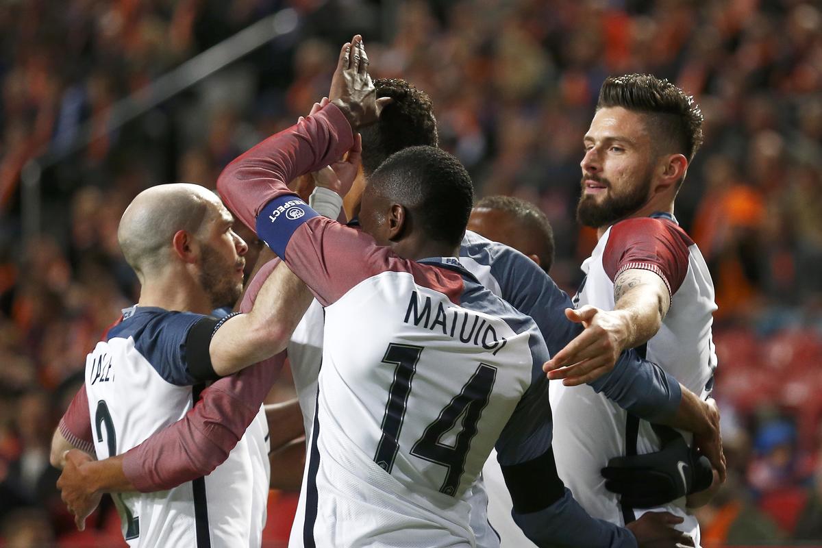 L'amichevole ad Amsterdam vinta dai francesi (Griezmann, Giroud, de Jong, Afellay e Matuidi) nel ricordo di Cruyff, il campione del calcio olandese scomparso all'età di 68 anni