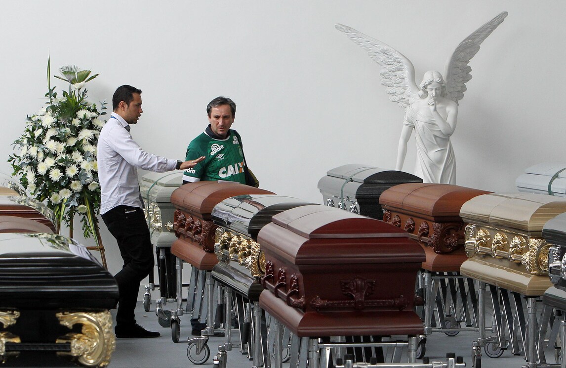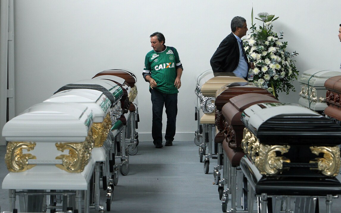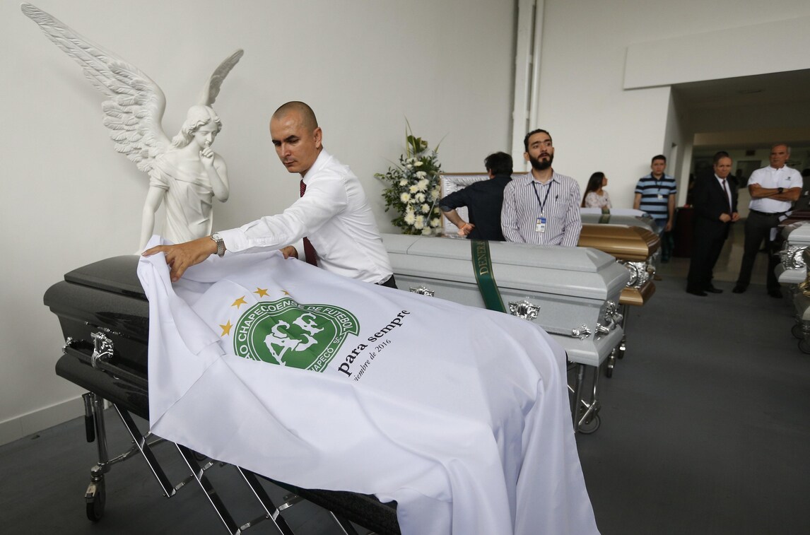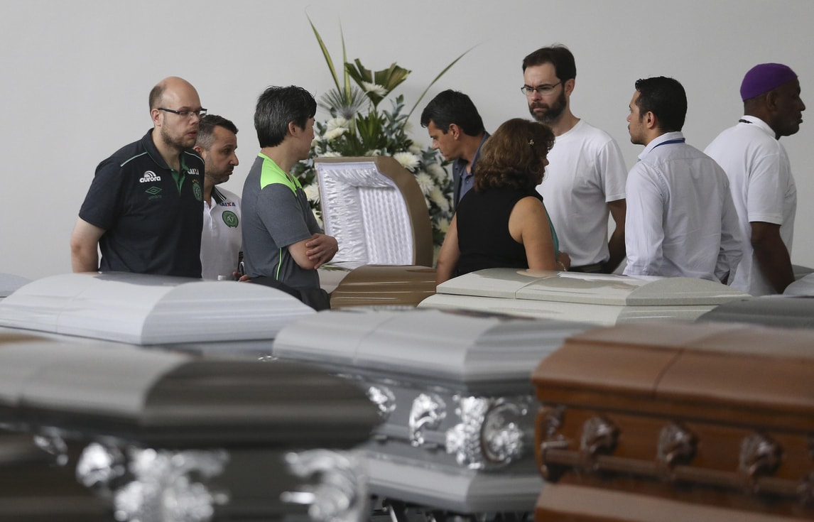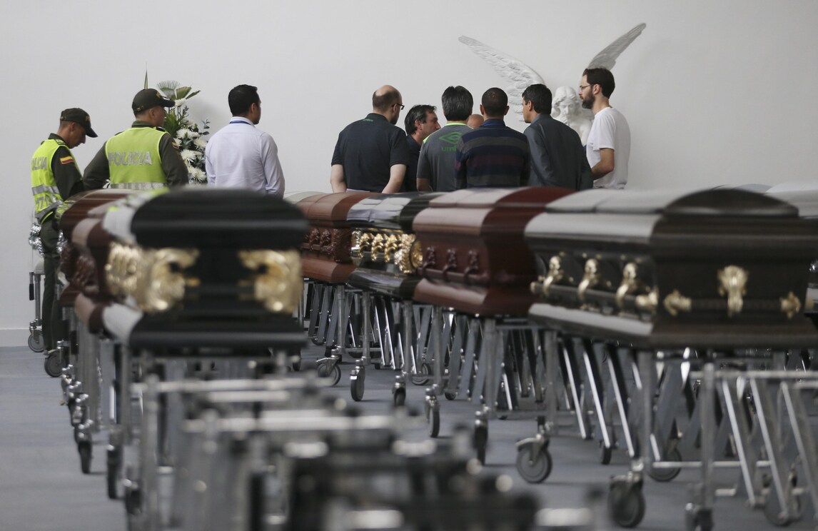 Le immagini delle bare contenenti i resti delle vittime della tragedia aerea di Medellin