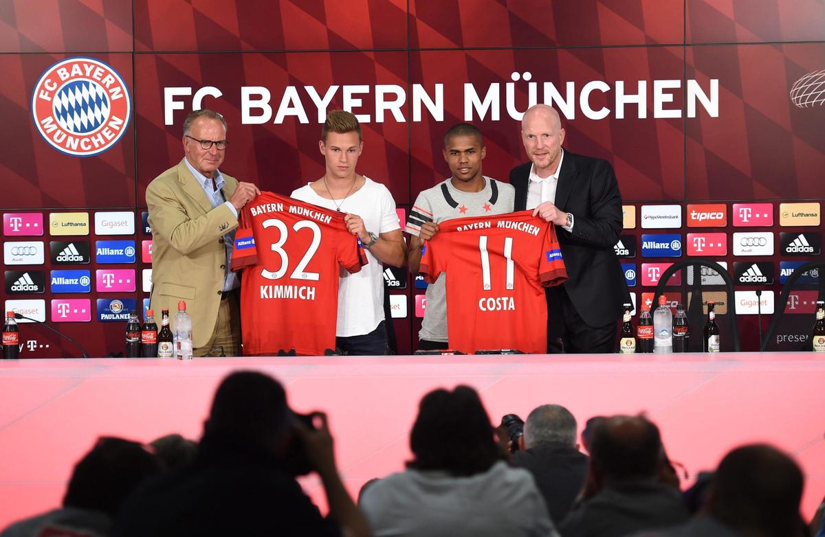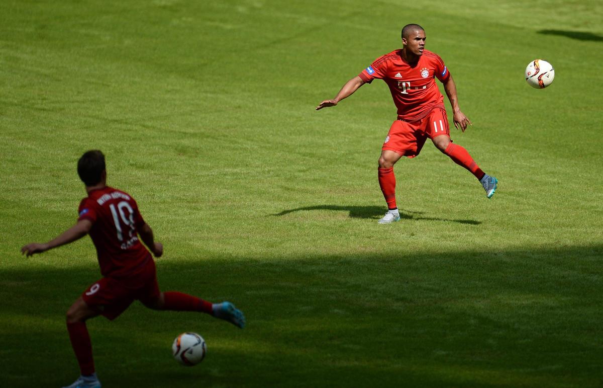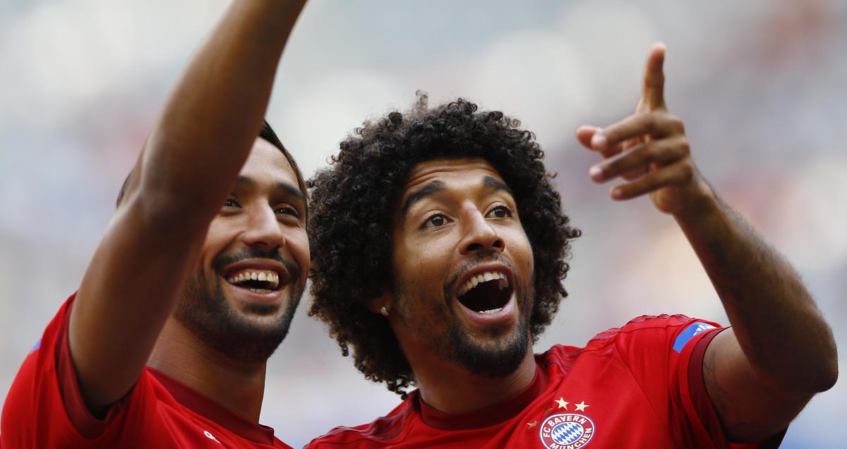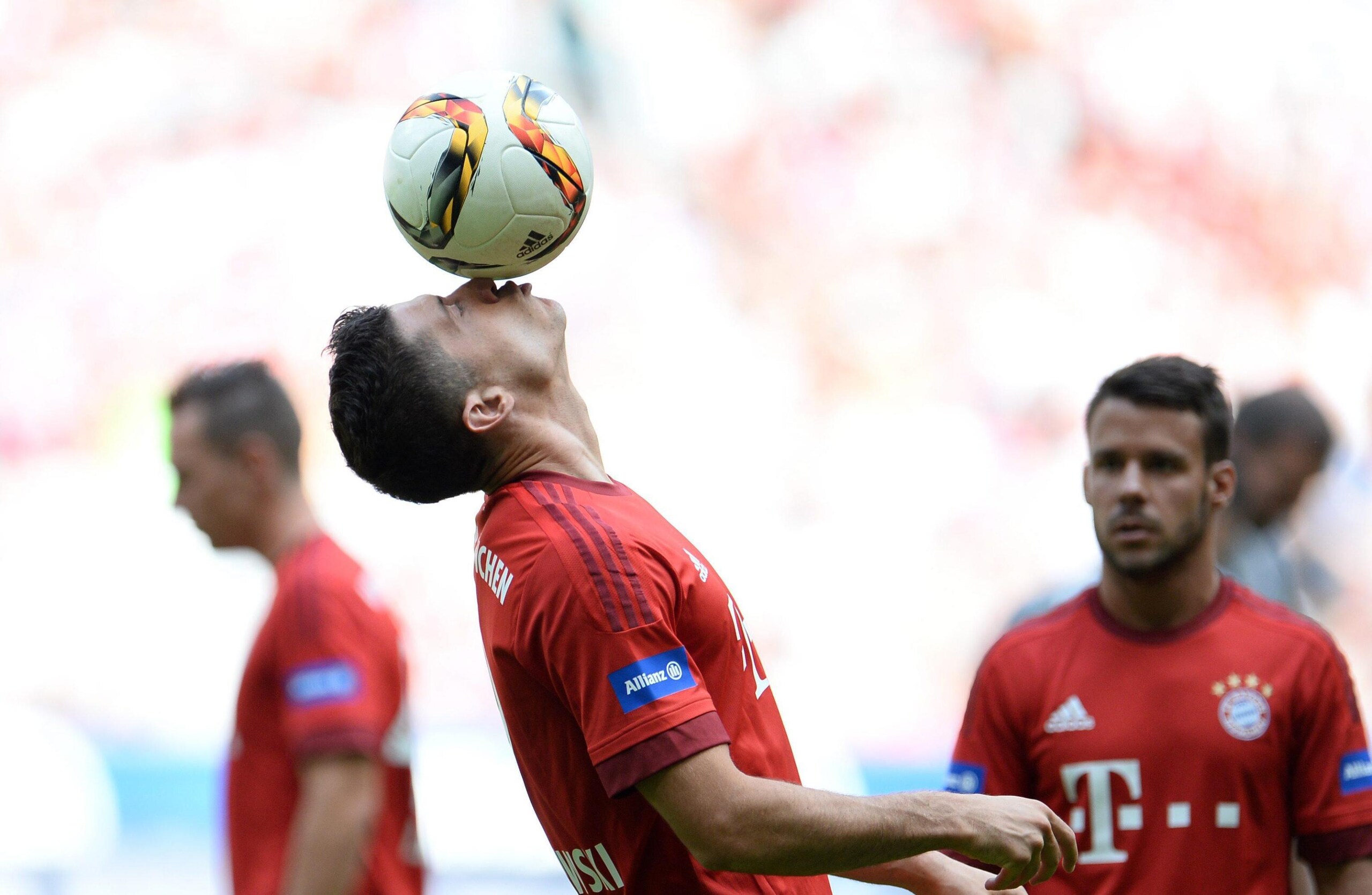I giocatori del Bayern Monaco durante la presentazione della squadra all'Allianz Arena