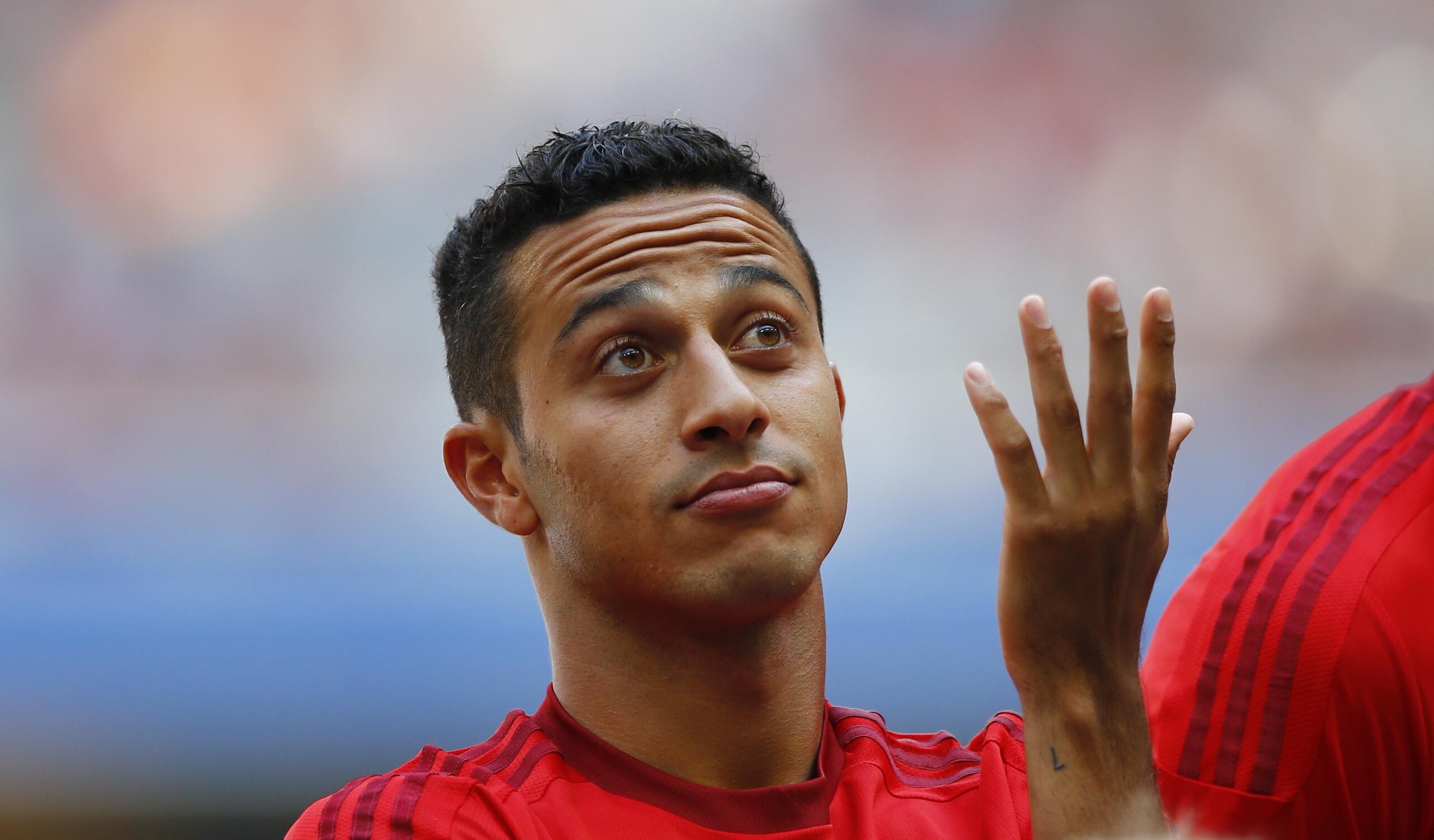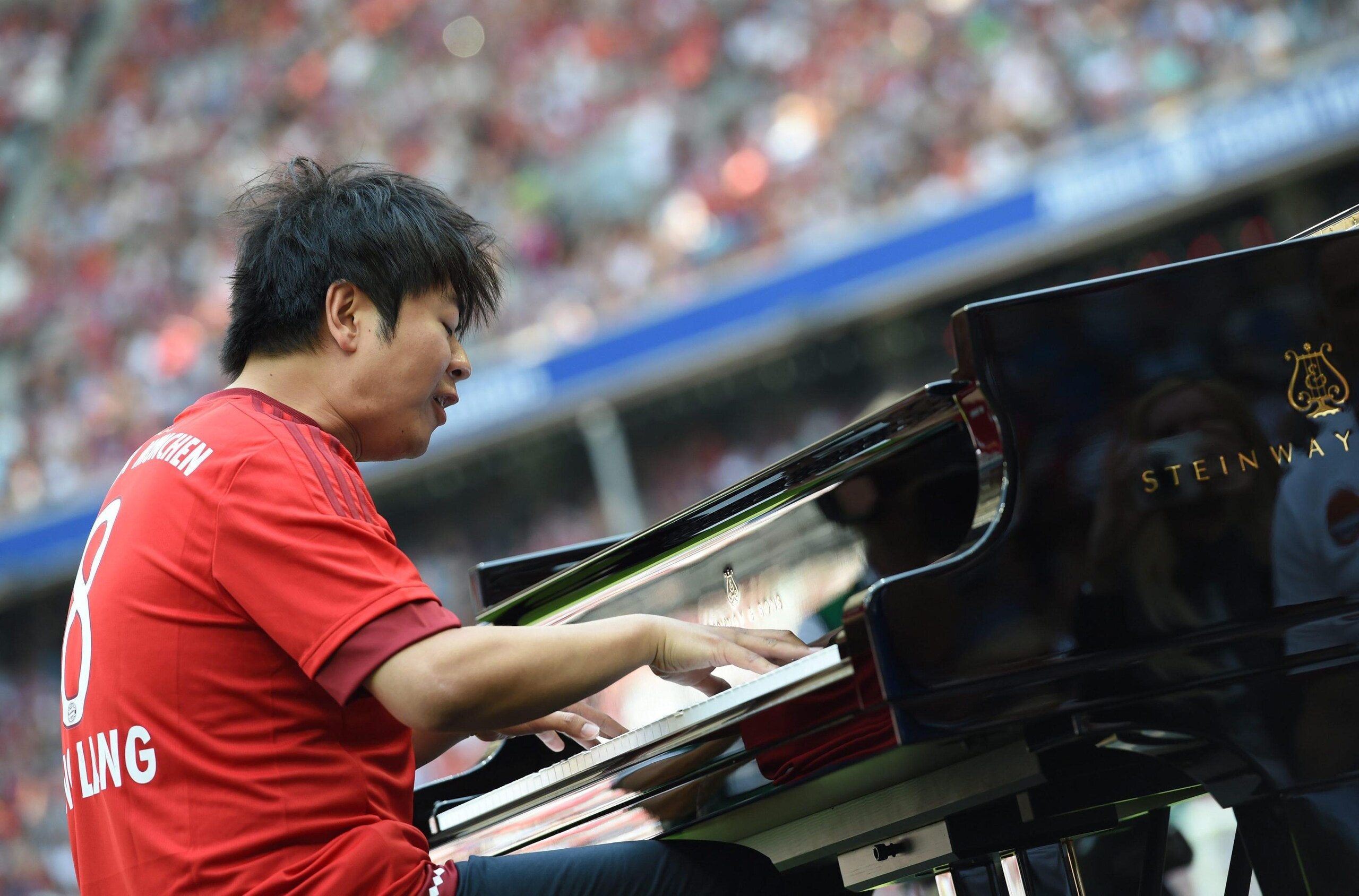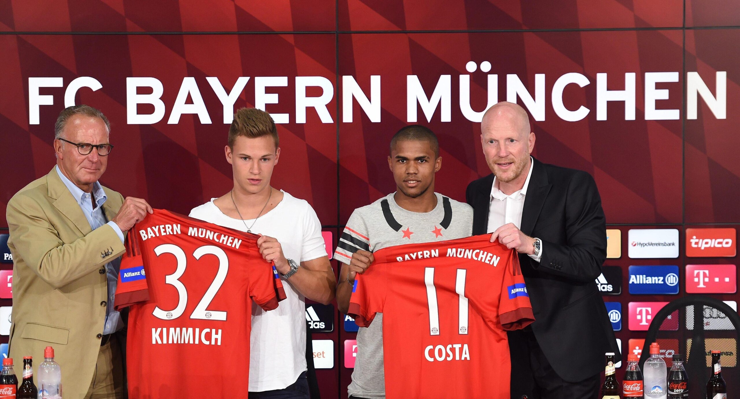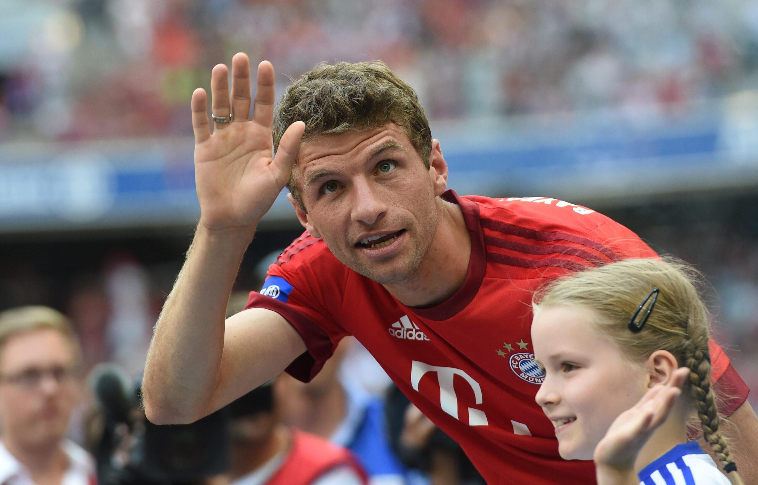 I giocatori del Bayern Monaco durante la presentazione della squadra all'Allianz Arena