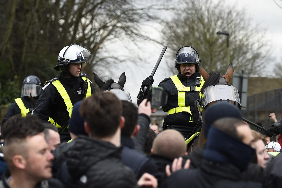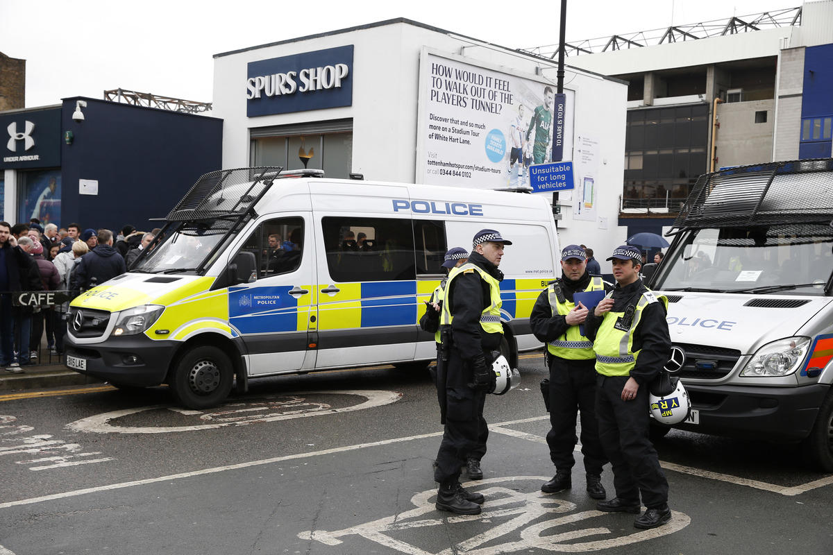 All'esterno del White Hart Lane, lo stadio del Tottenham, scontri tra un gruppo di tifosi dei Gunners e la polizia prima del fischio d'inizio di uno dei derby più sentiti di Londra: due persone sono state fermate.