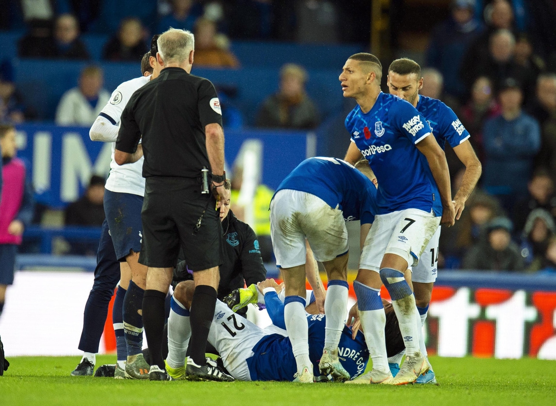 Al minuto 79 di Everton-Tottenham, il portoghese viene steso da Son. Attimi di panico al Goodison Park, con l'ex Barcellona che urla dal dolore ed il coreano, espulso, che scoppia in lacrime