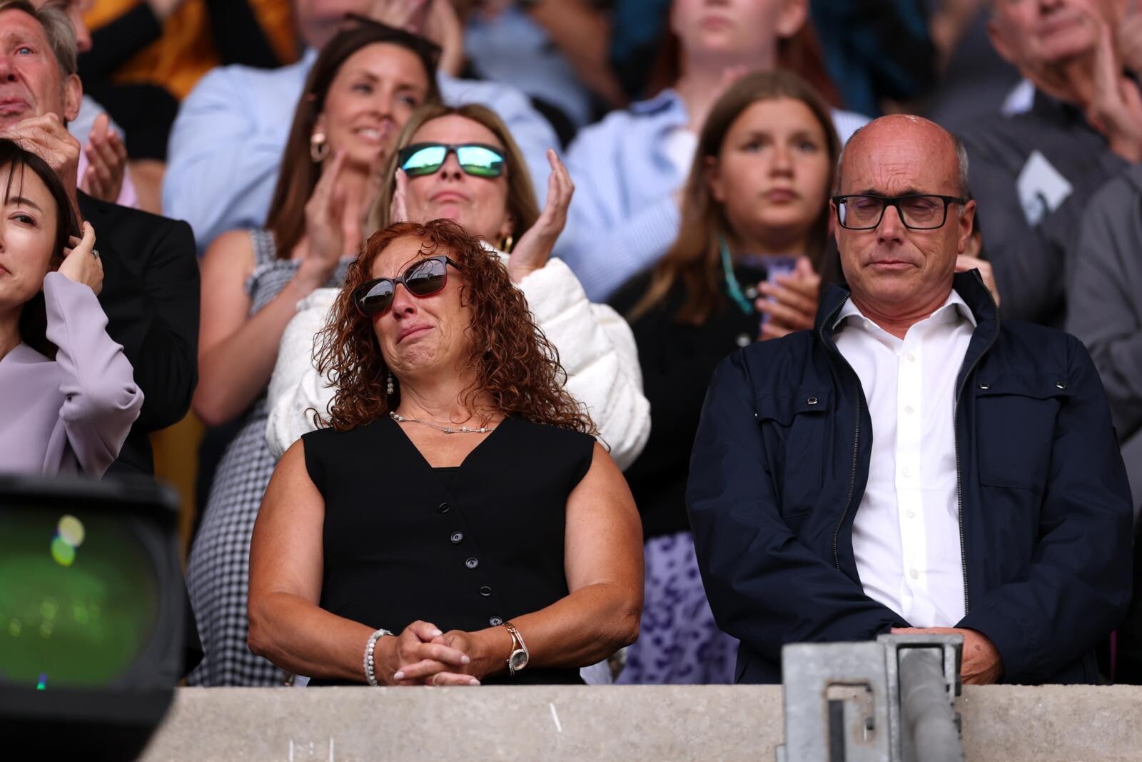 Diogo Jota, la moglie e i genitori in lacrime durante l'omaggio del Wolverhampton