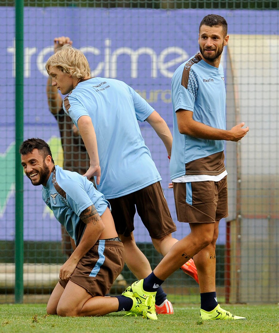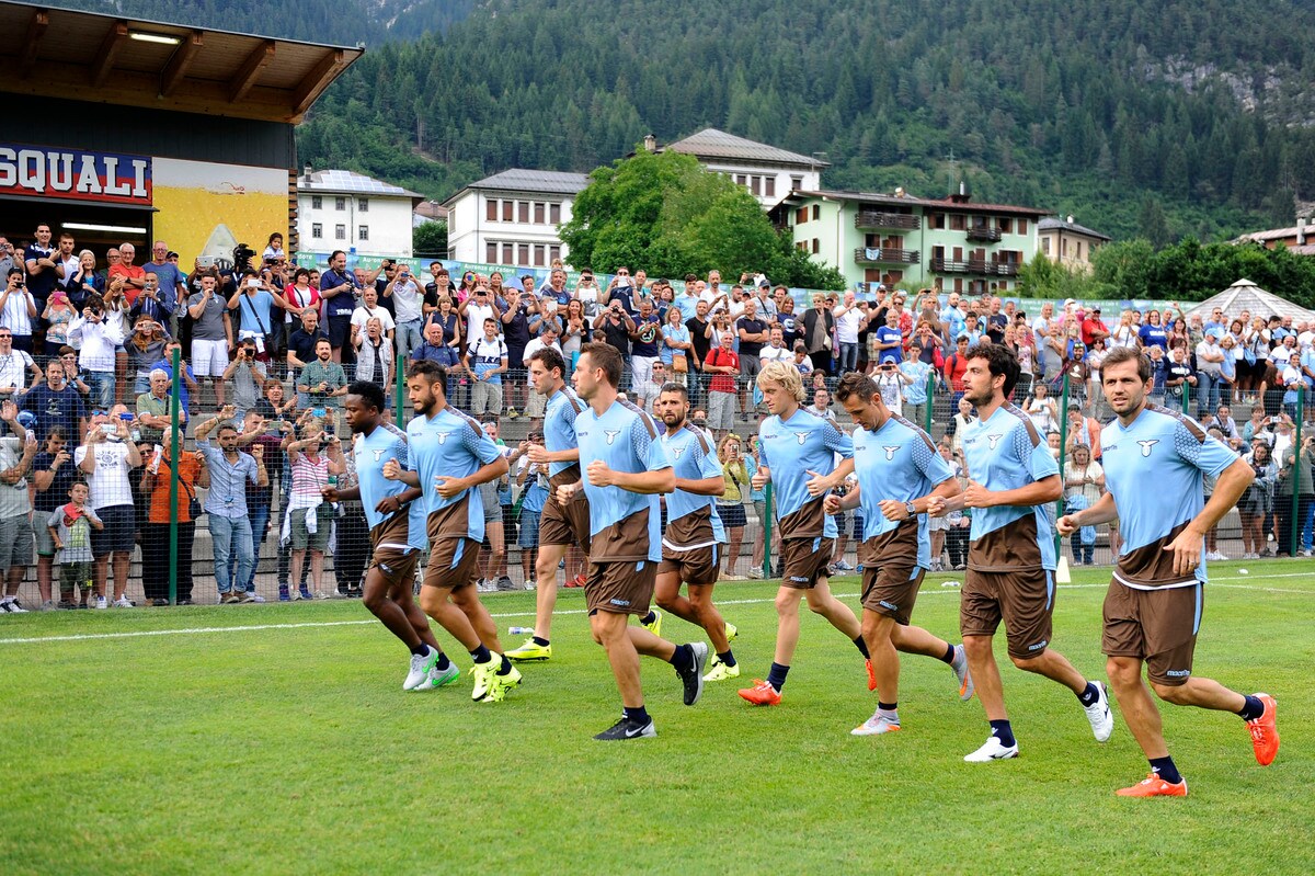 Nel ritiro di Auronzo di Cadore arrivano Candreva, Parolo, Klose, Lulic, De Vrij e gli altri nazionali. I tifosi intonano cori per loro, poi tutti in campo