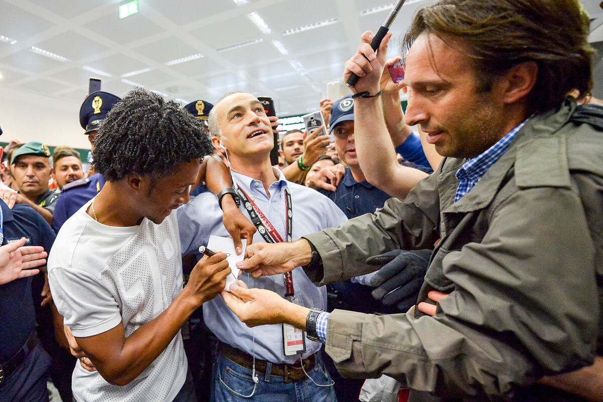 Juve, i tifosi acclamano Cuadrado a Malpensa