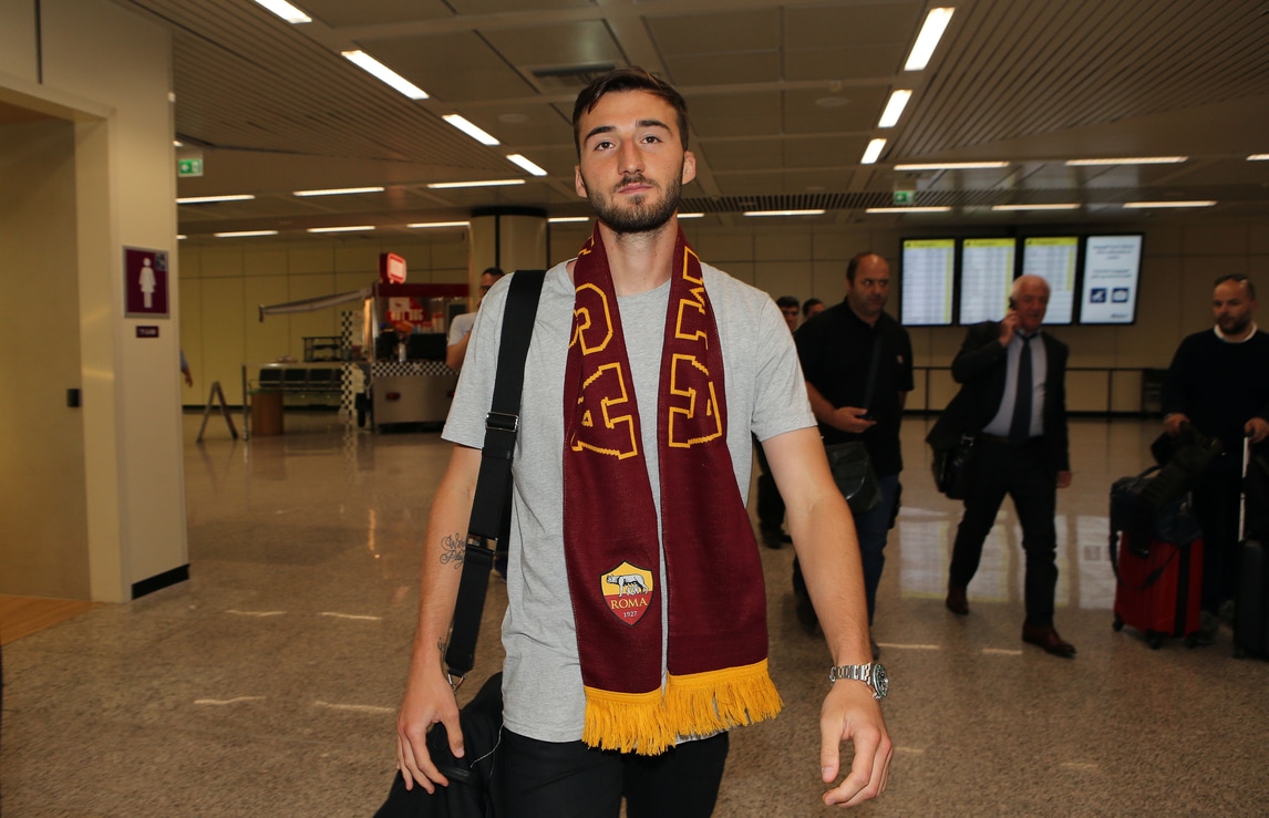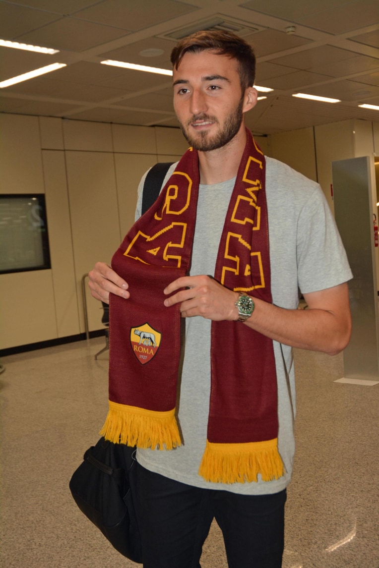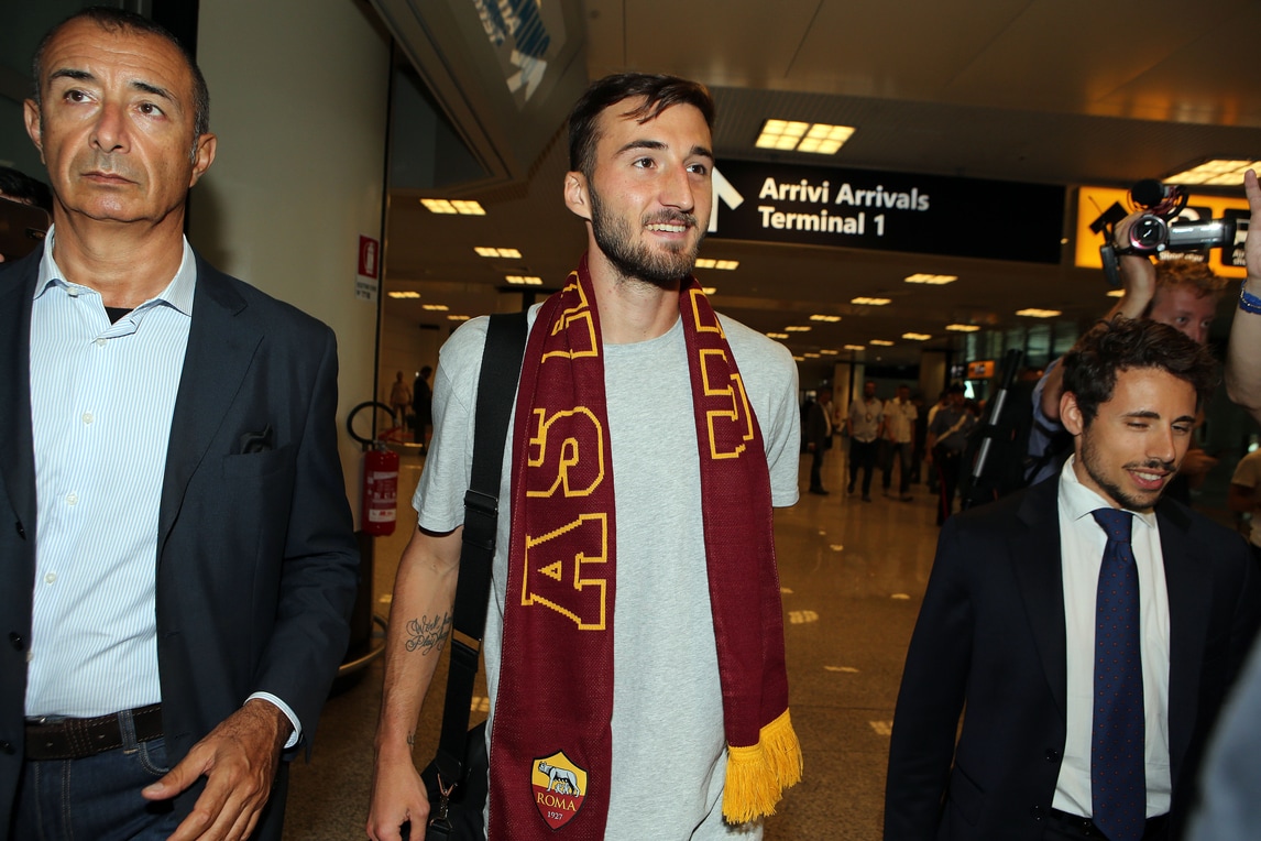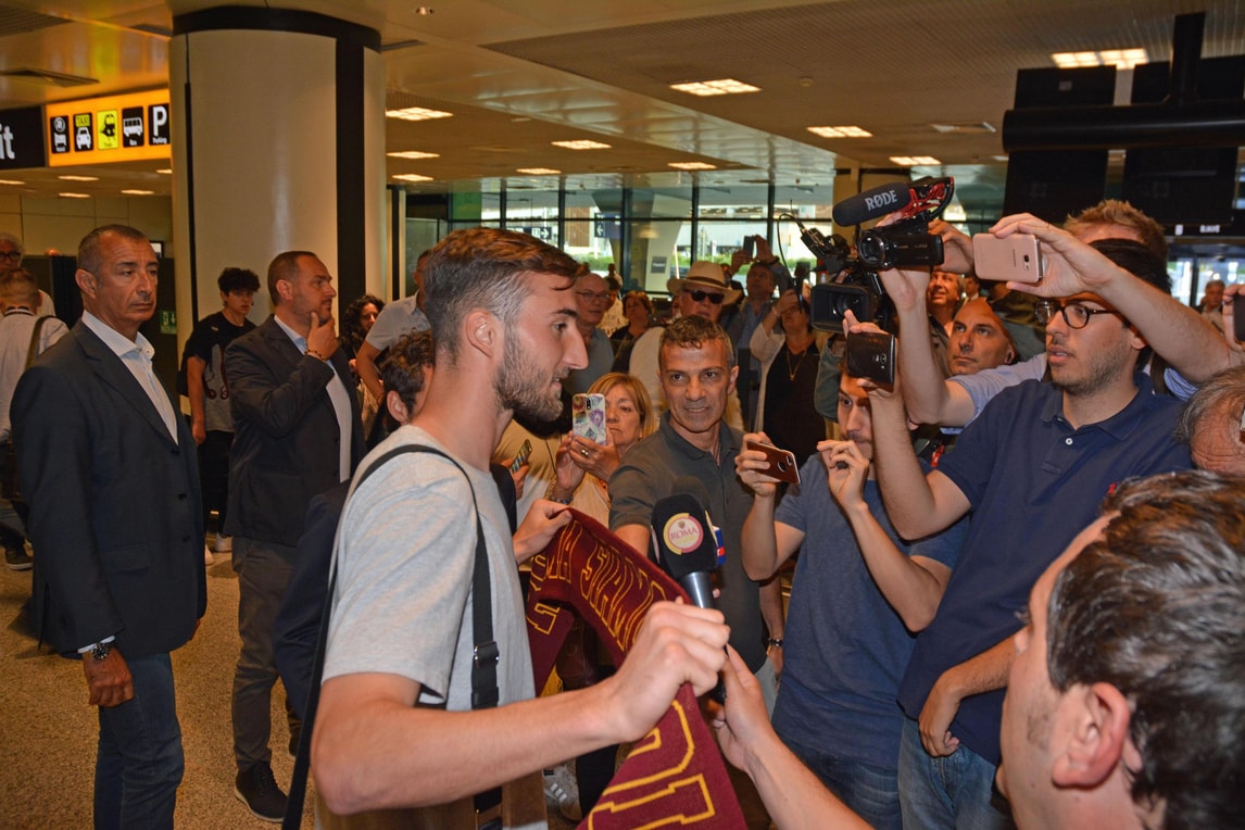 Il centrocampista prelevato dall'Atalanta è arrivato in serata a Fiumicino e ha posato subito con la sciarpa giallorossa