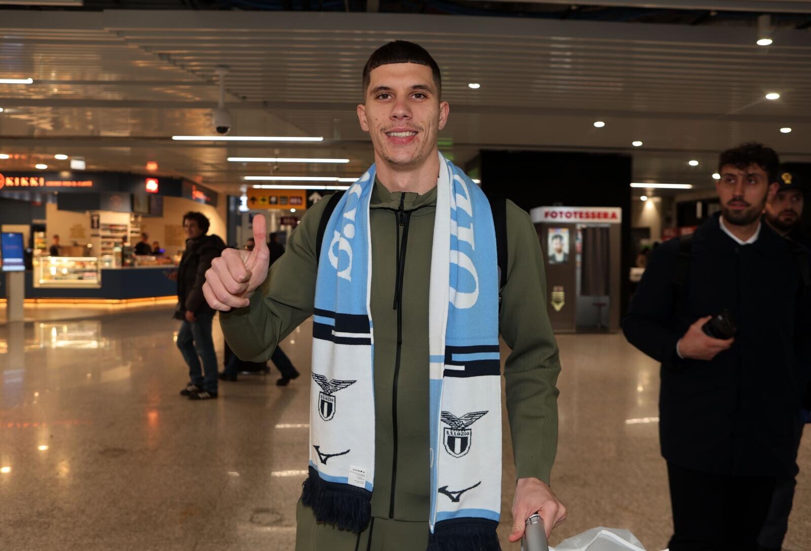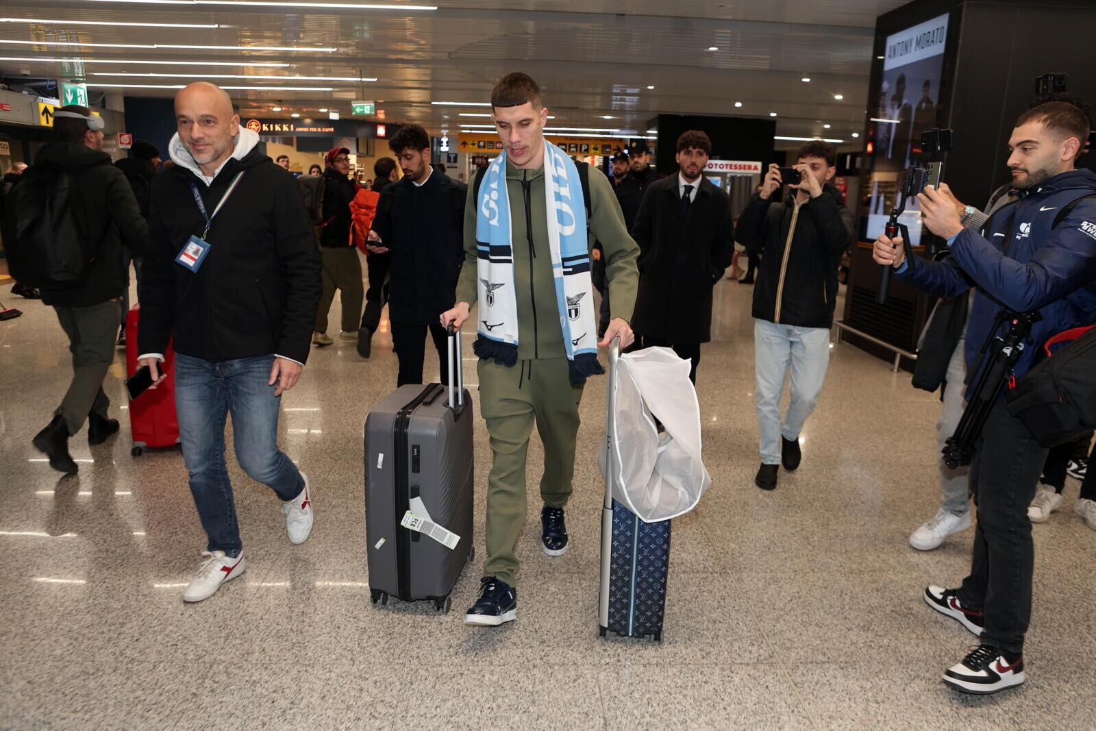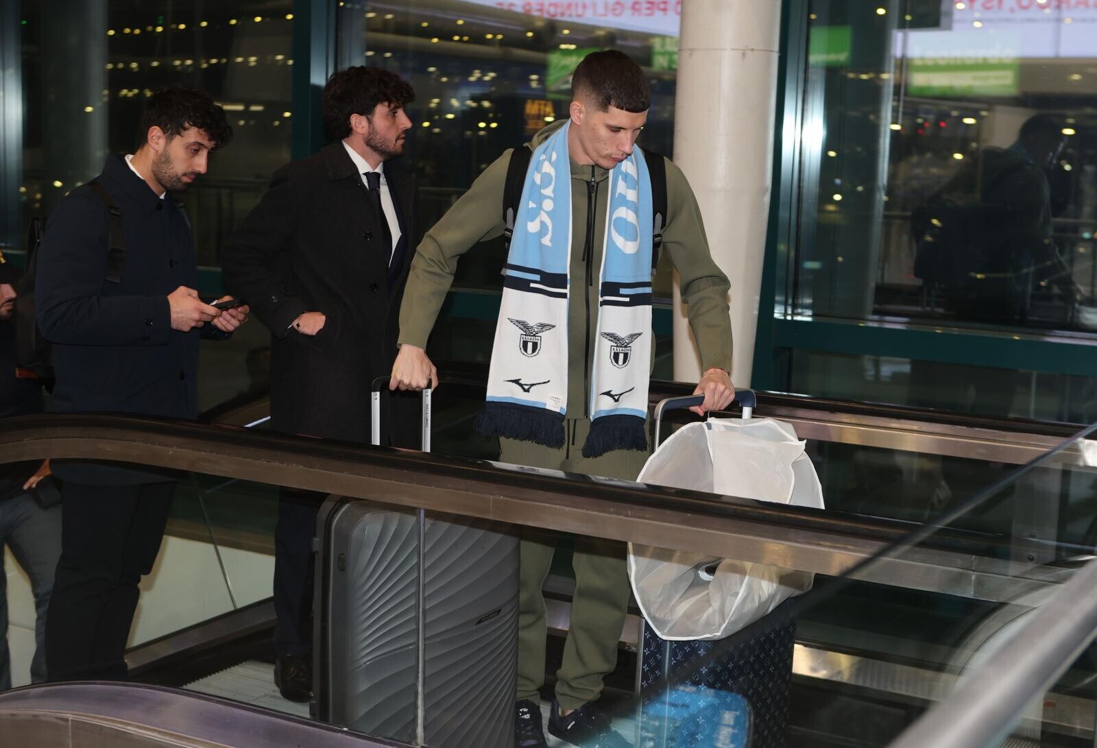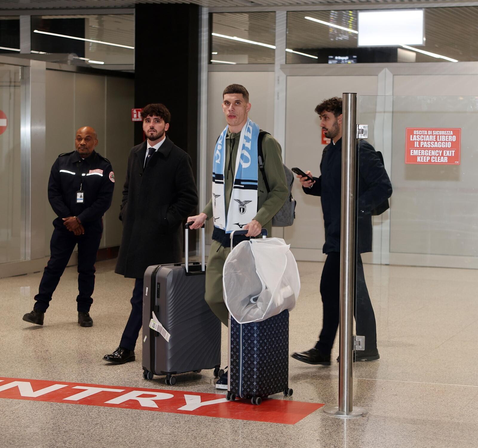 Ratkov, tutte le immagini del suo arrivo a Roma tra sciarpa, bagagli e abito elegante