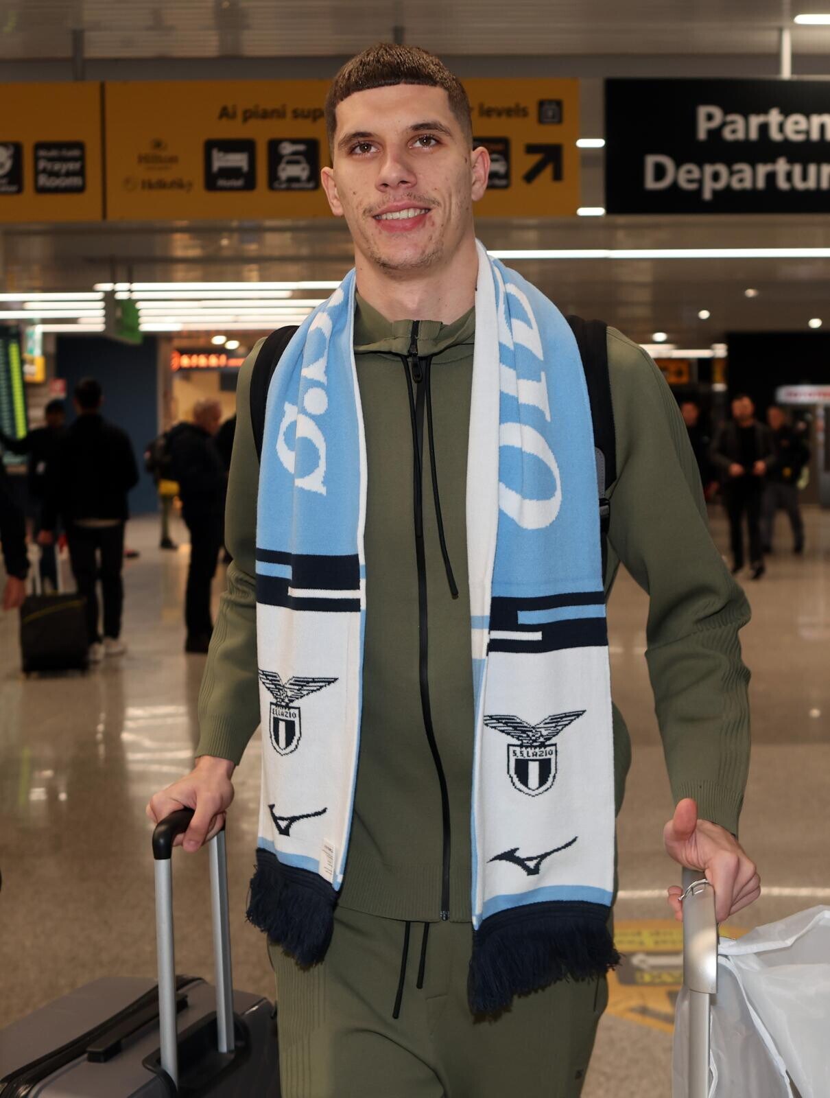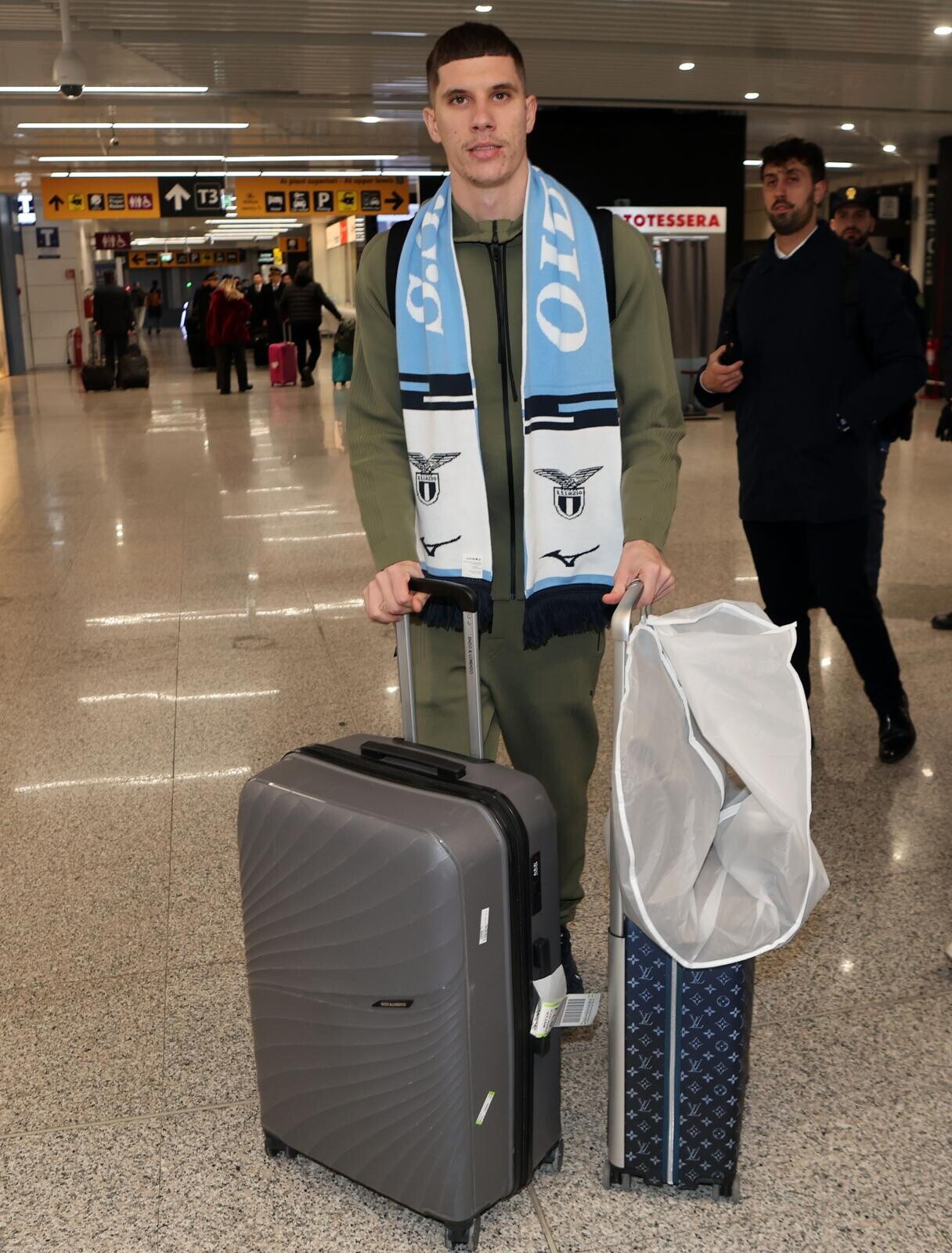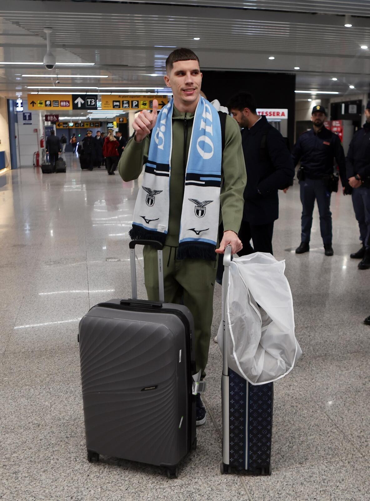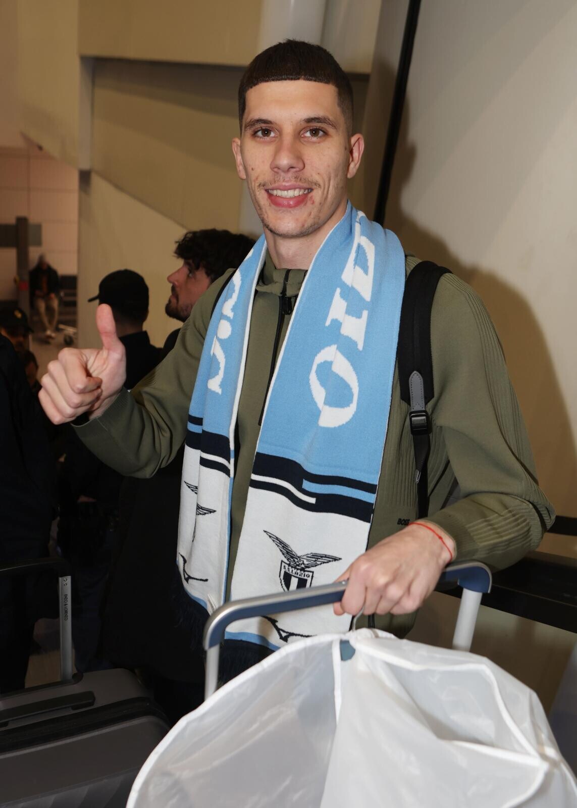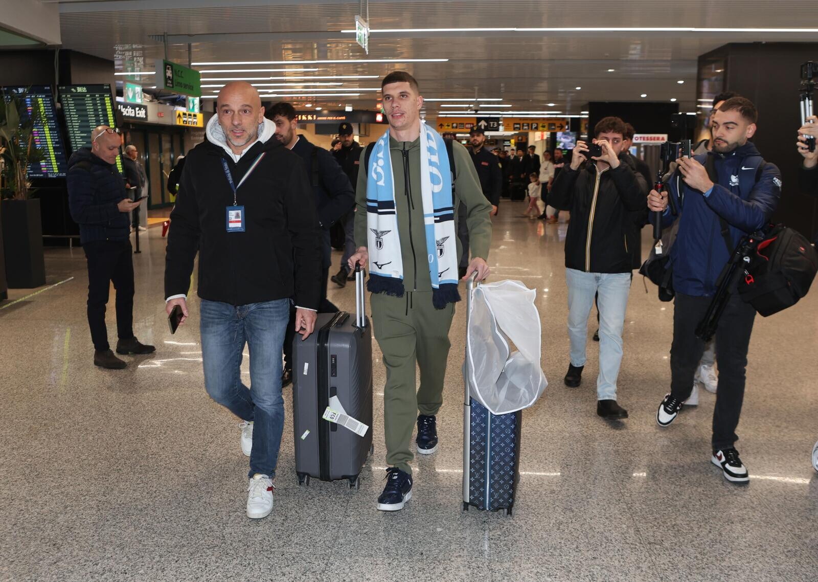 Ratkov, tutte le immagini del suo arrivo a Roma tra sciarpa, bagagli e abito elegante