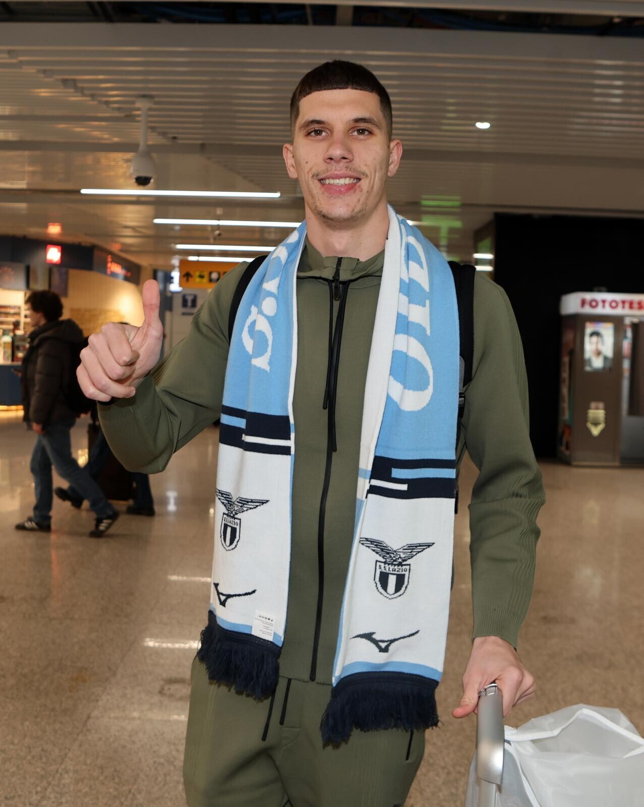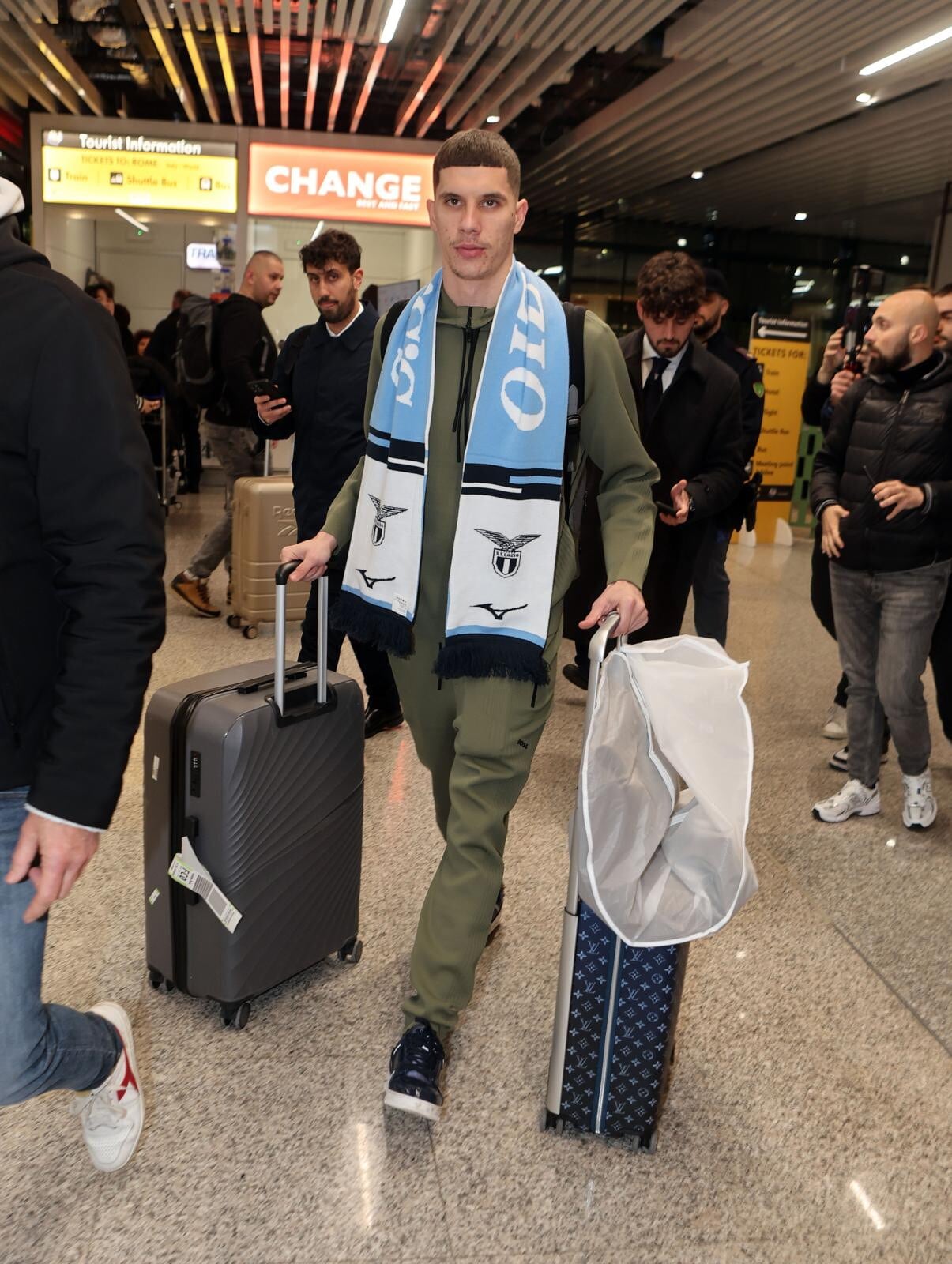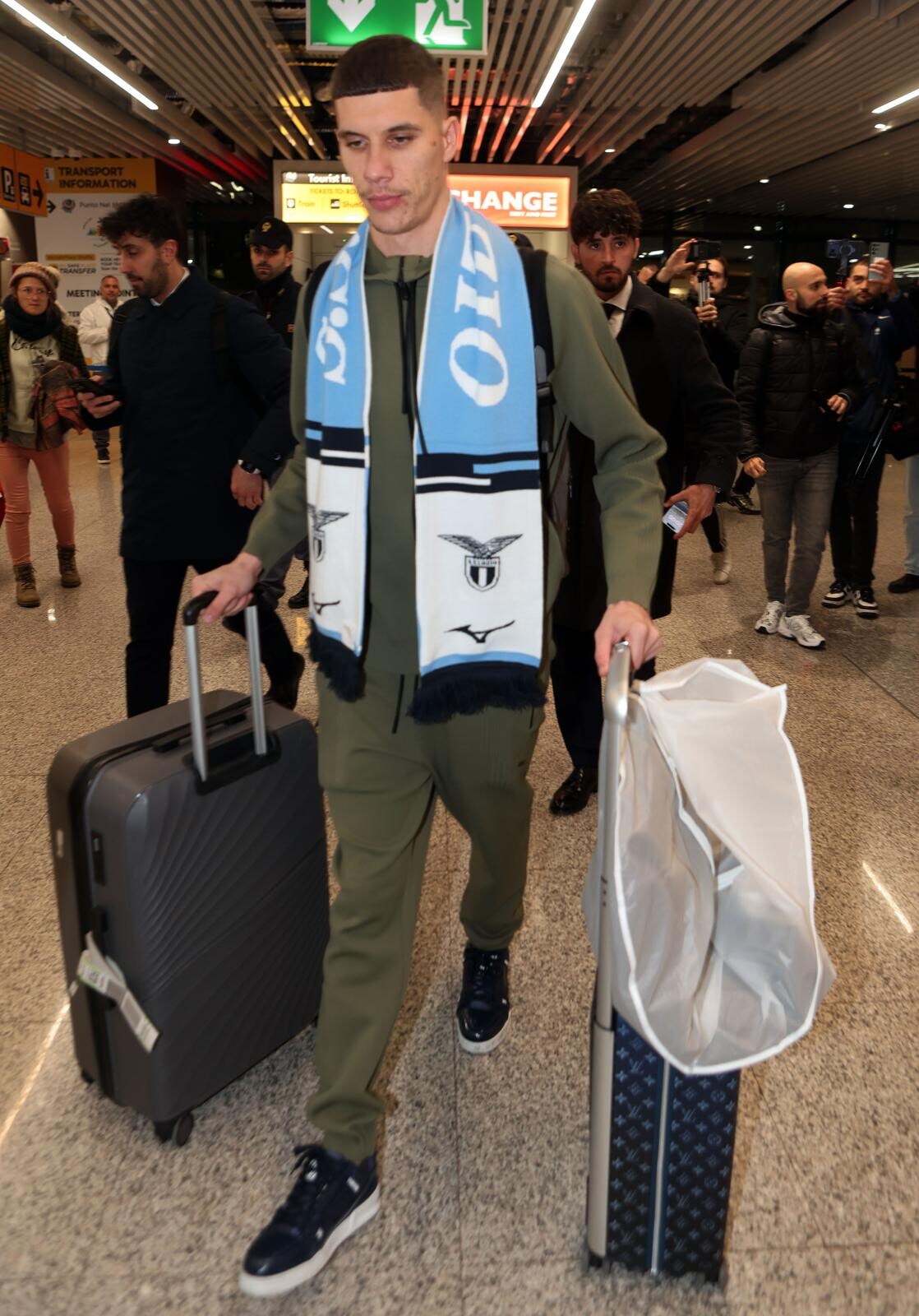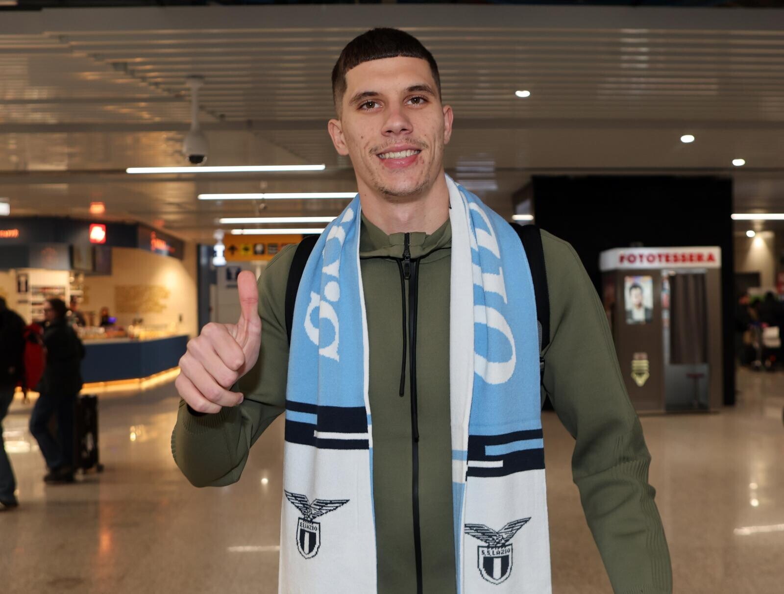 Ratkov, tutte le immagini del suo arrivo a Roma tra sciarpa, bagagli e abito elegante