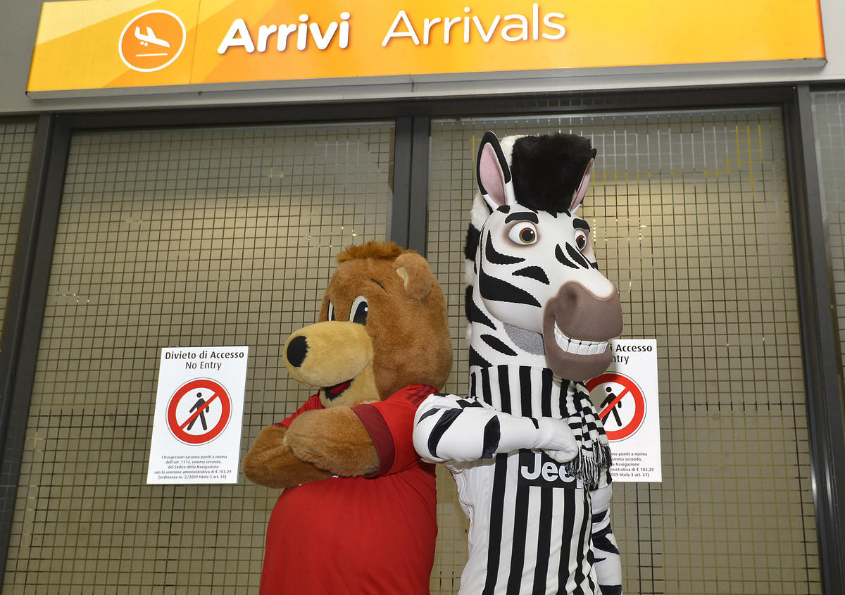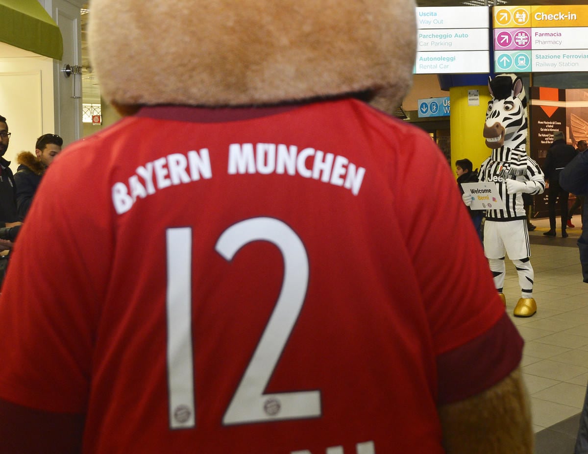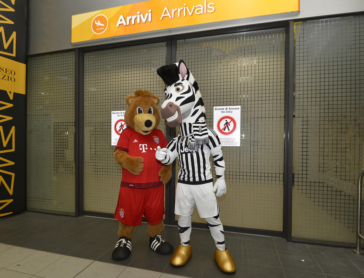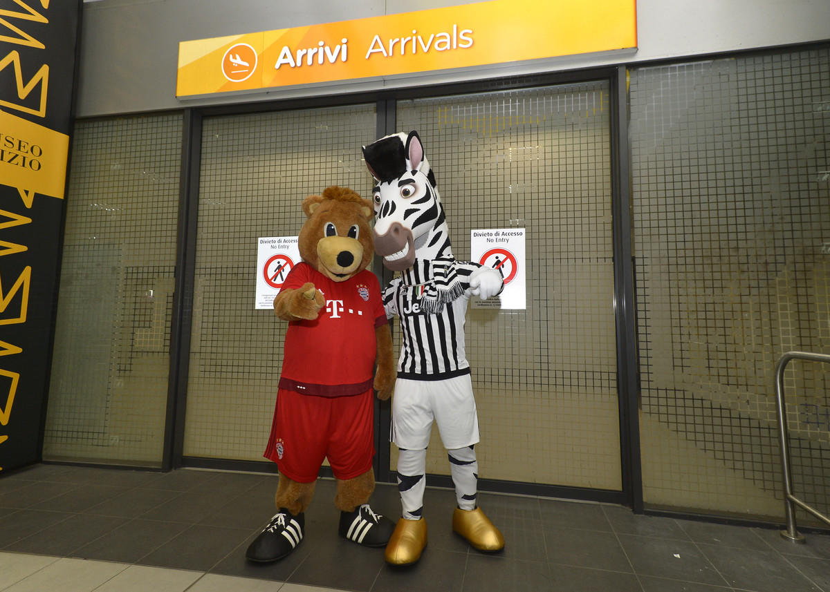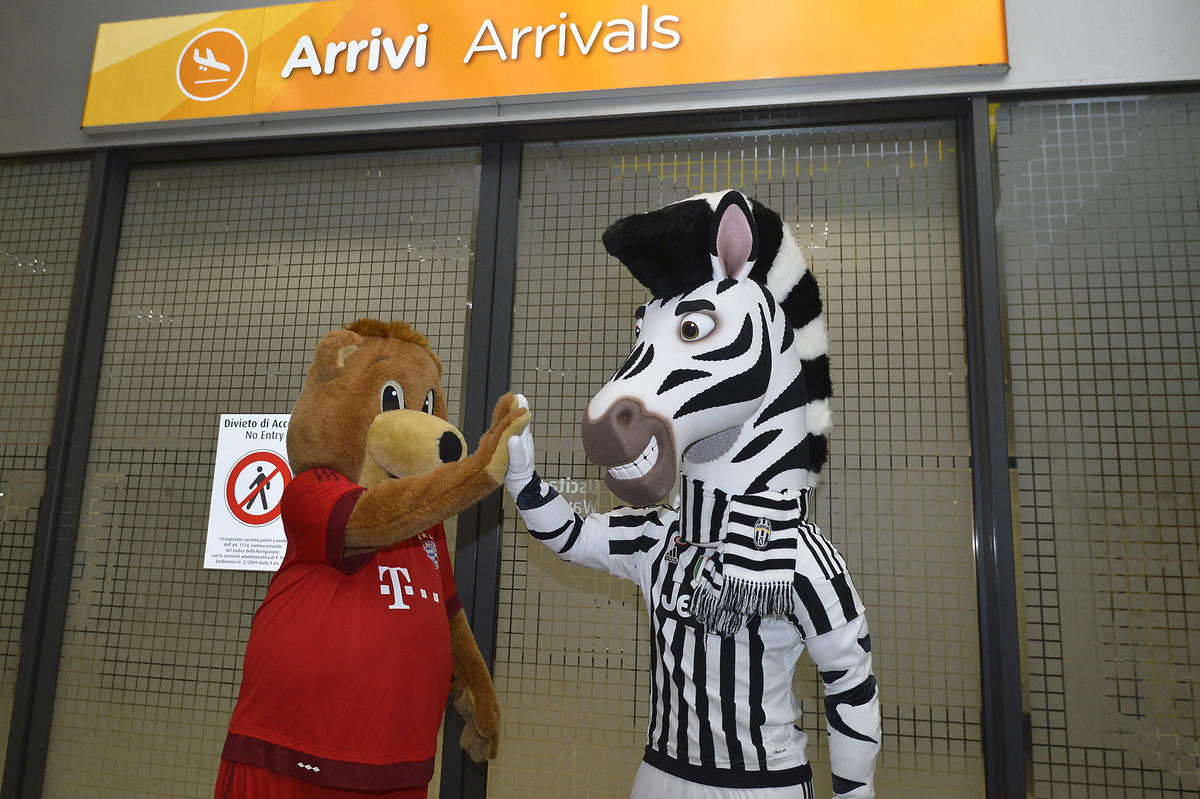 Champions League, Juventus-Bayern Monaco: incontro tra mascotte all’aeroporto
