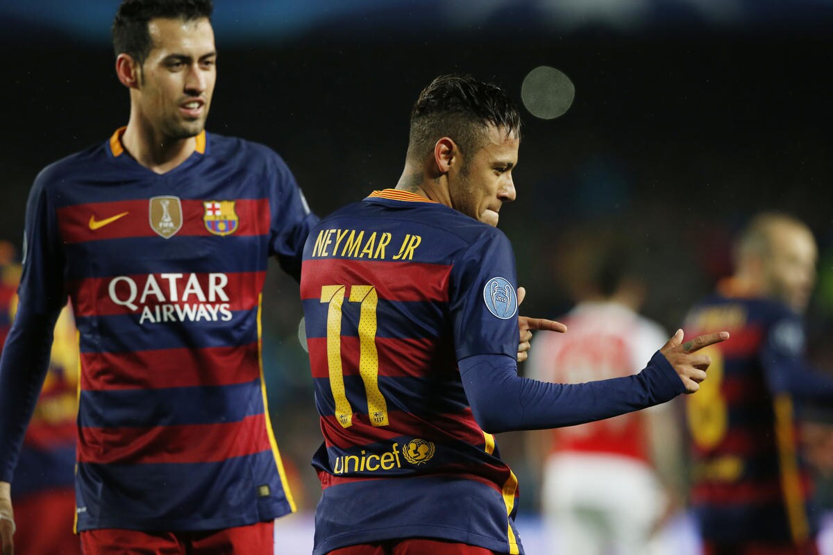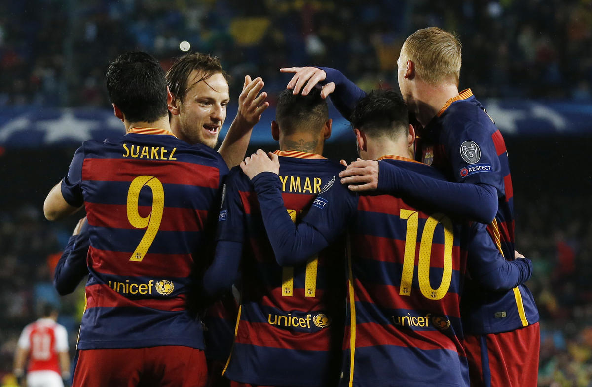 In gol al Camp Nou il trio delle meraviglie Neymar, Suarez e Messi, per gli inglesi momentanea rete di Elneny