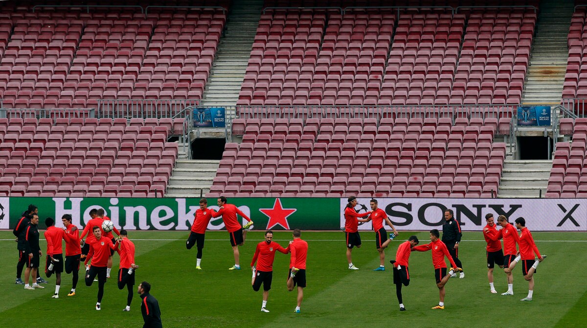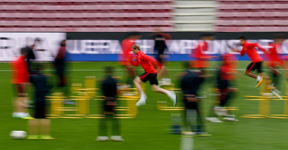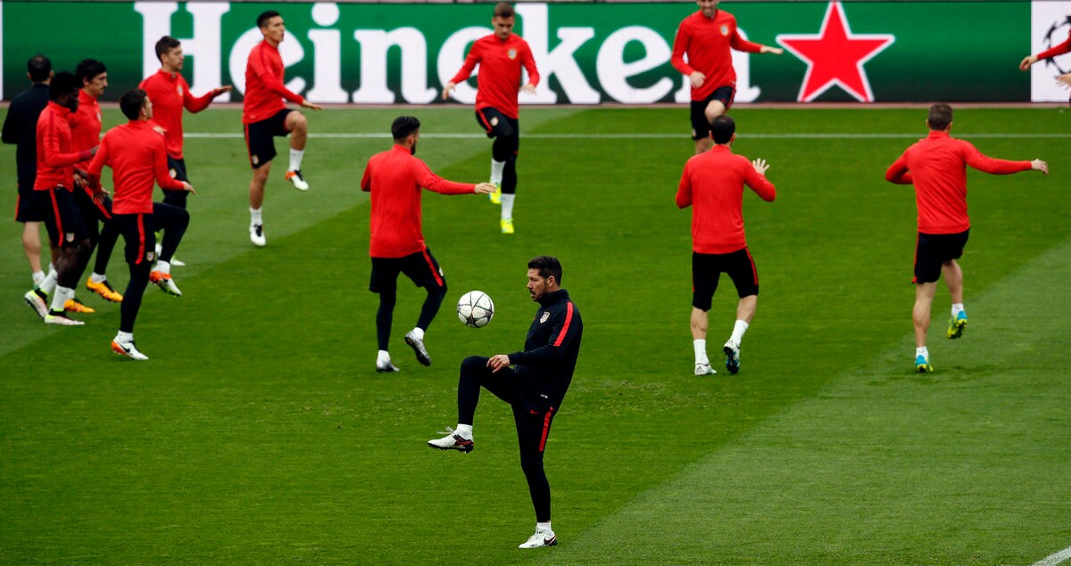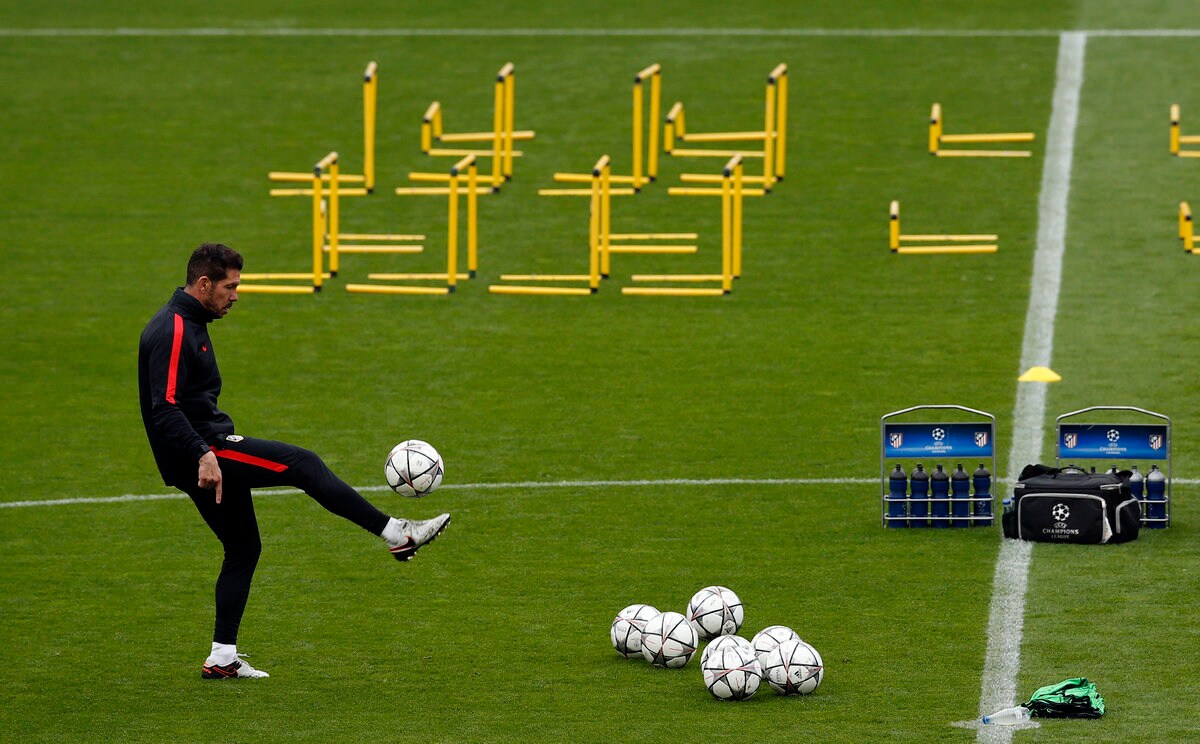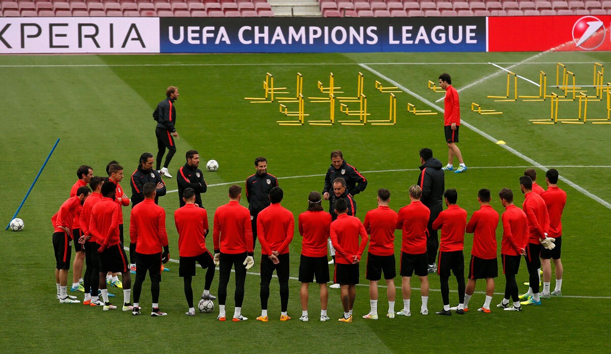 Il tecnico argentino scende in campo in vista dell'andata dei quarti di finale di Champions League a Barcellona